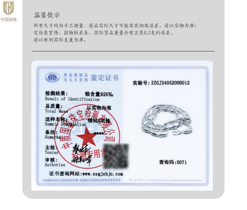 【套装包含】首饰+礼品盒+礼品袋+国检证书+质保单+价签