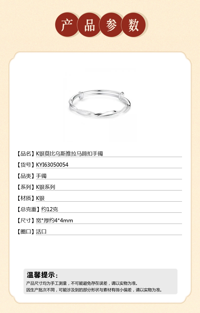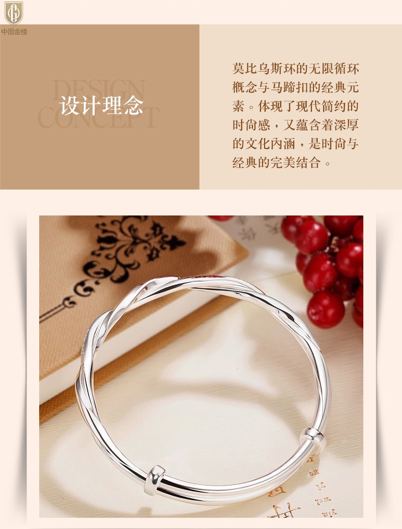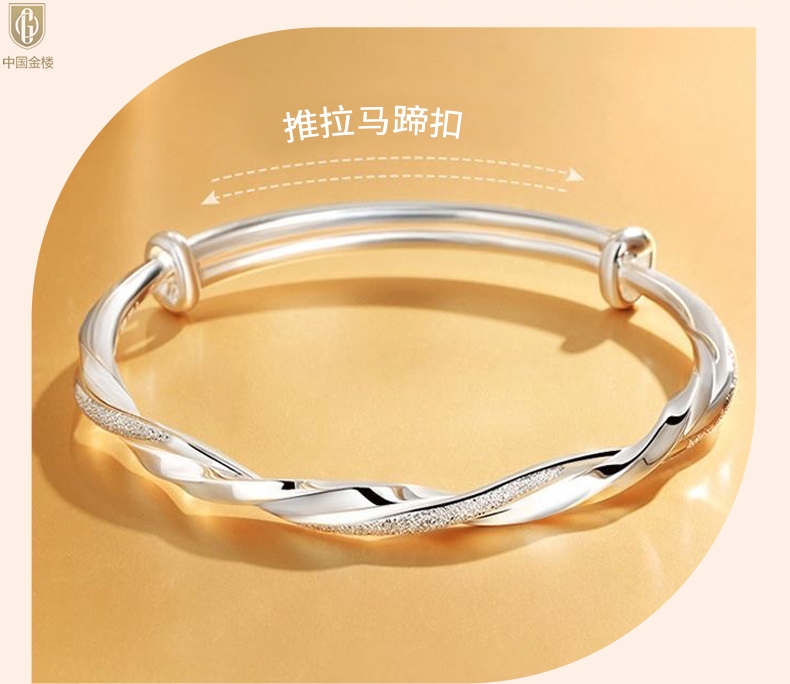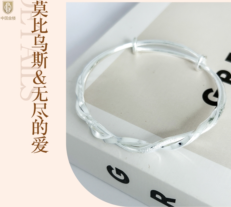 【品名】中国金楼K银莫比乌斯推拉马蹄扣手镯