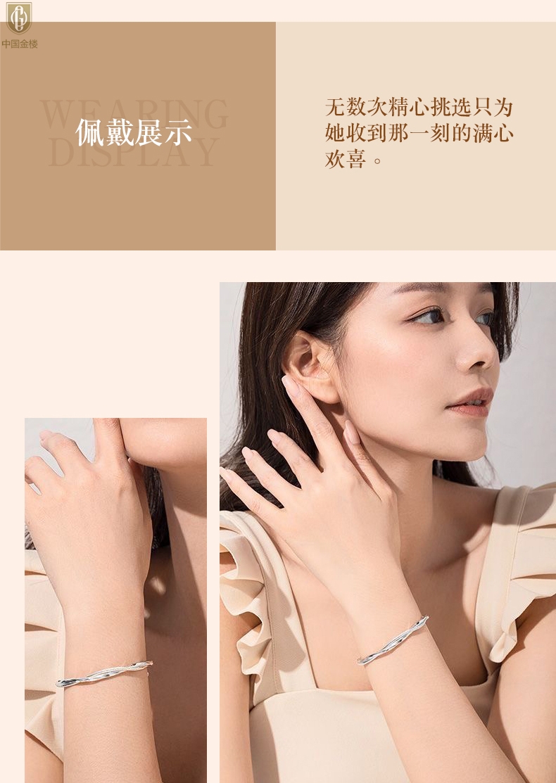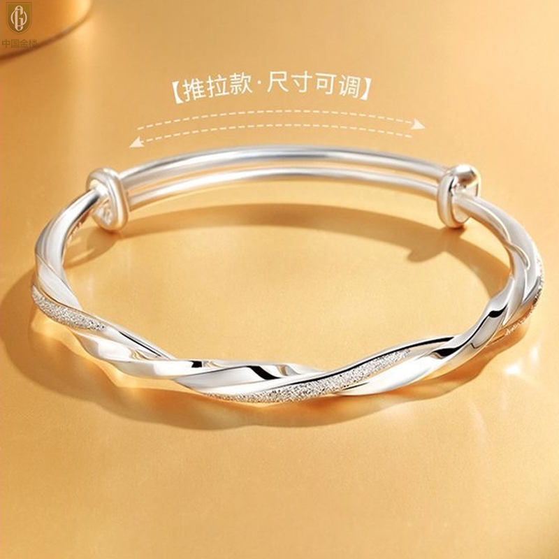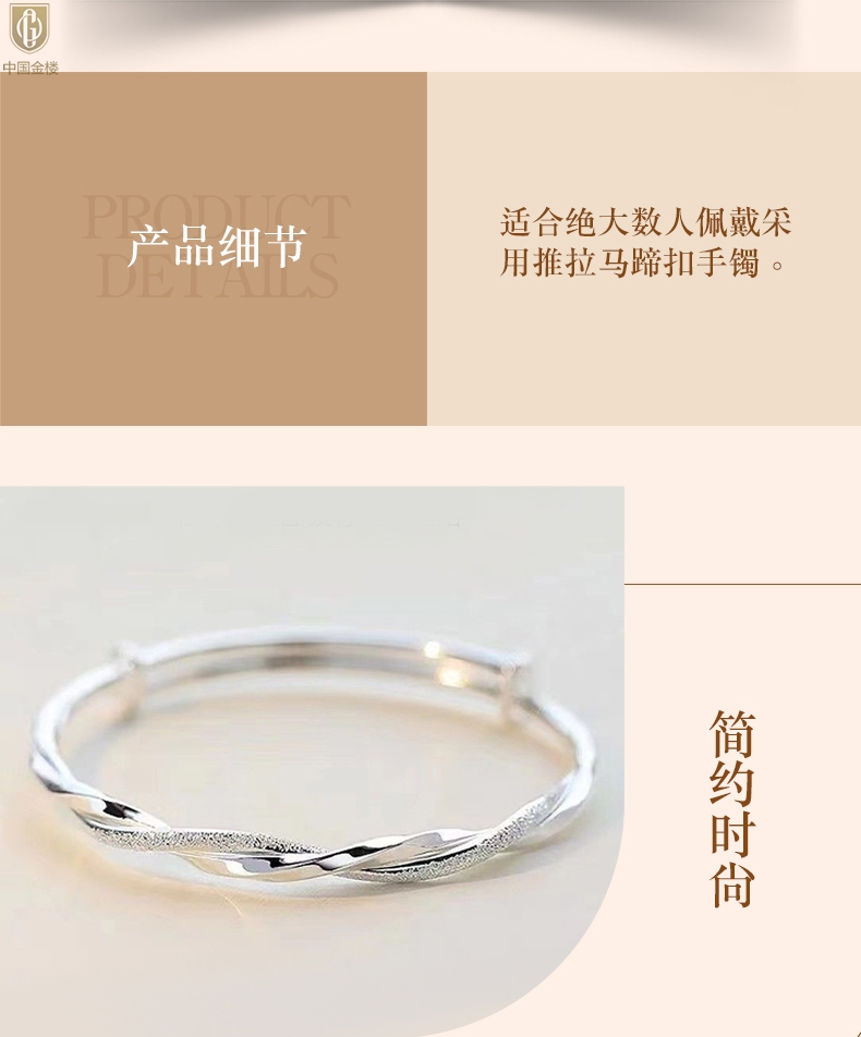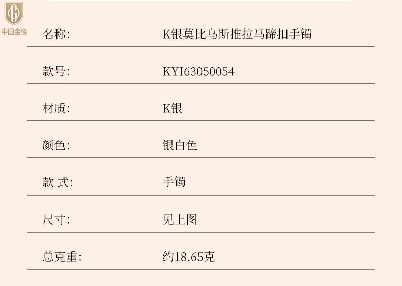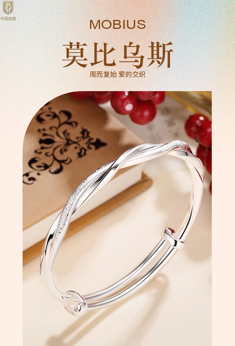 【品名】中国金楼K银莫比乌斯推拉马蹄扣手镯