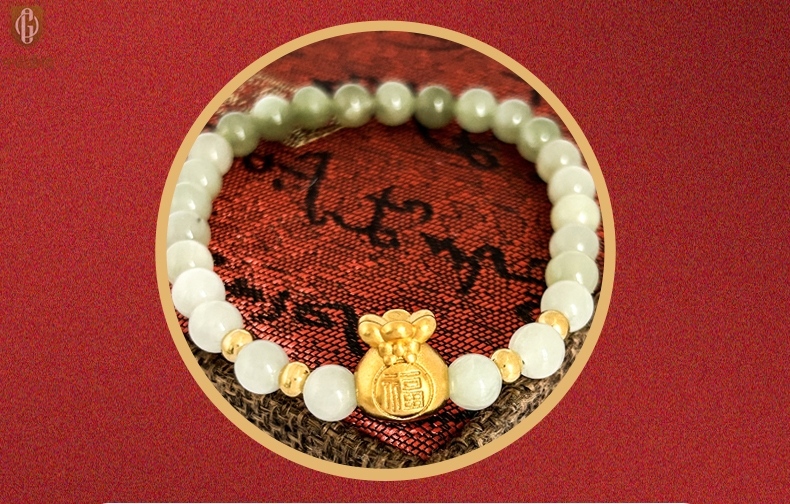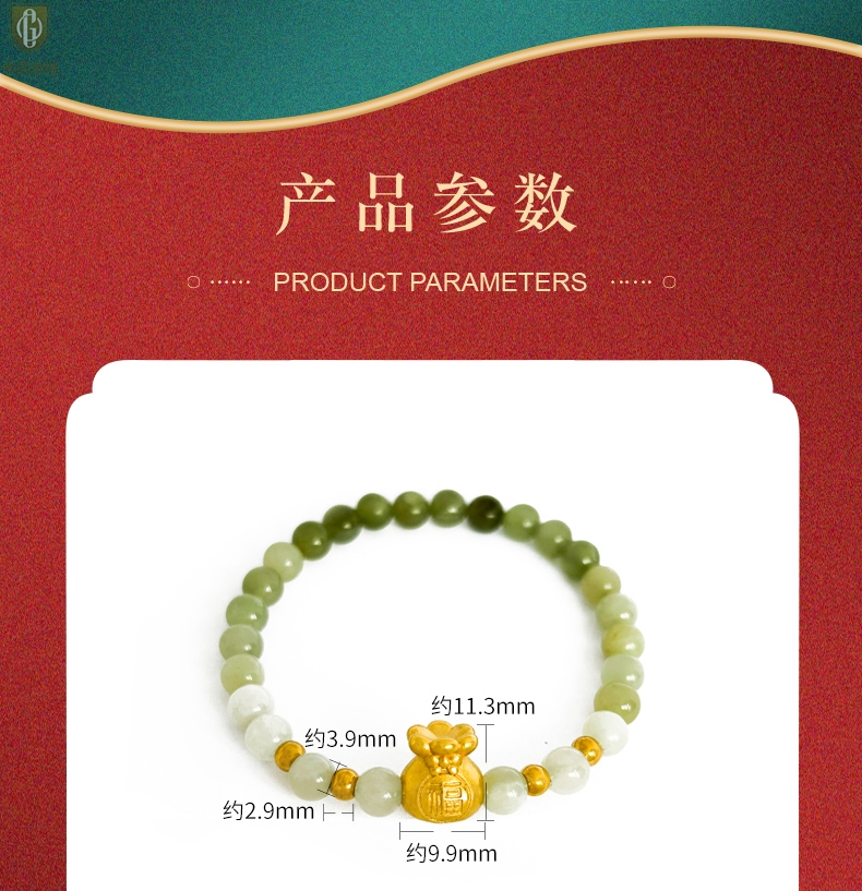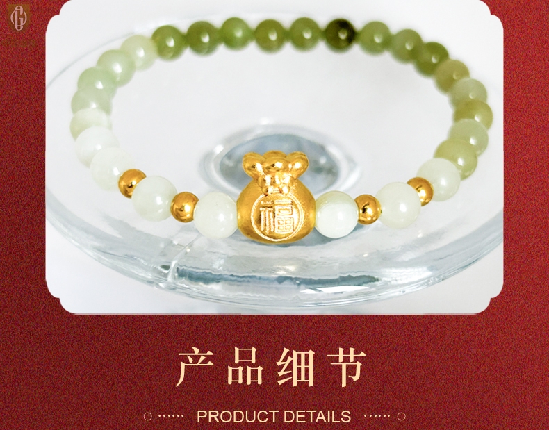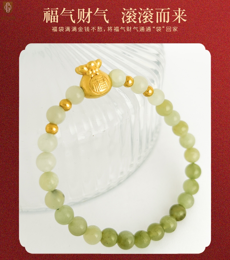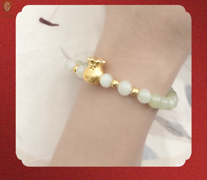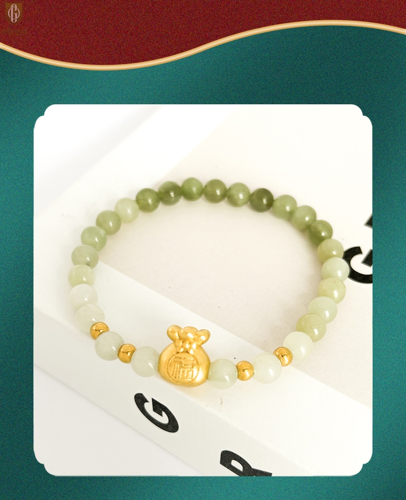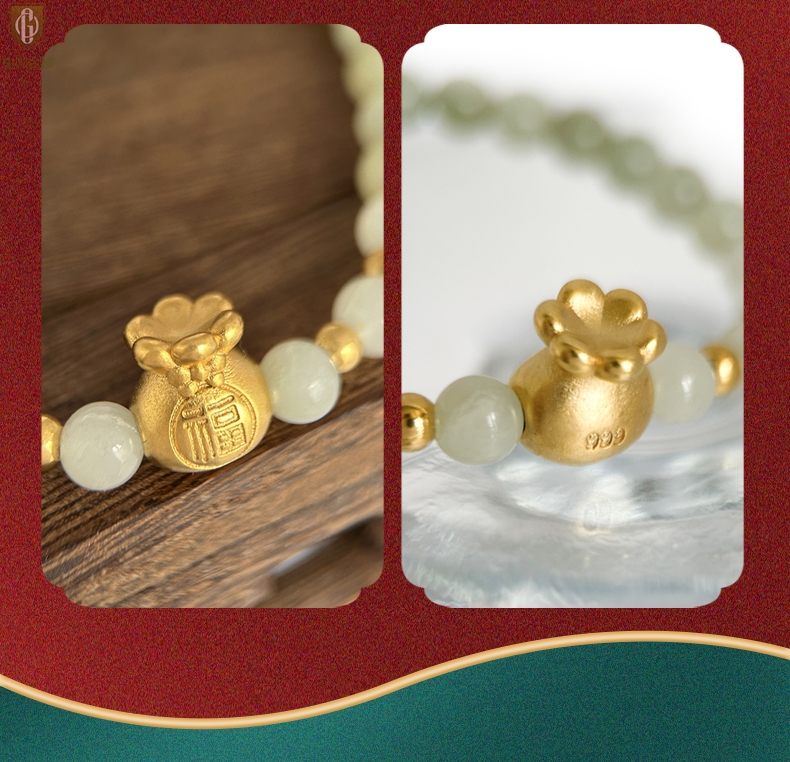 【品名】中国金楼柔雅福袋K金和田玉手串
