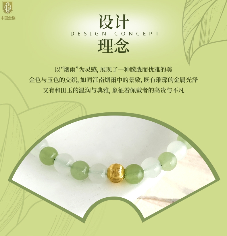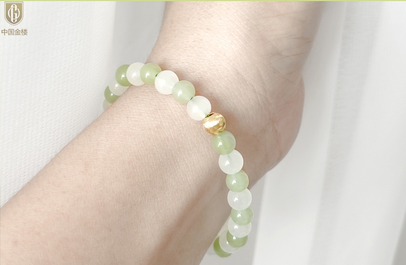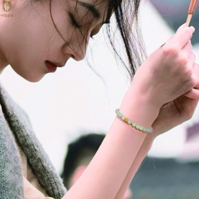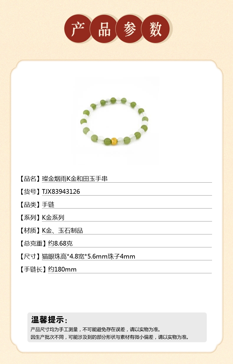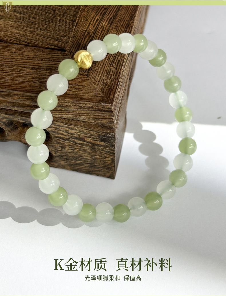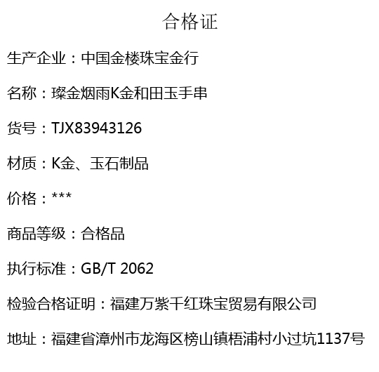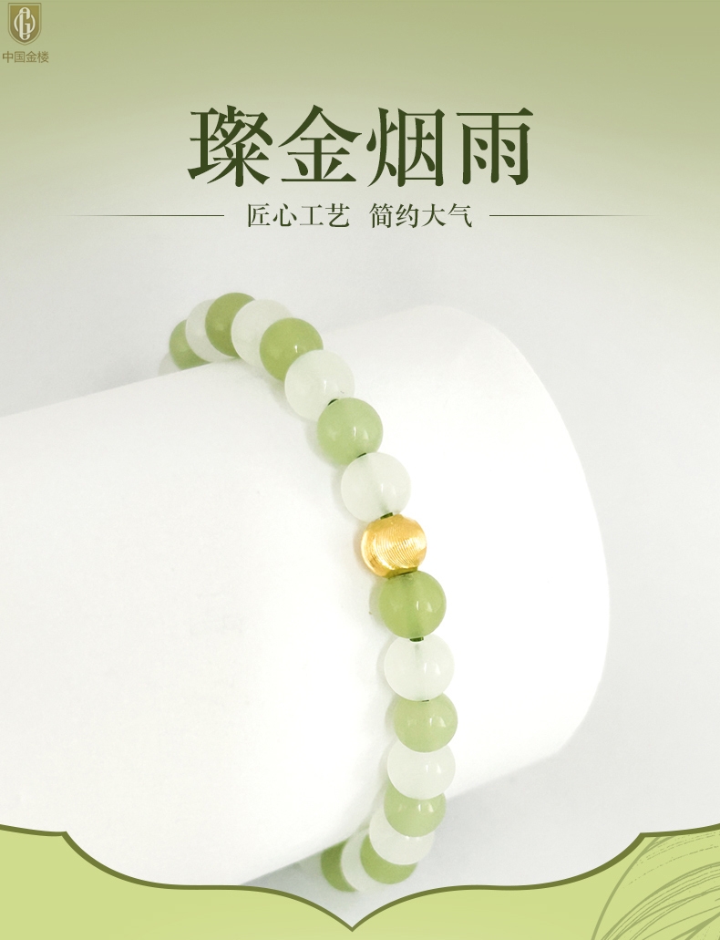 【品名】中国金楼璨金烟雨K金和田玉手串