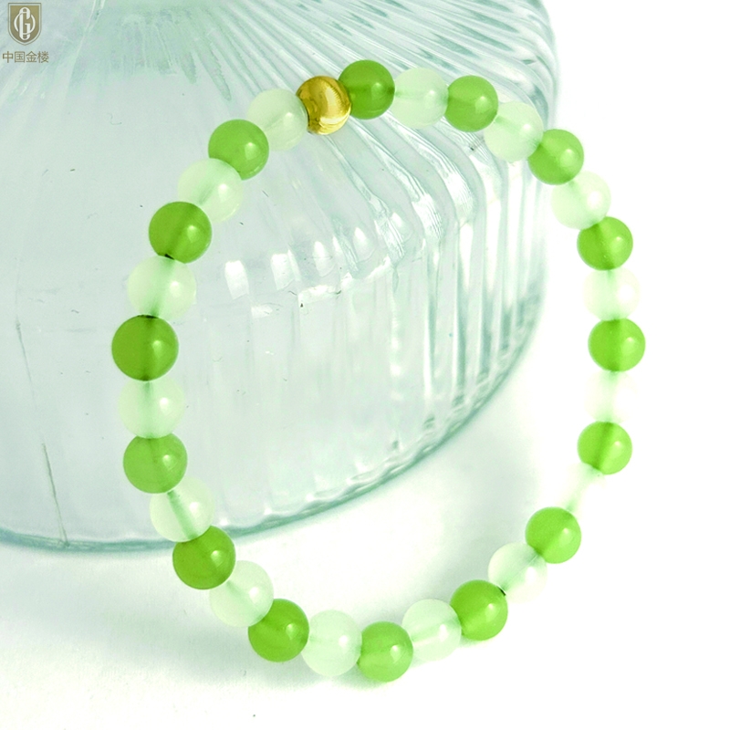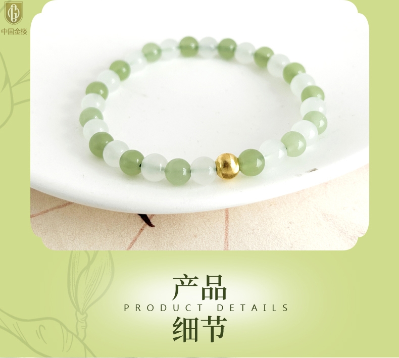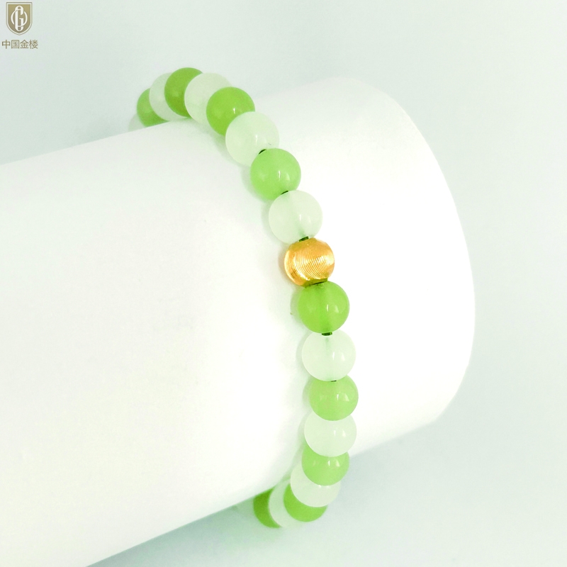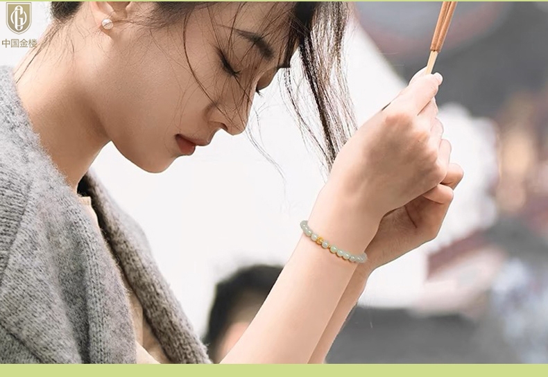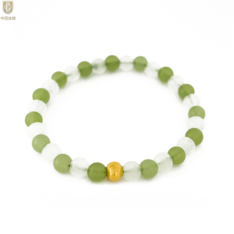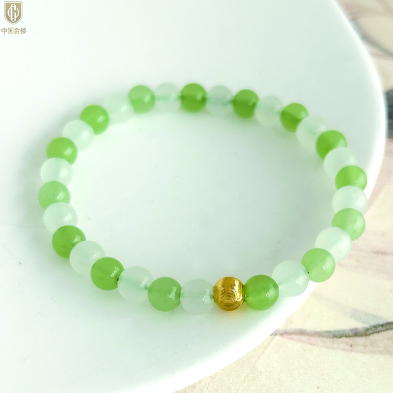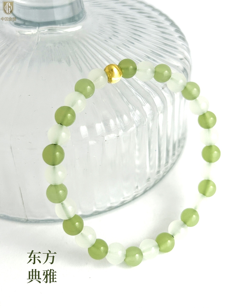 【品名】中国金楼璨金烟雨K金和田玉手串