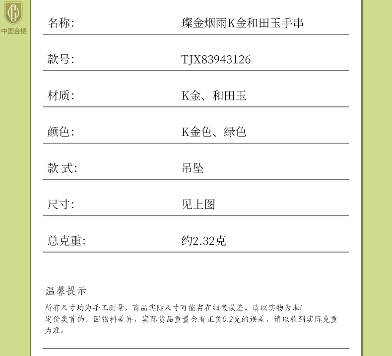 【材质】K金、玉石制品
