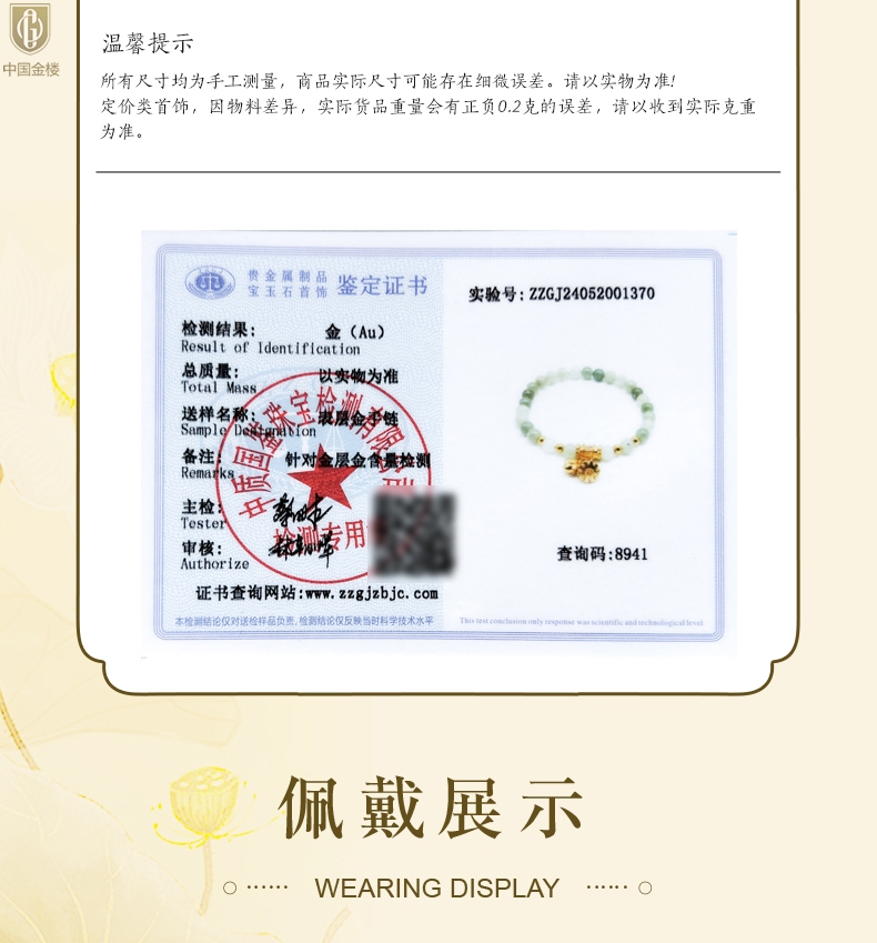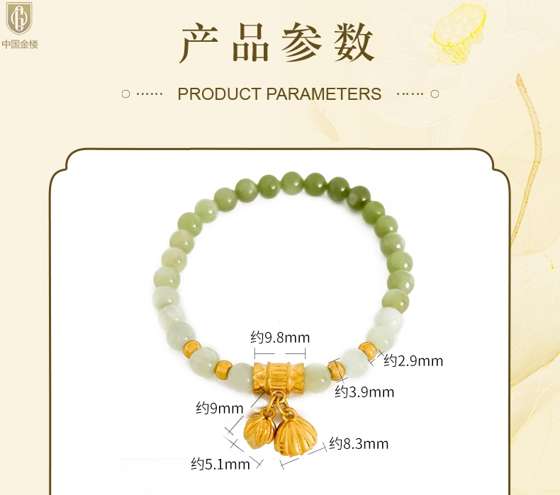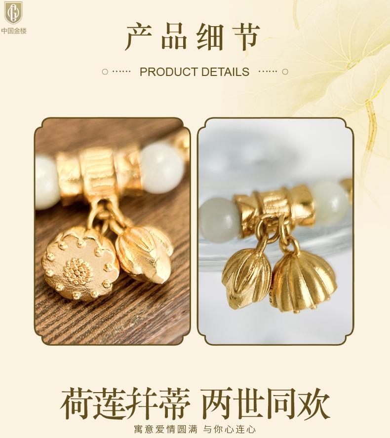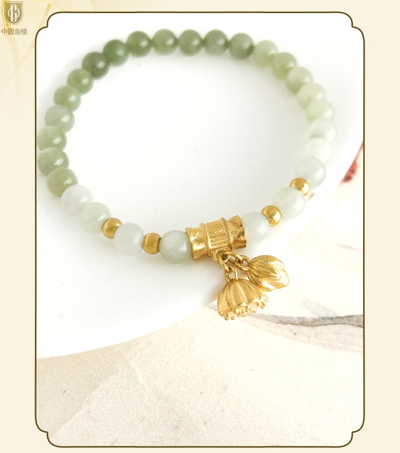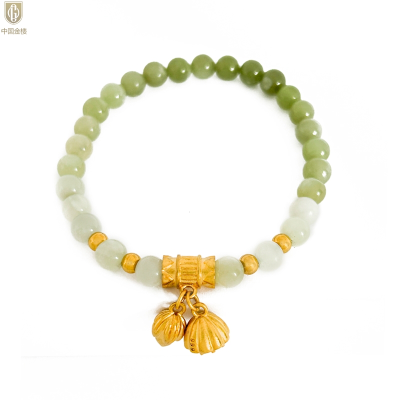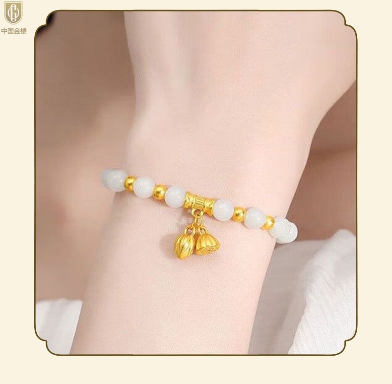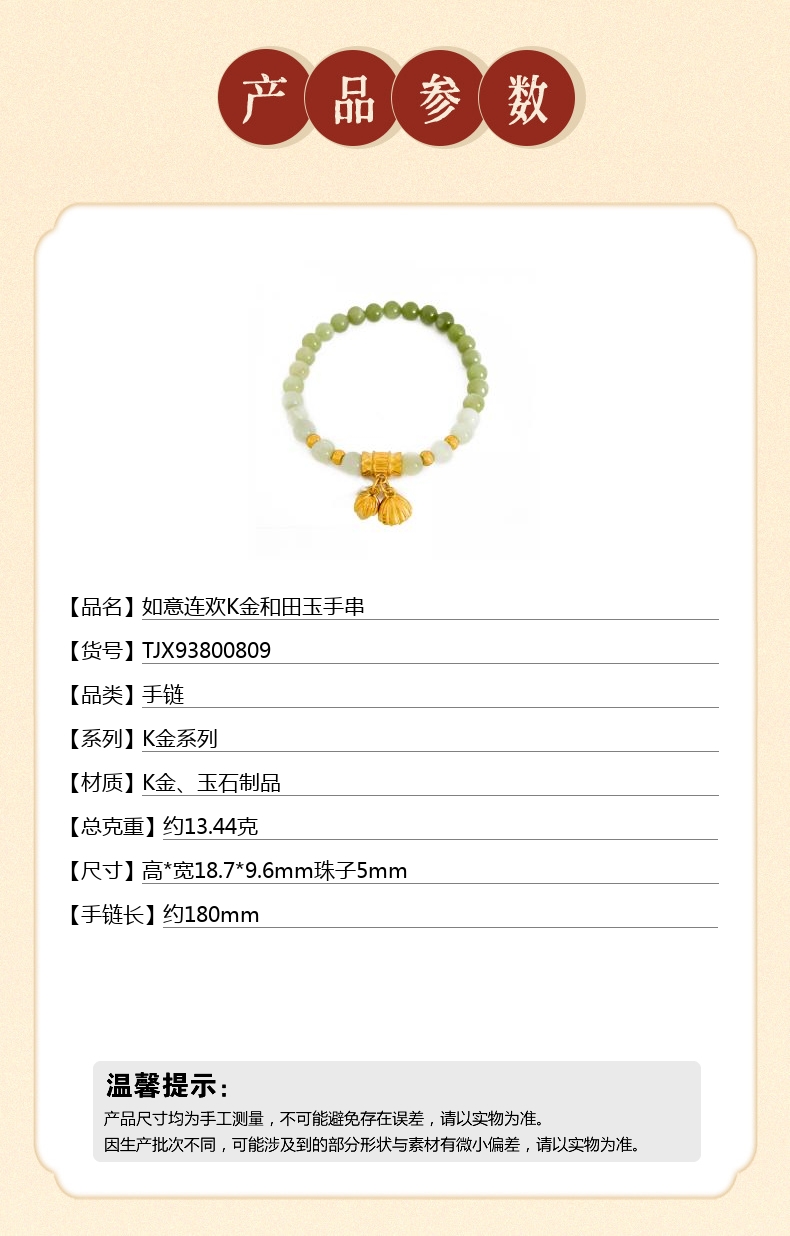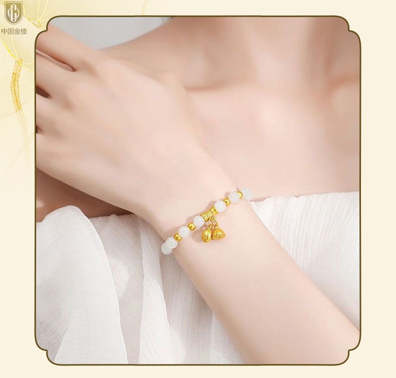 【品名】中国金楼如意连欢K金和田玉手串