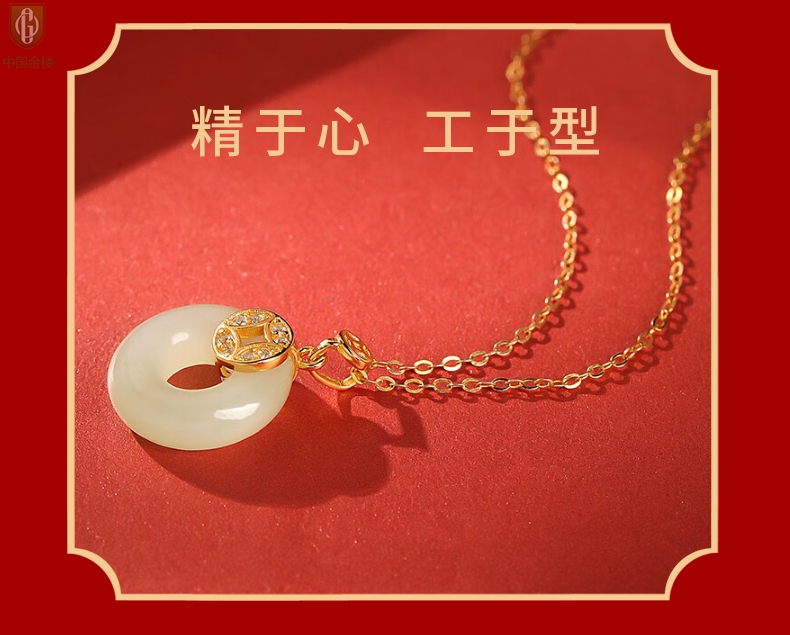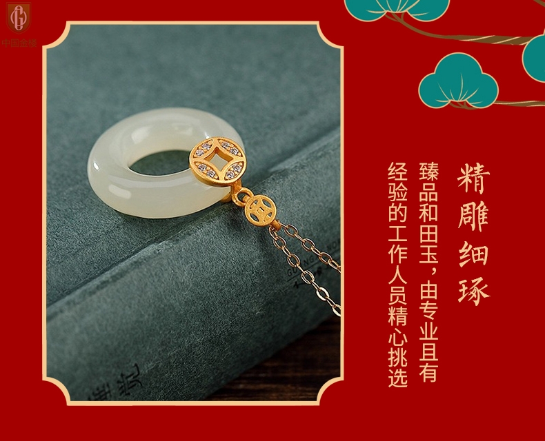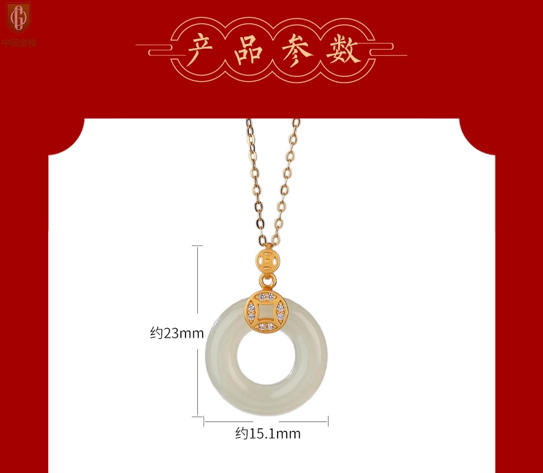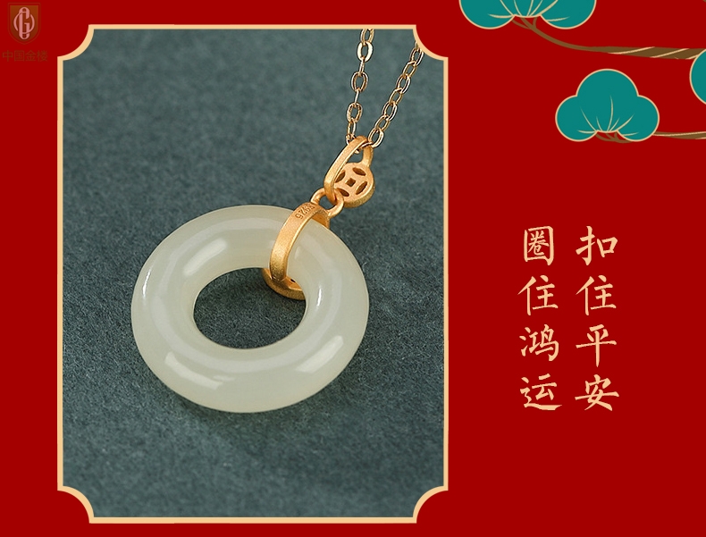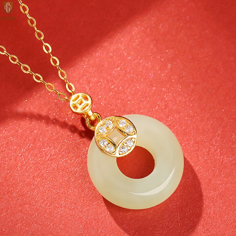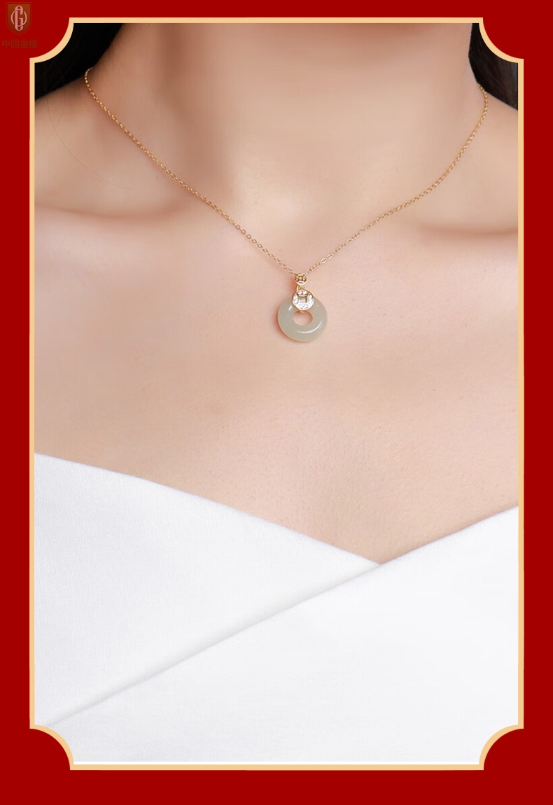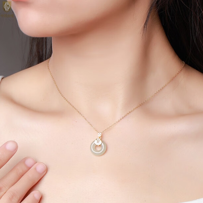 【品名】中国金楼古法银镶嵌和田玉满钻钱币平安扣