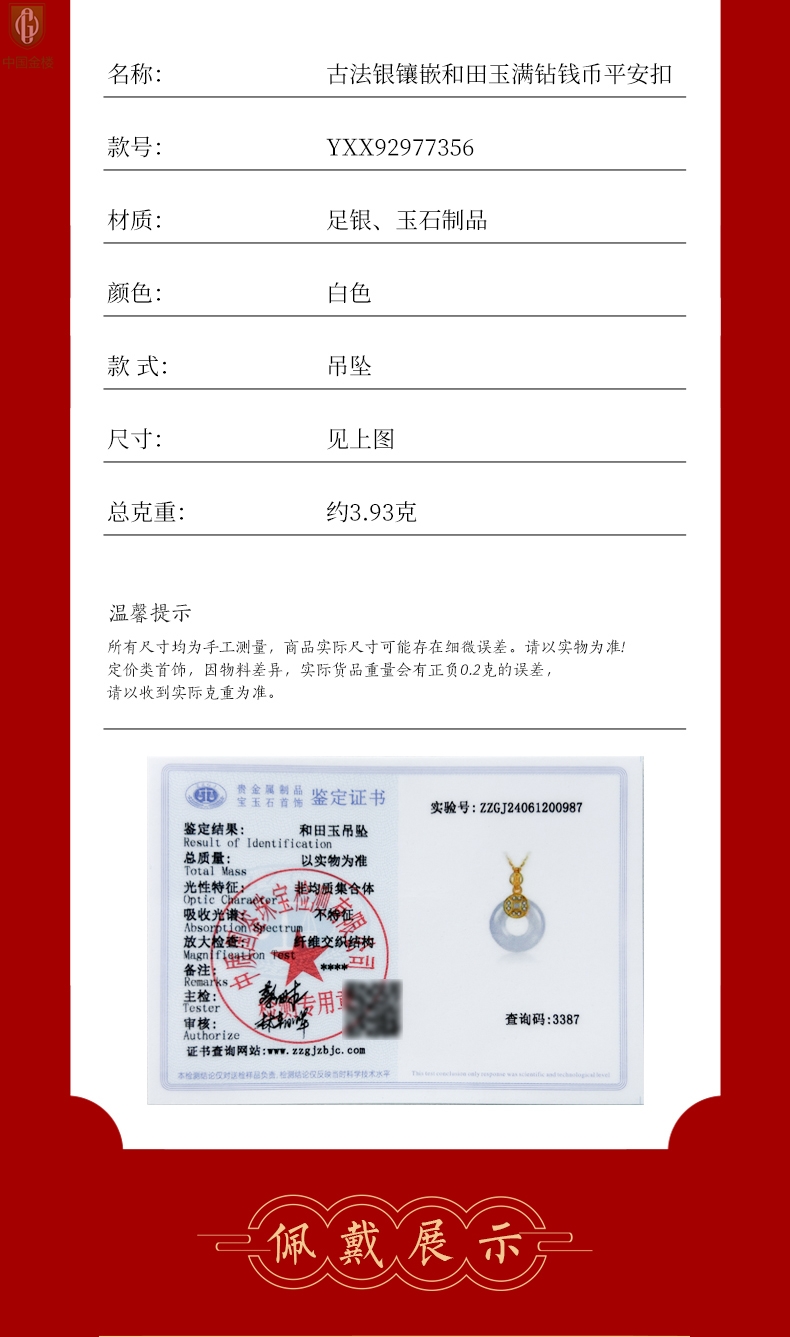 【套装包含】首饰+礼品盒+礼品袋+国检证书+质保单+价签