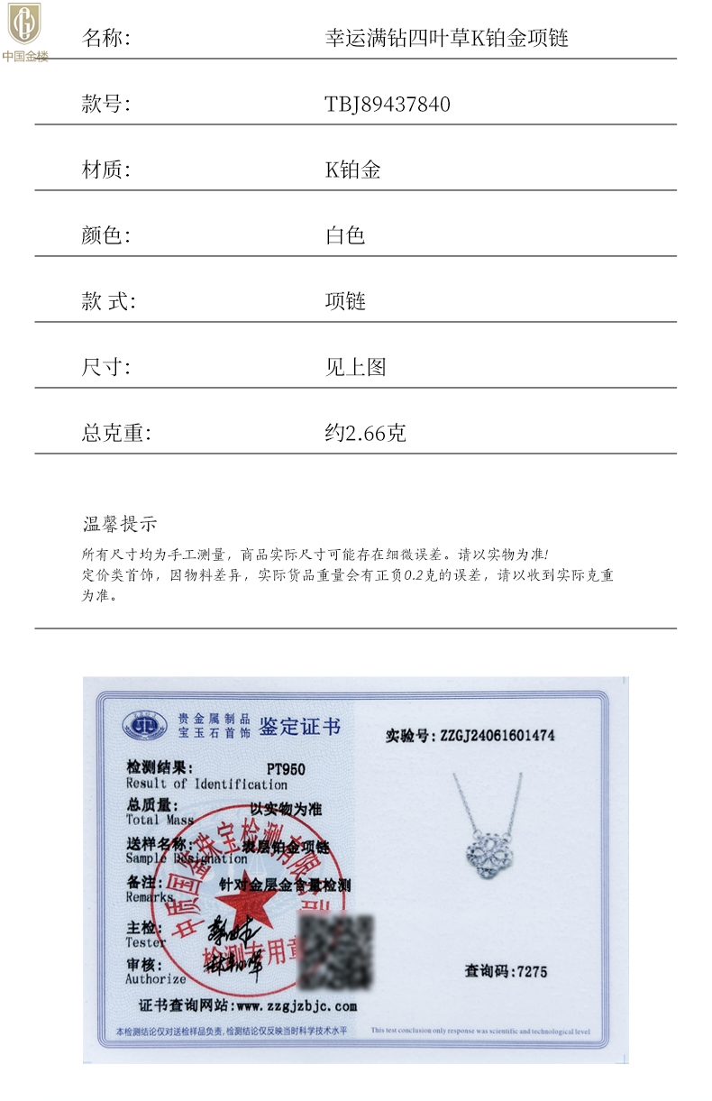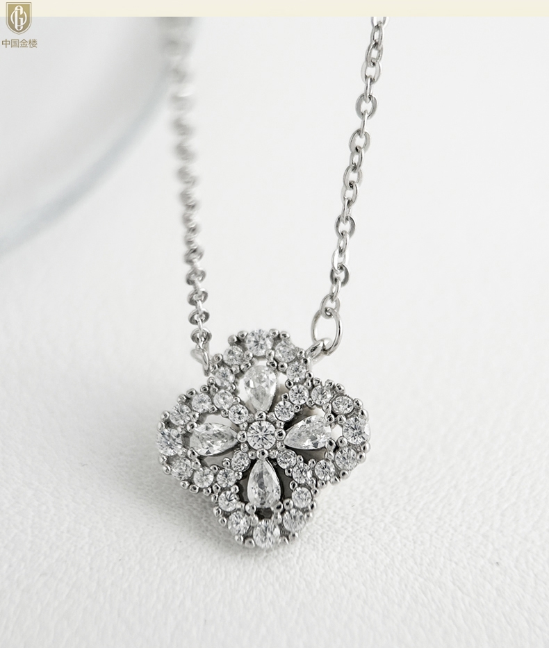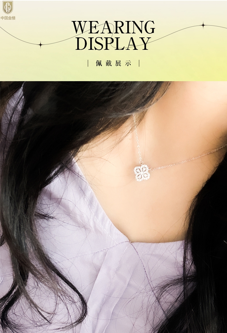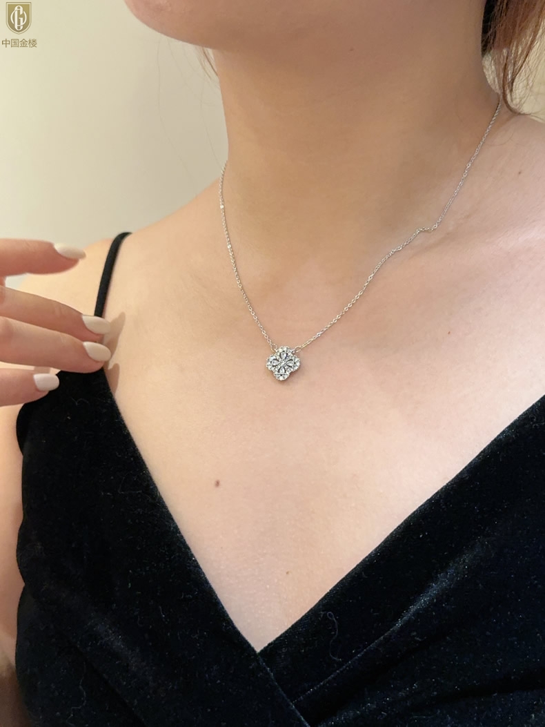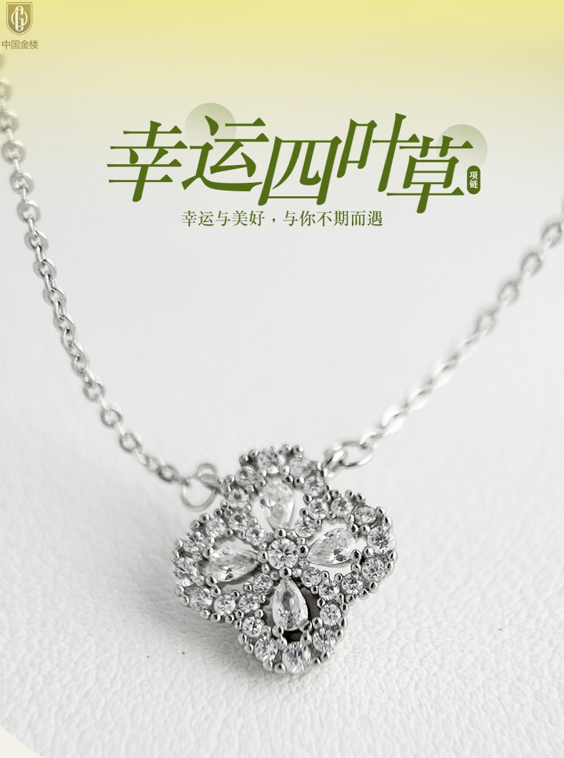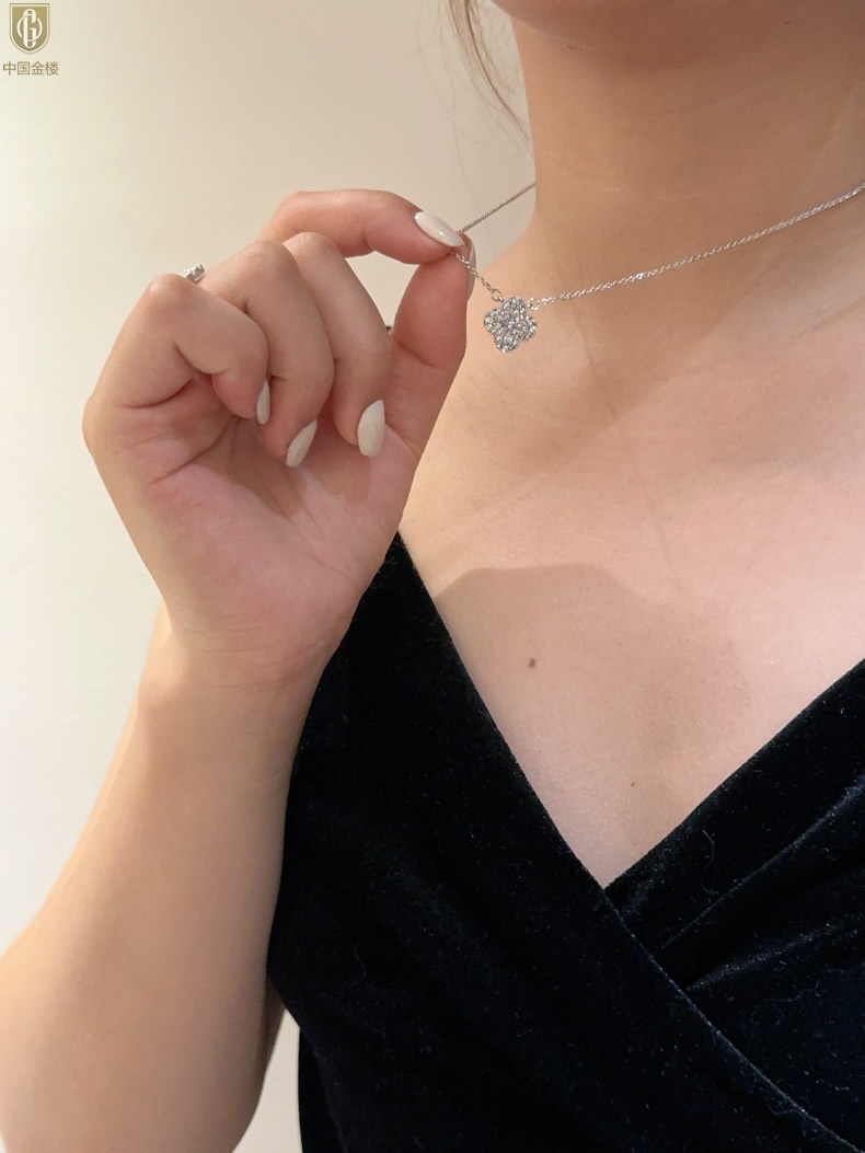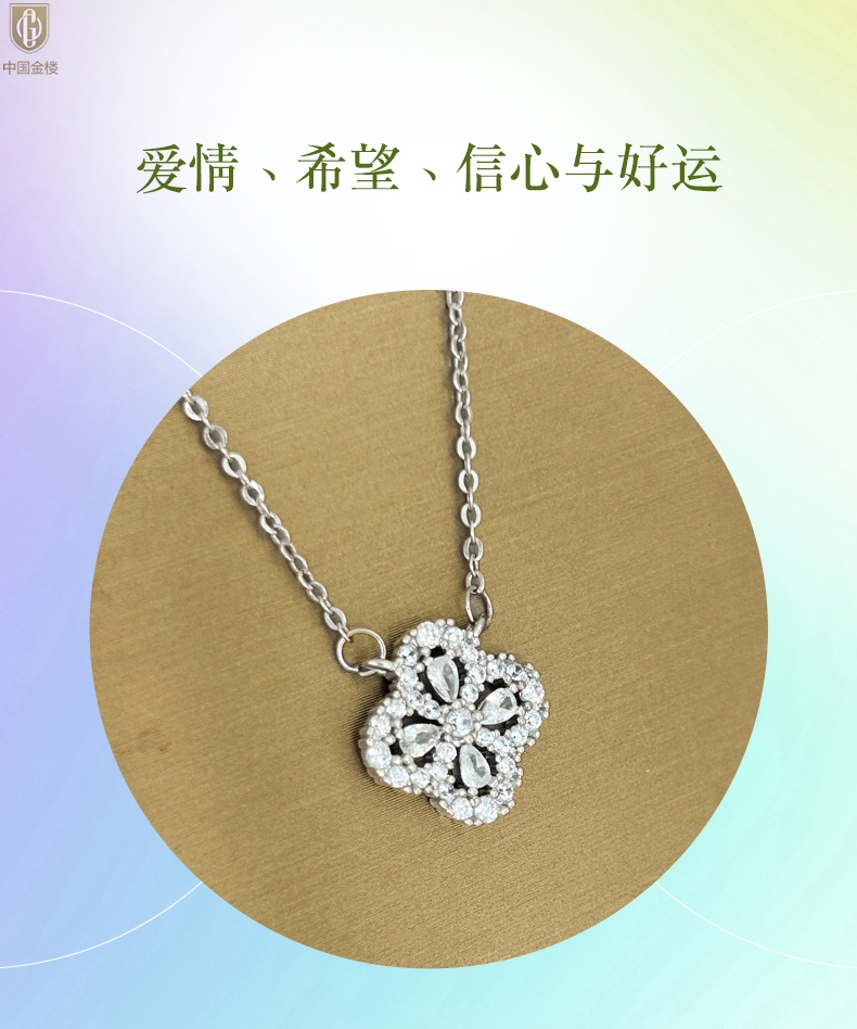 【品名】中国金楼幸运满钻四叶草K铂金项链(高定礼盒)
