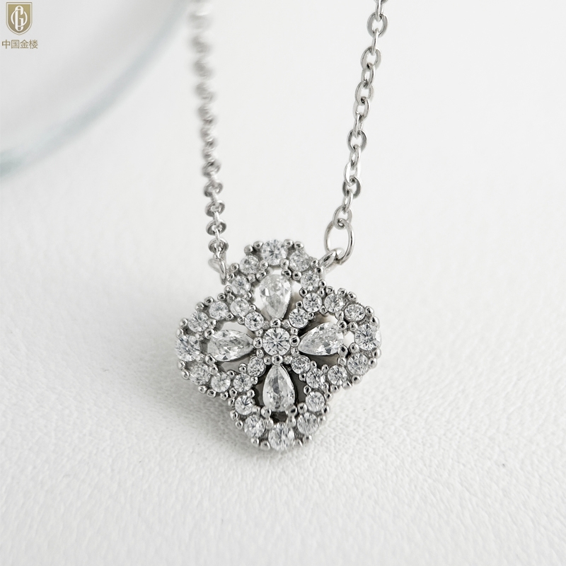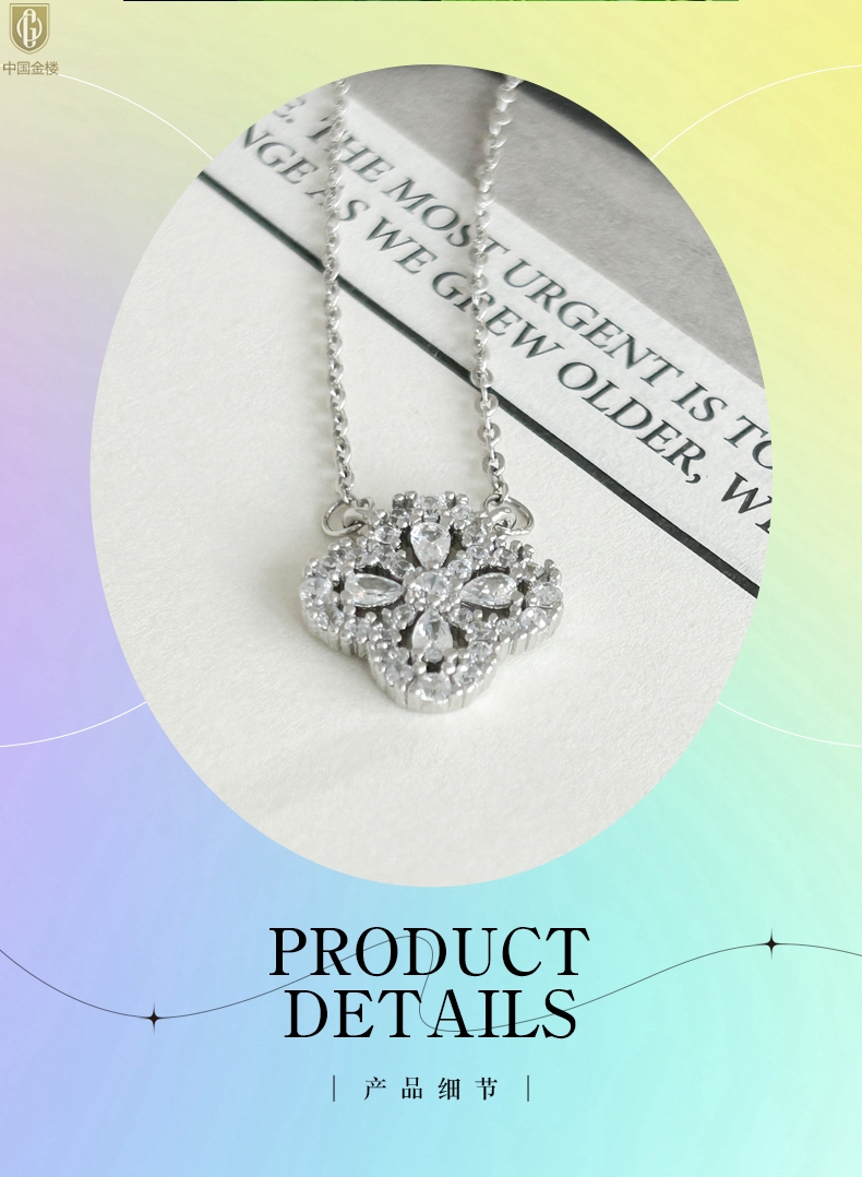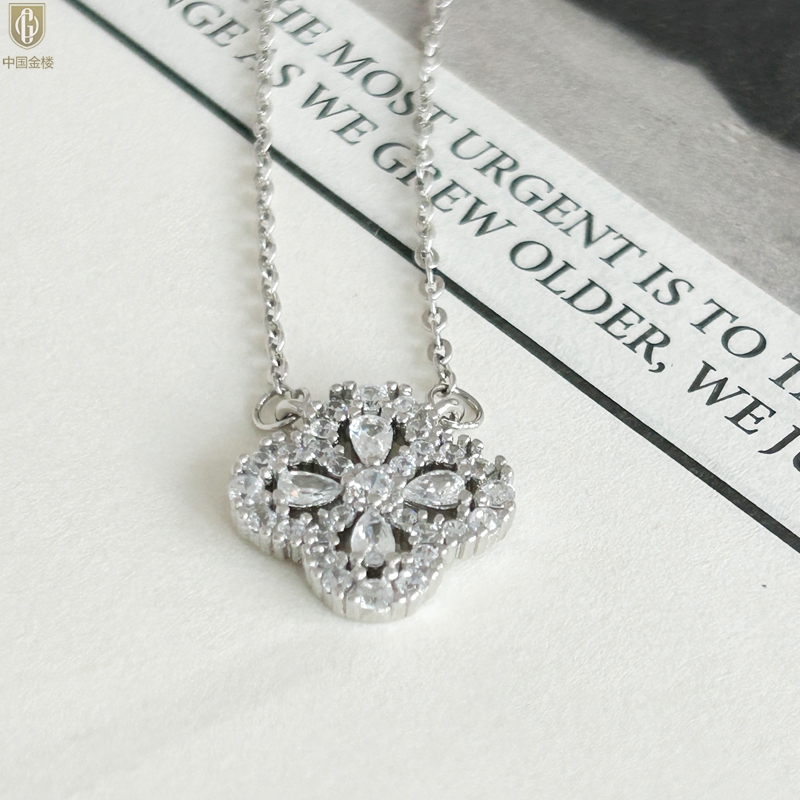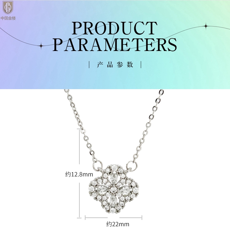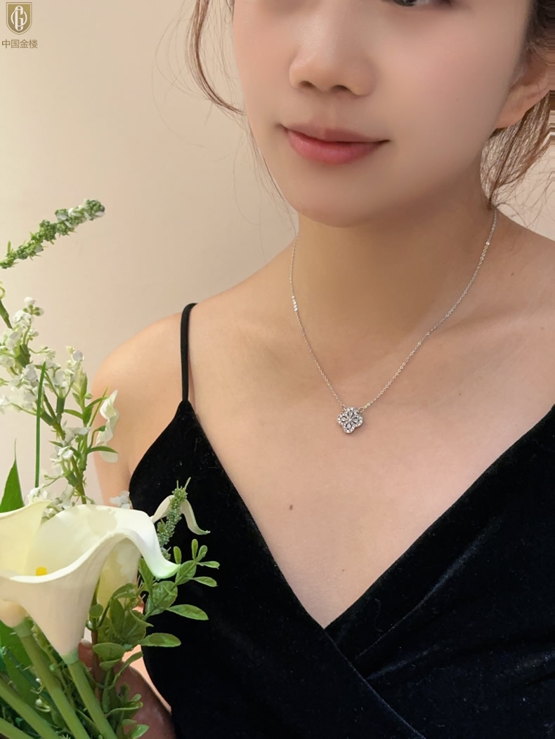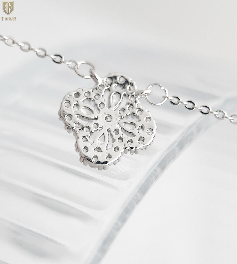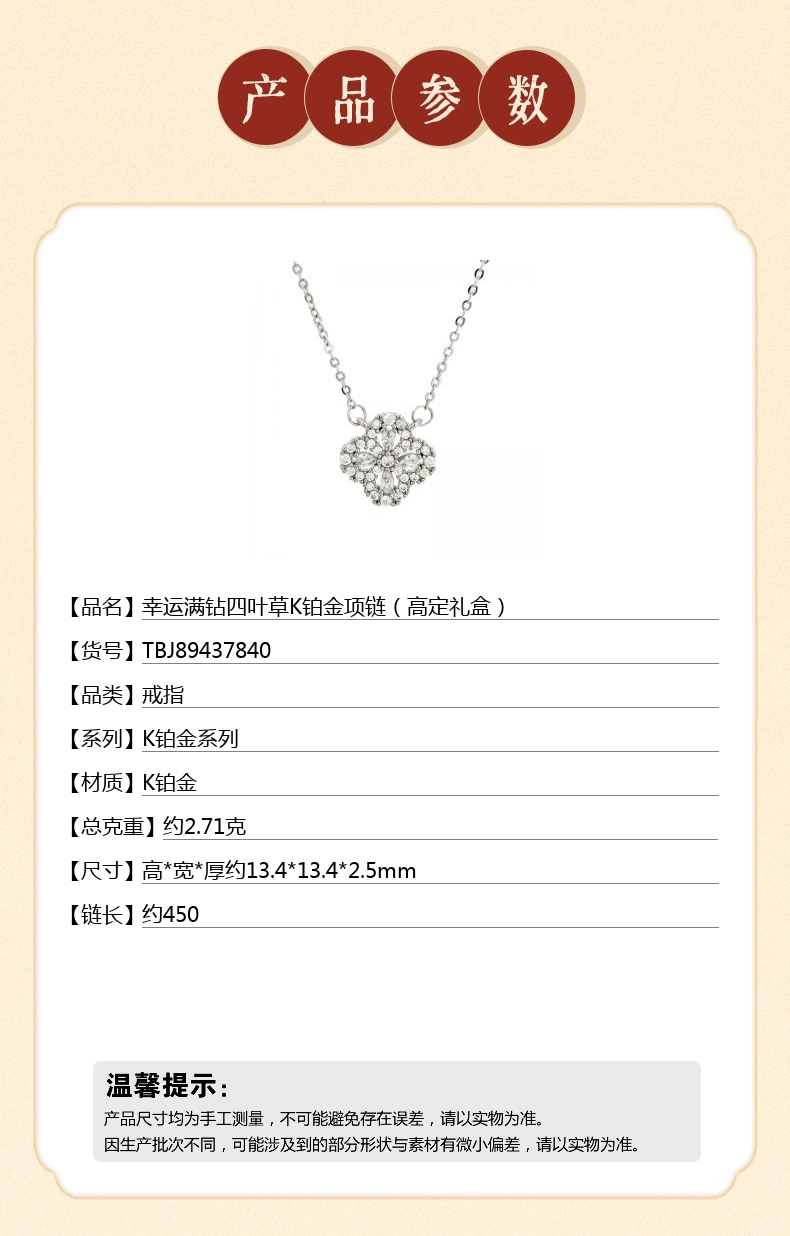 【品名】中国金楼幸运满钻四叶草K铂金项链(高定礼盒)