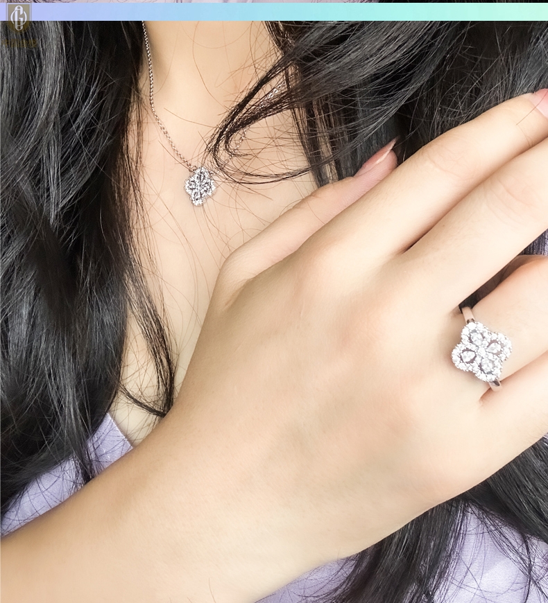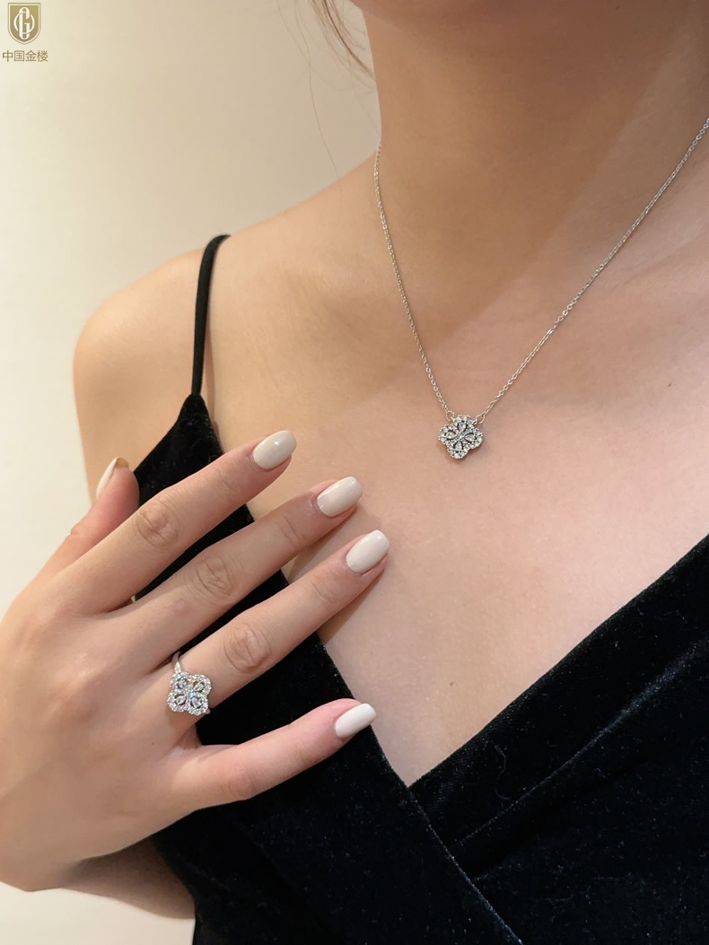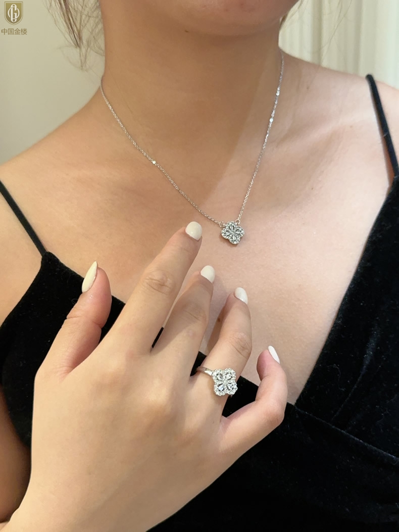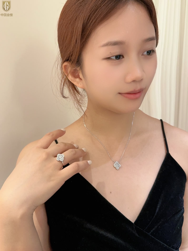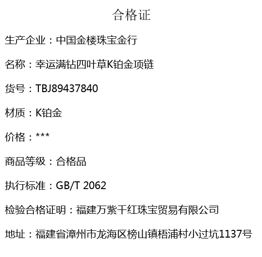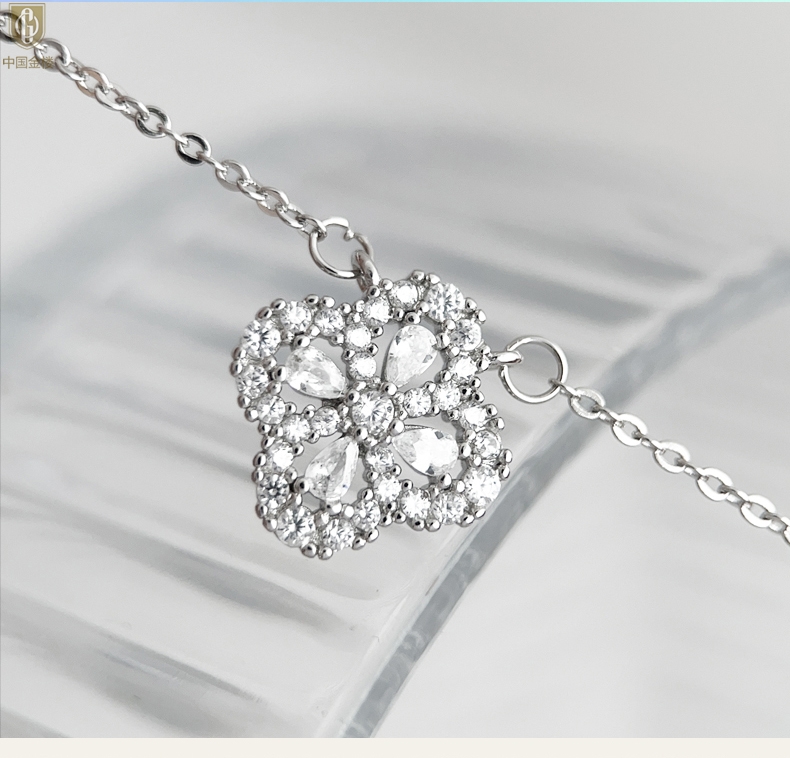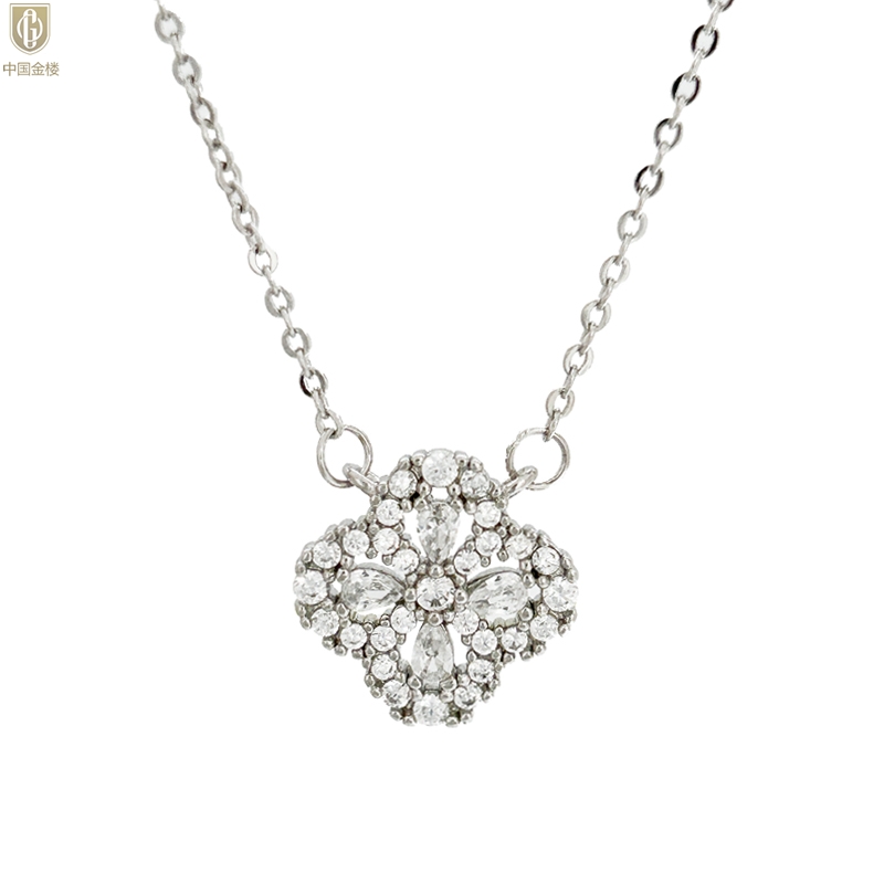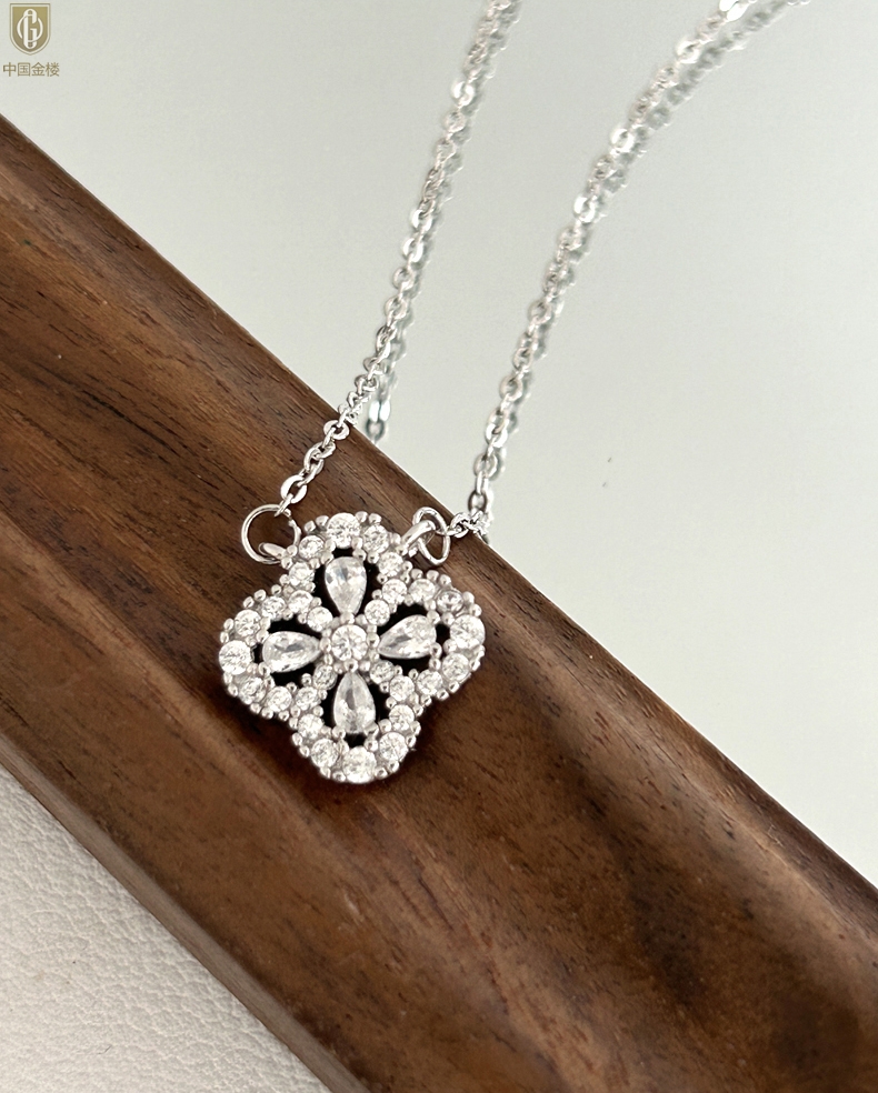 【品名】中国金楼幸运满钻四叶草K铂金项链(高定礼盒)