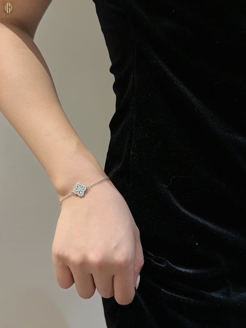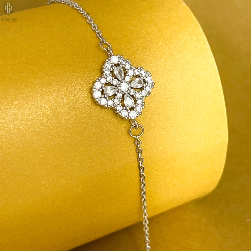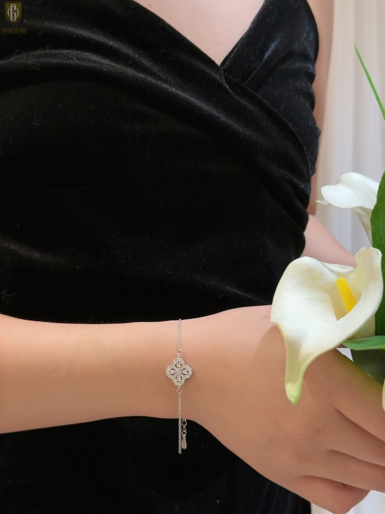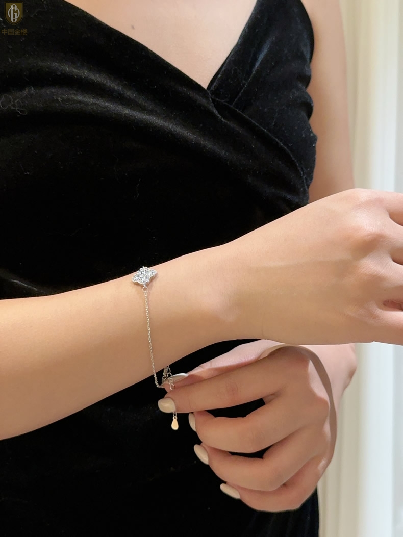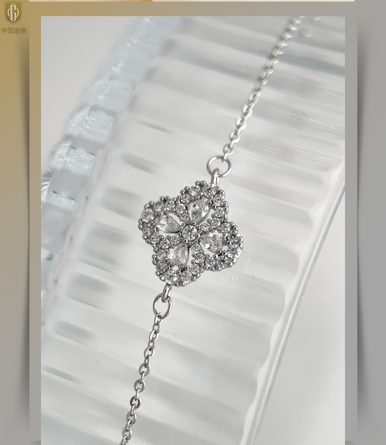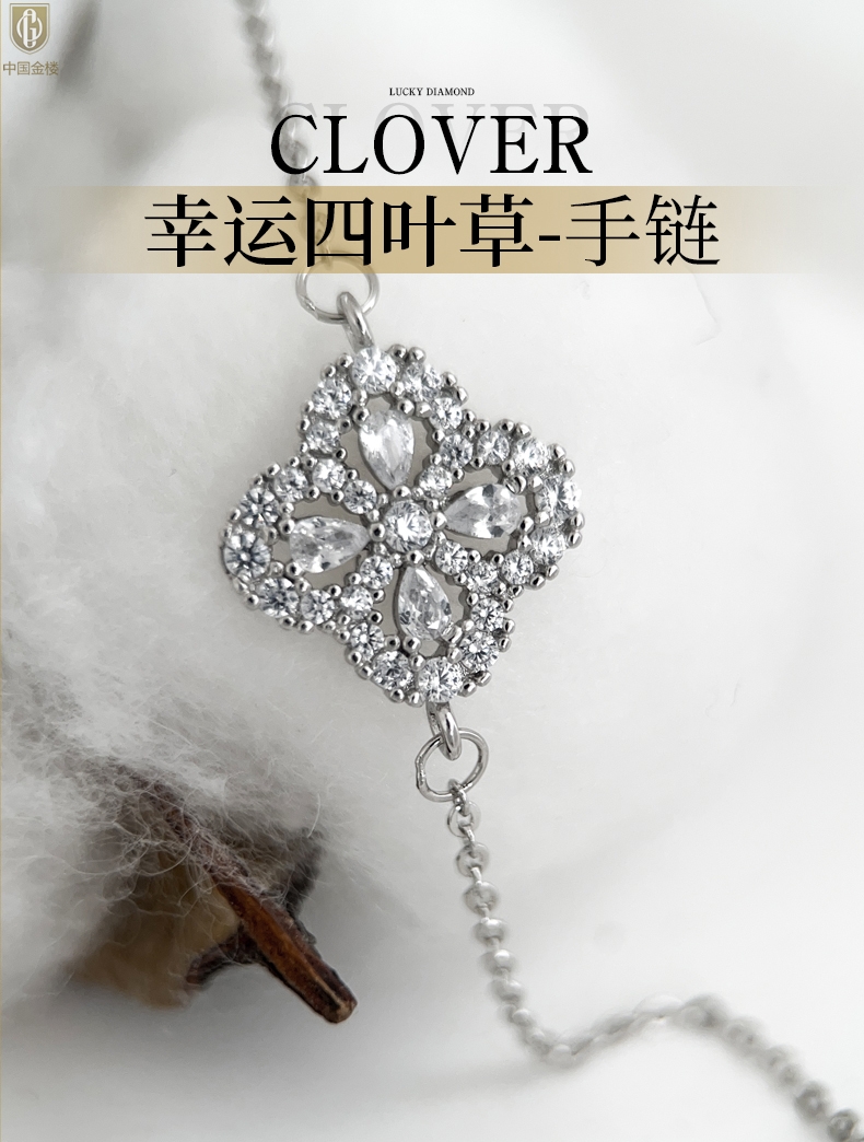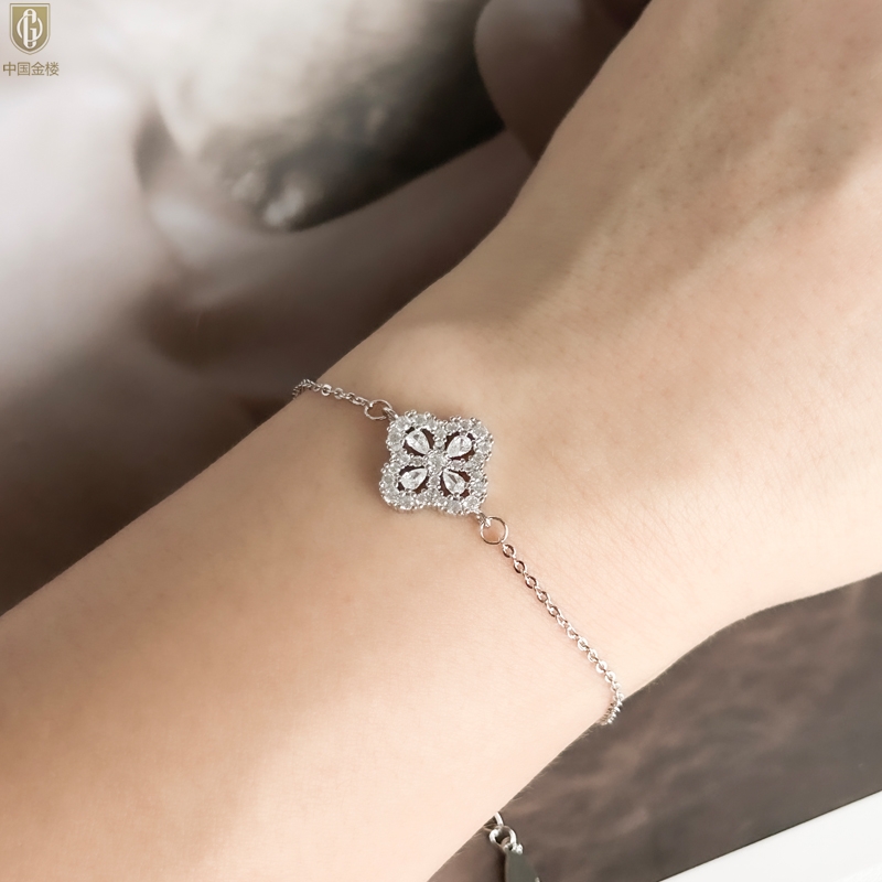 【品名】中国金楼幸运满钻四叶草K铂金手链(高定礼盒)