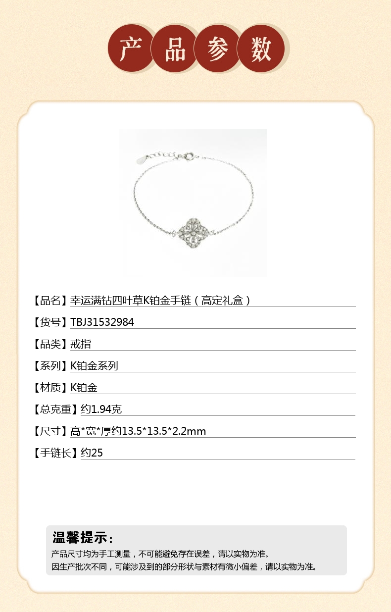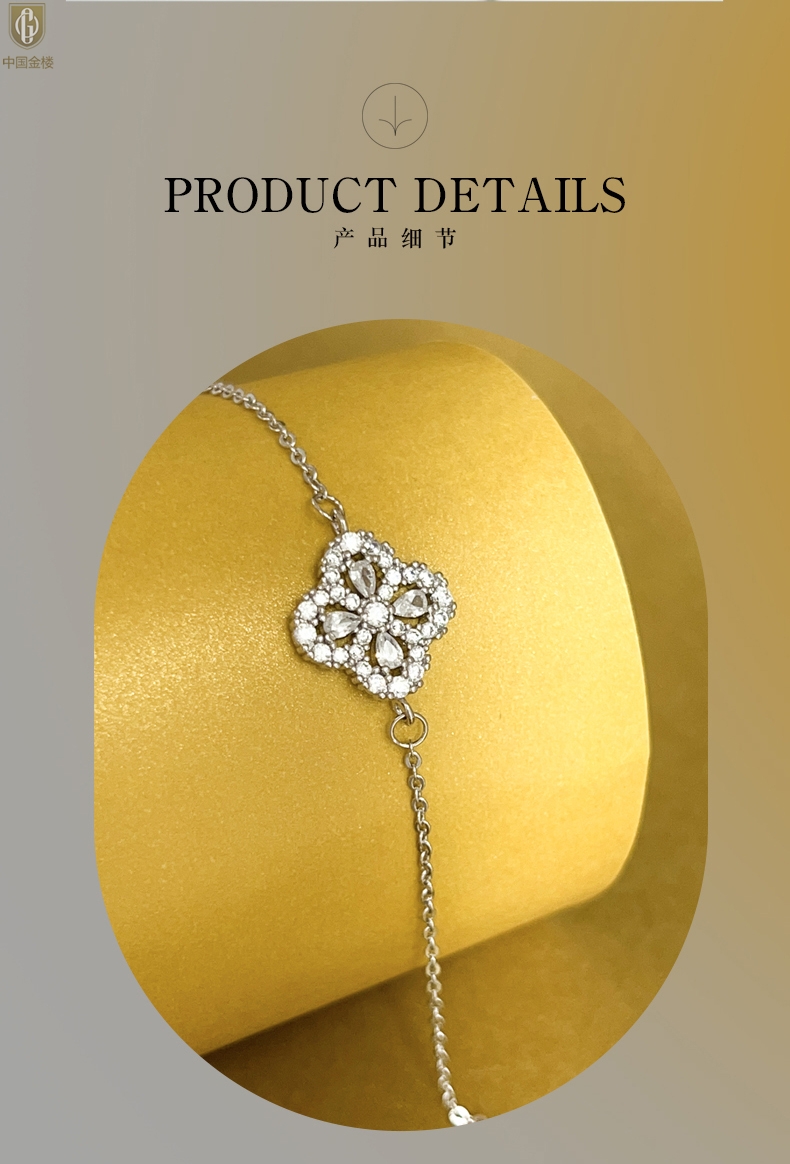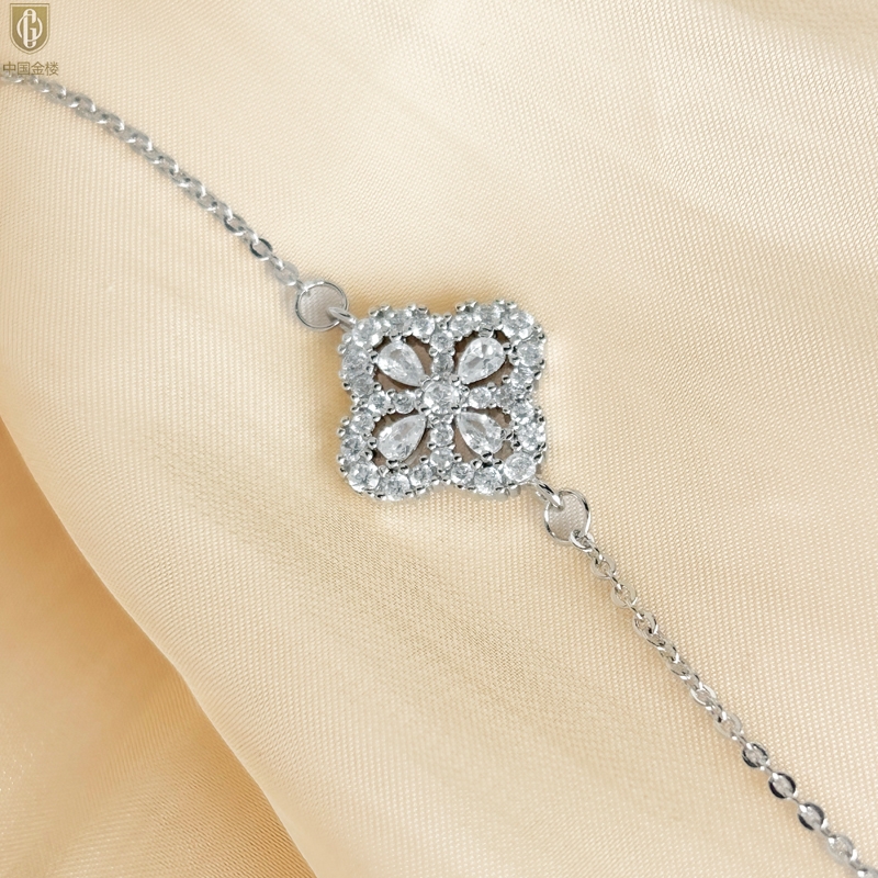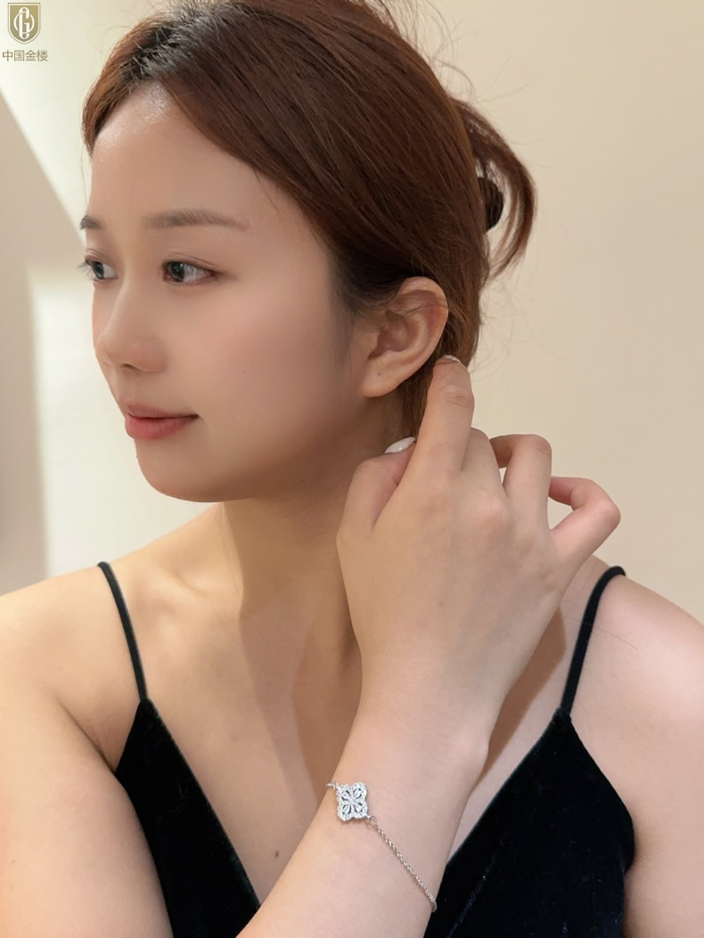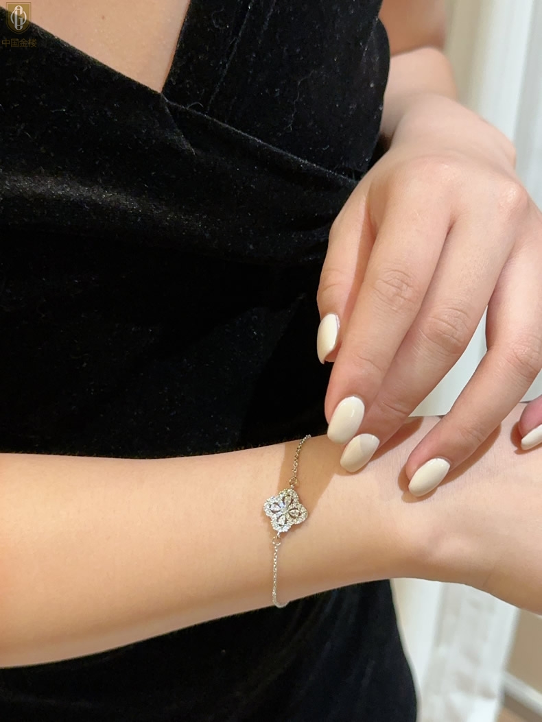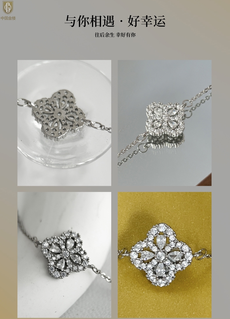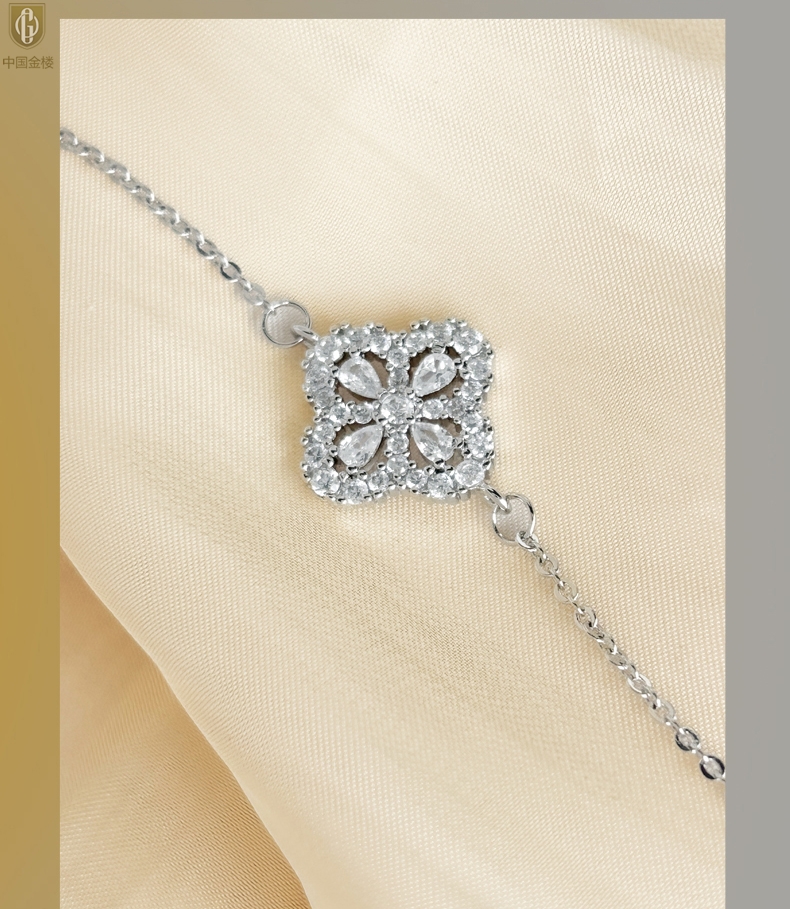 【品名】中国金楼幸运满钻四叶草K铂金手链(高定礼盒)