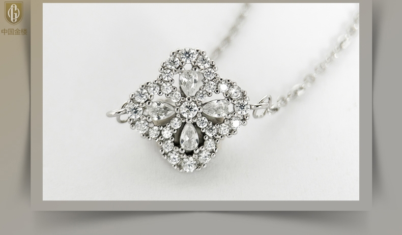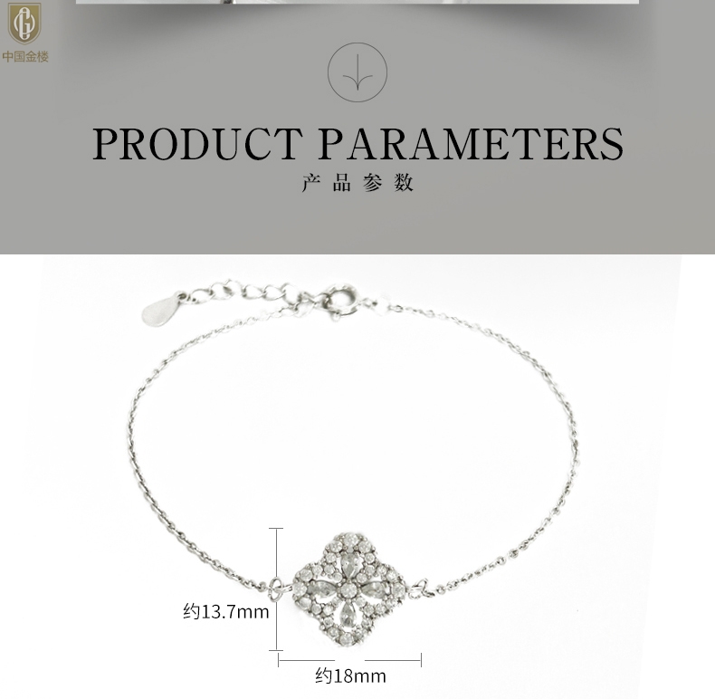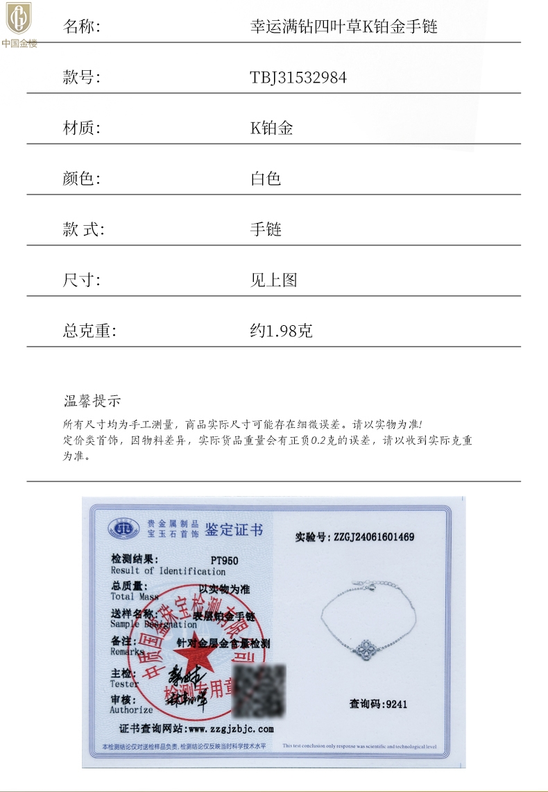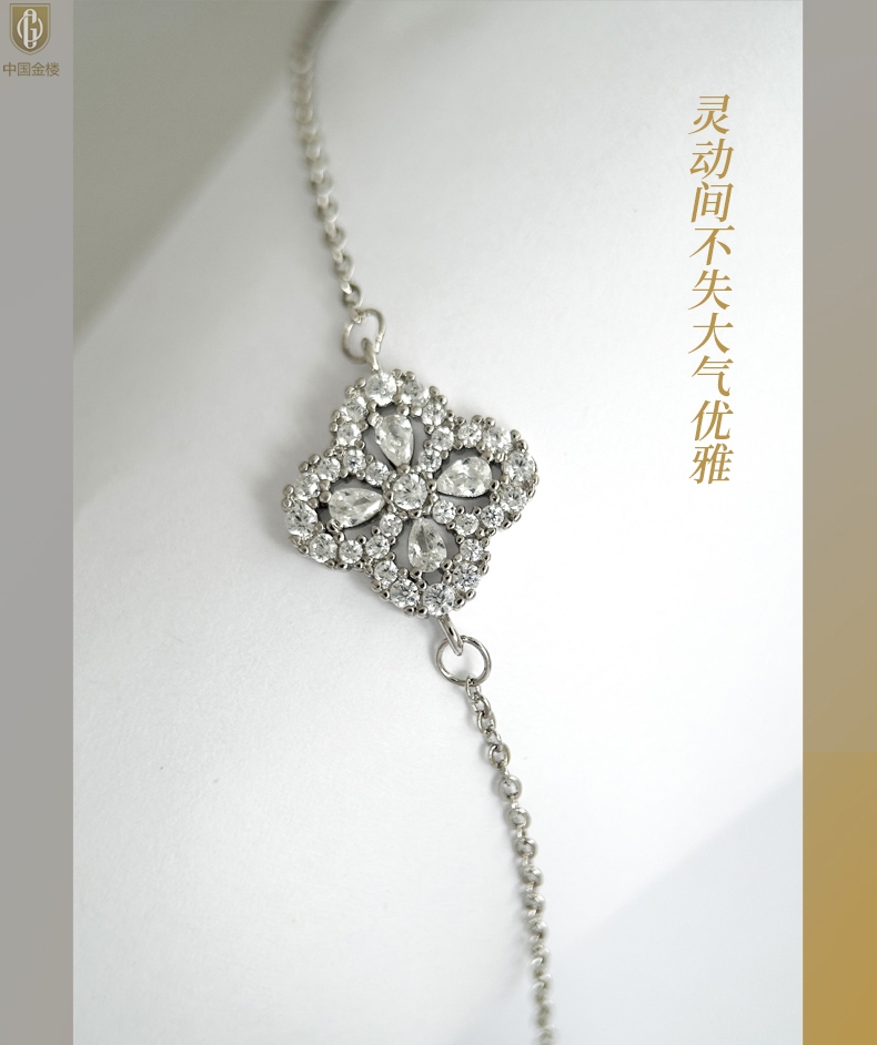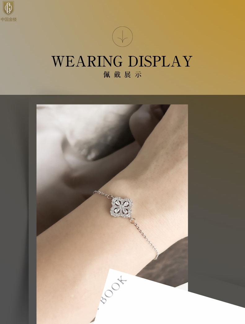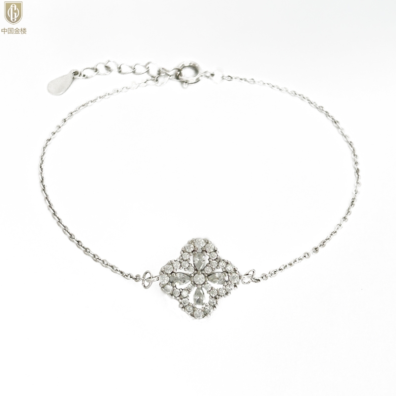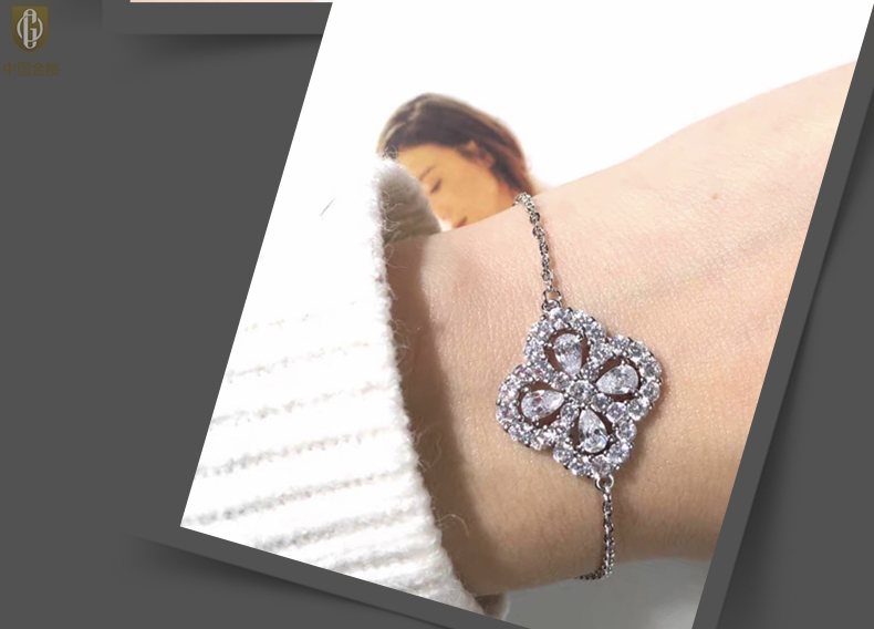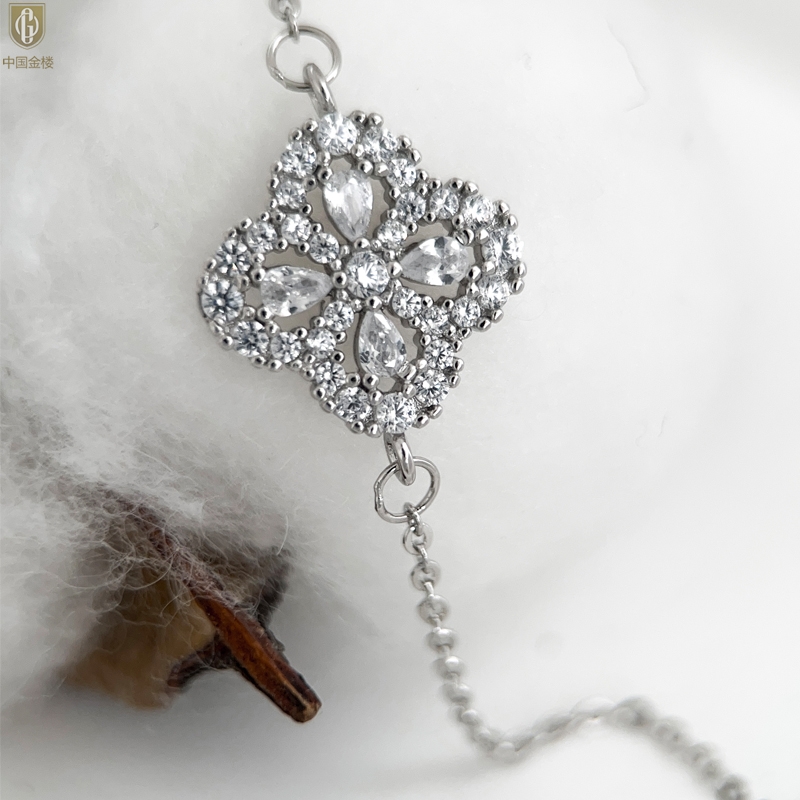 【品名】中国金楼幸运满钻四叶草K铂金手链(高定礼盒)