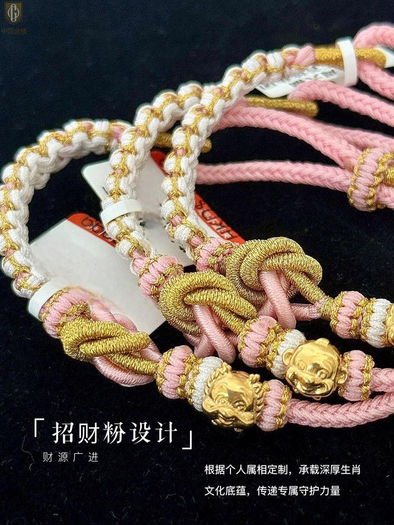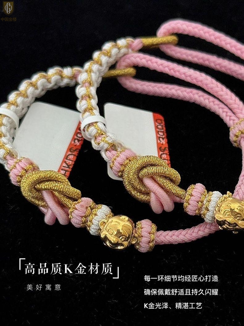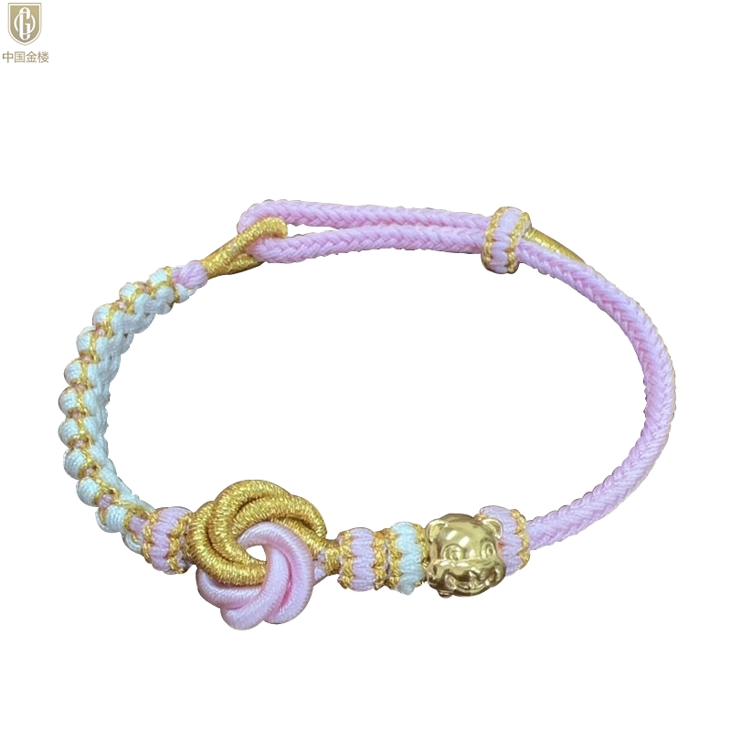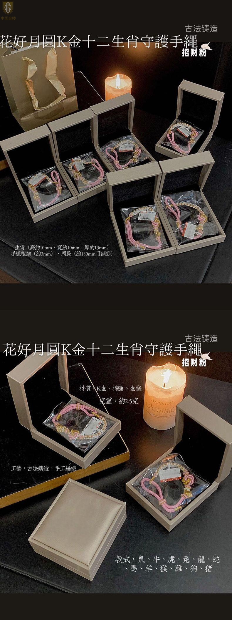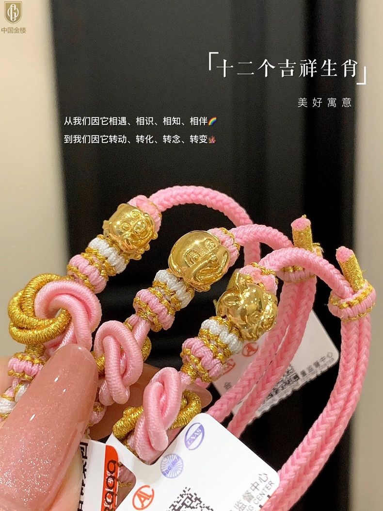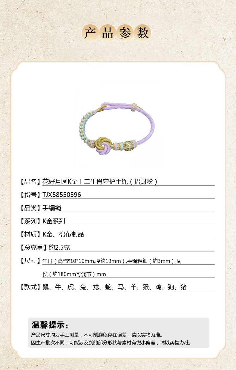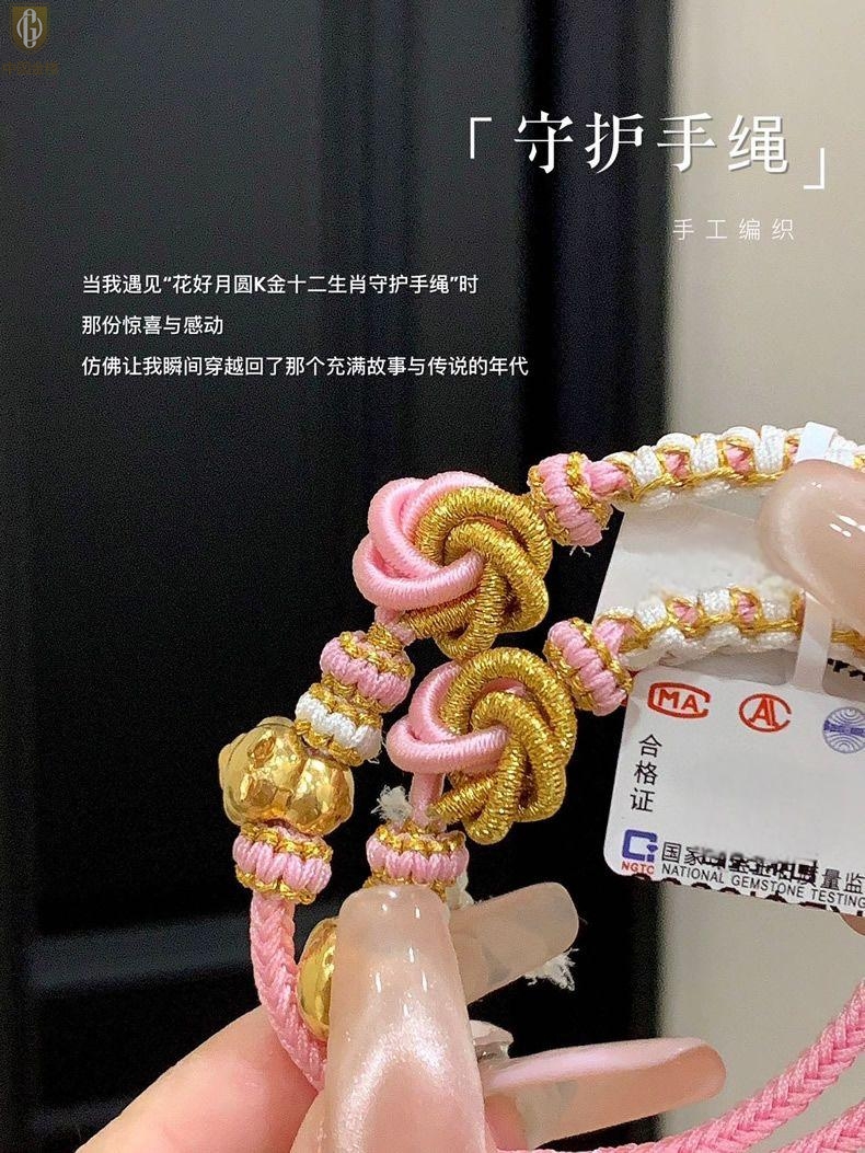 【品名】中国金楼花好月圆K金十二生肖守护手绳(招财粉)