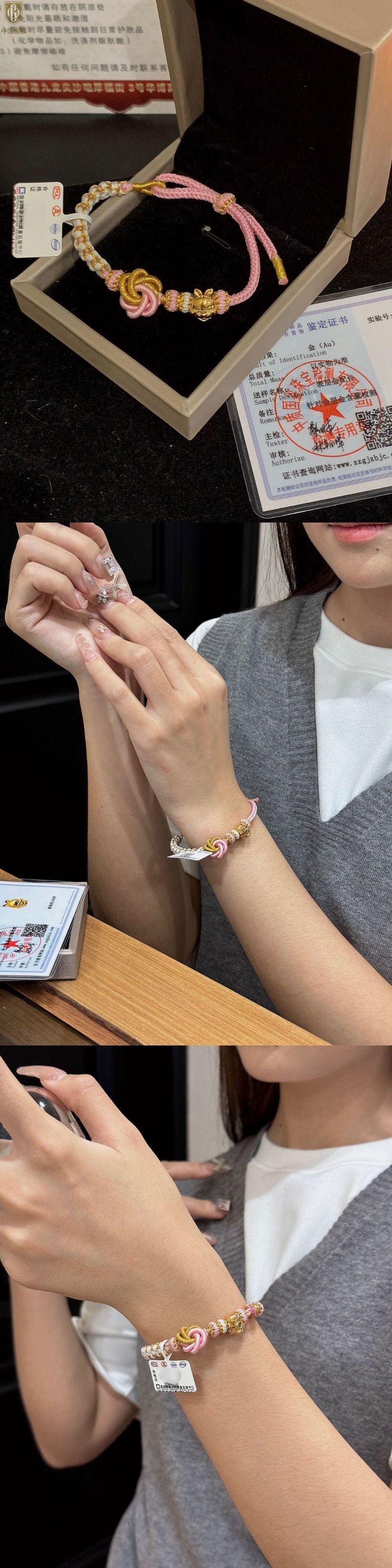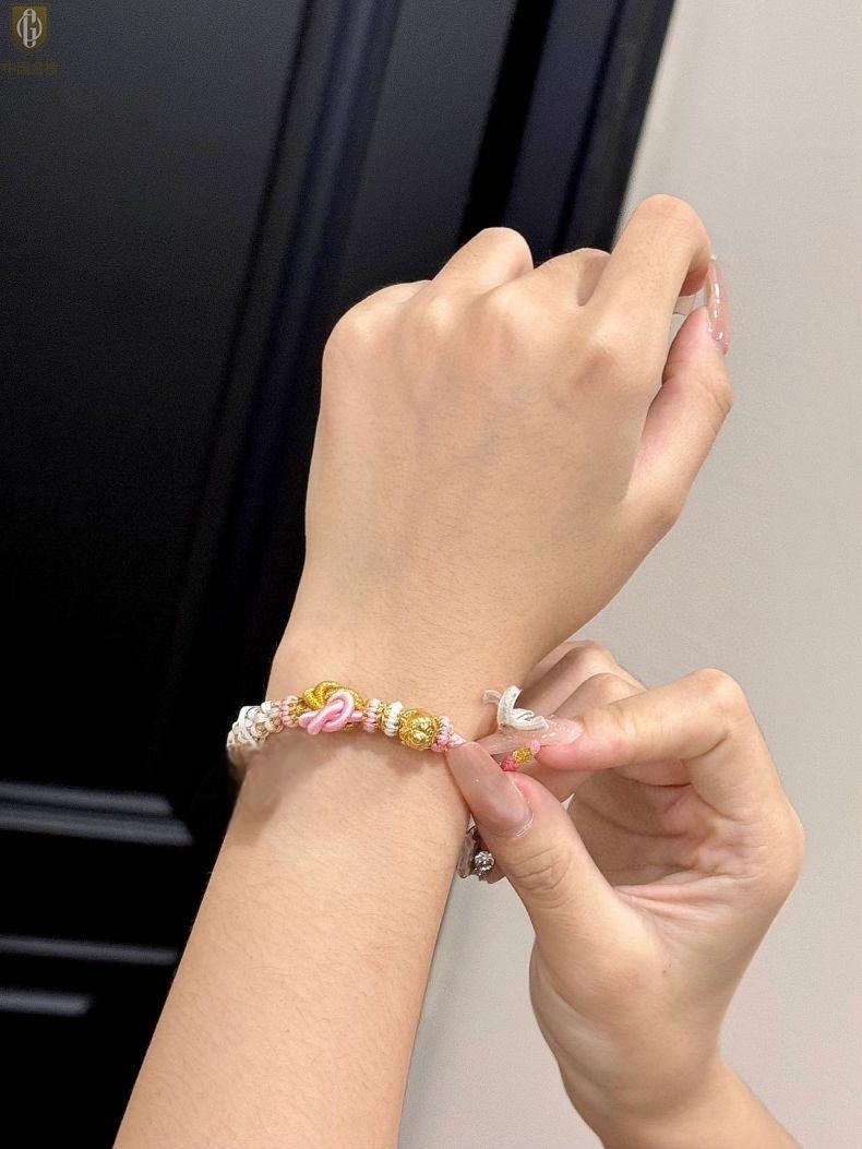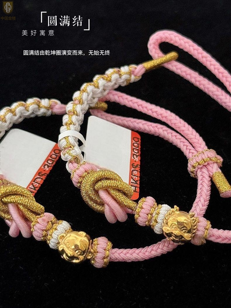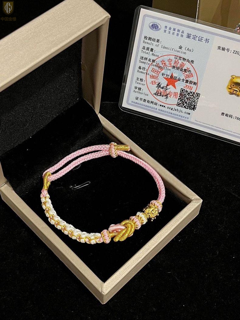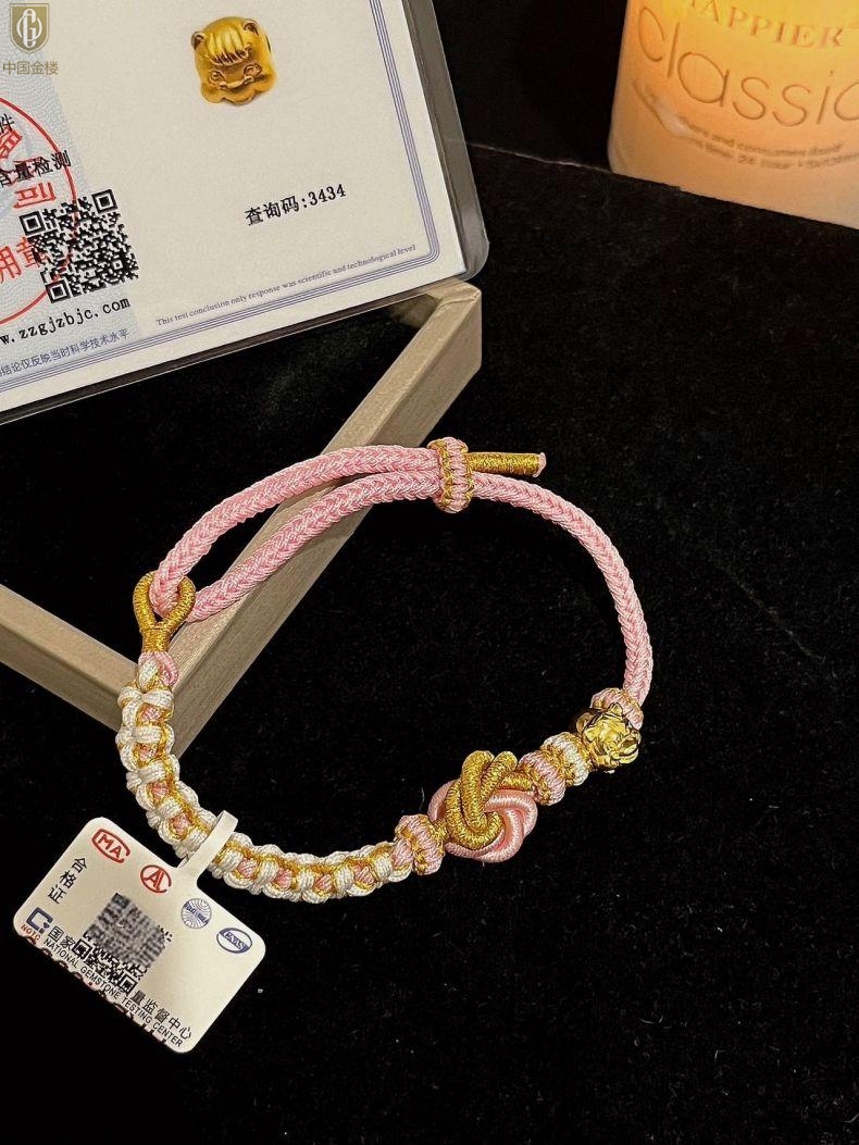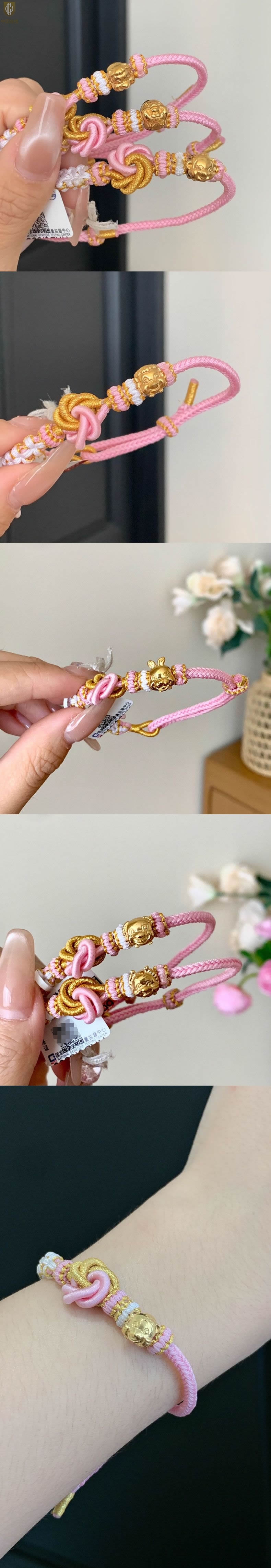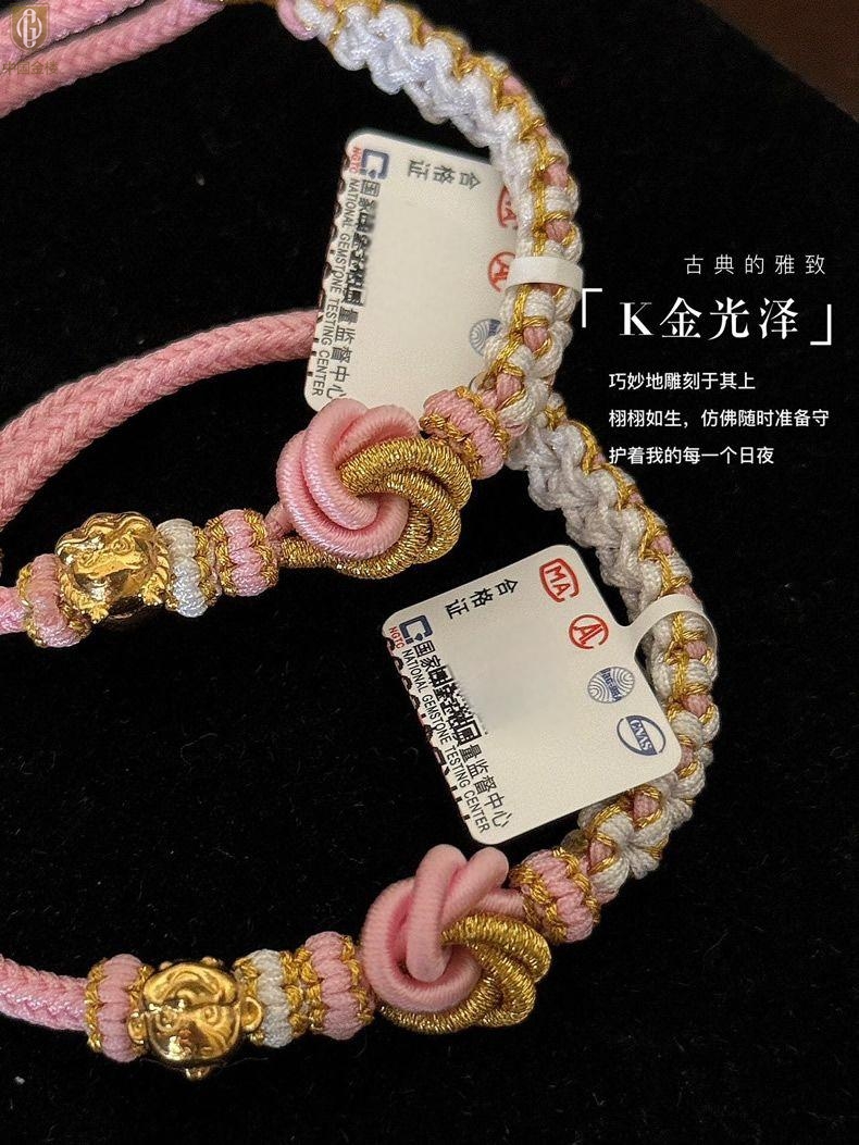 【品名】中国金楼花好月圆K金十二生肖守护手绳(招财粉)