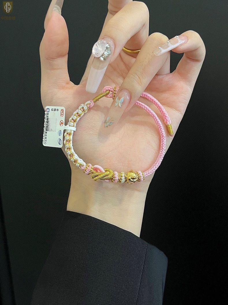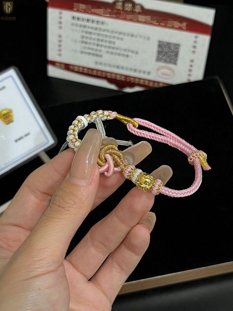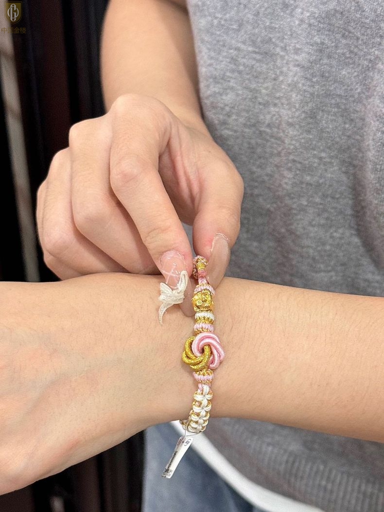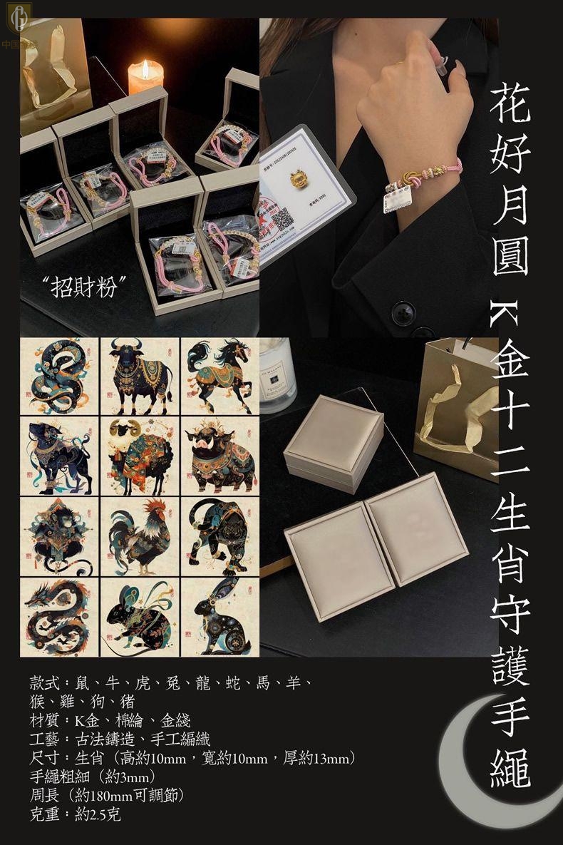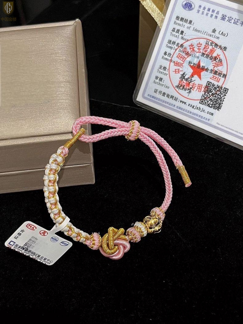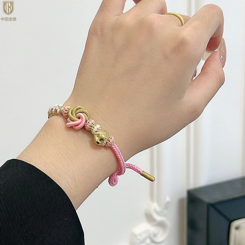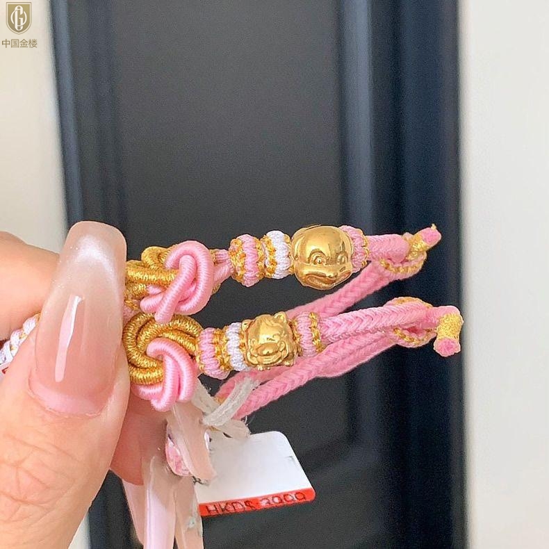 【品名】中国金楼花好月圆K金十二生肖守护手绳(招财粉)