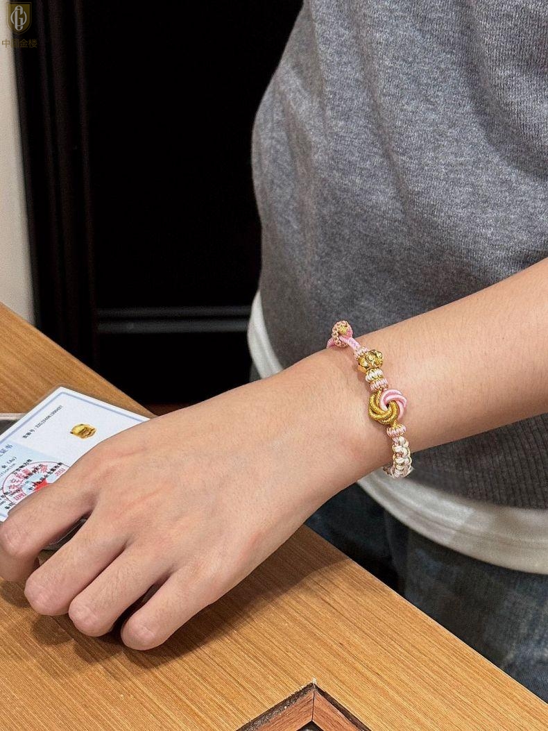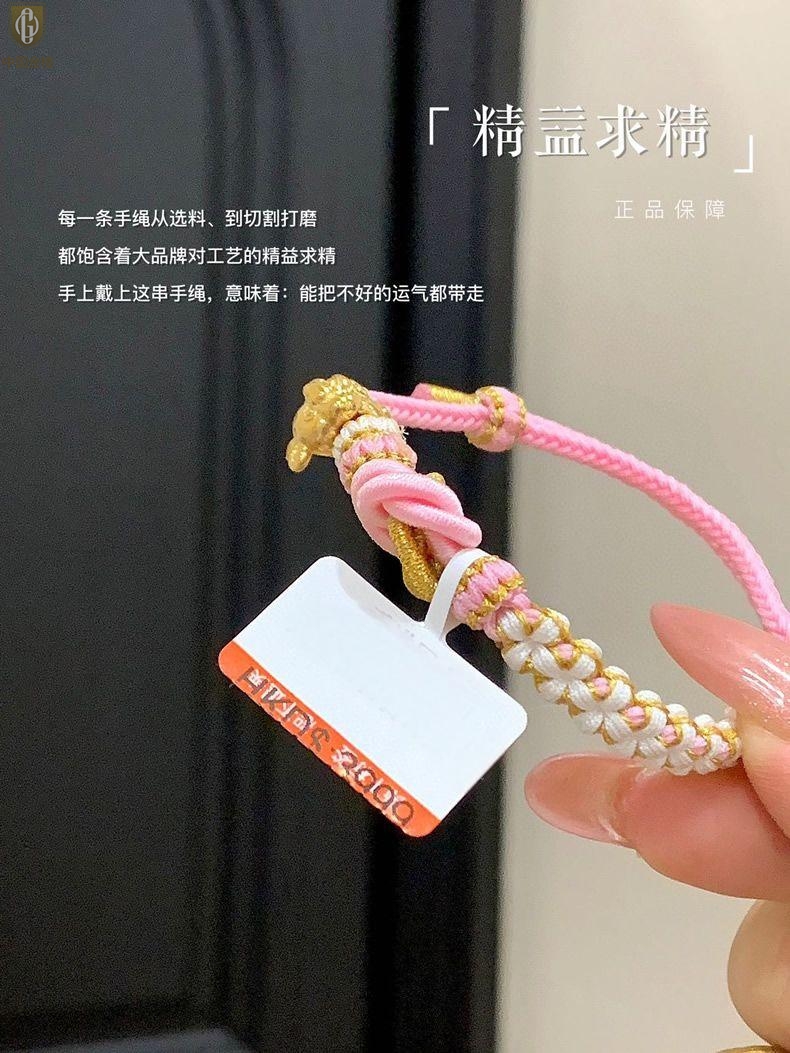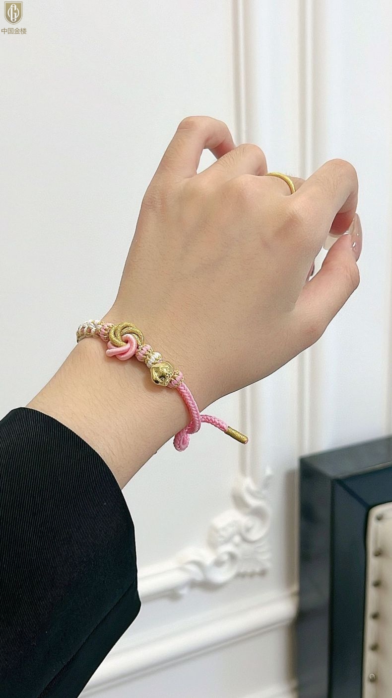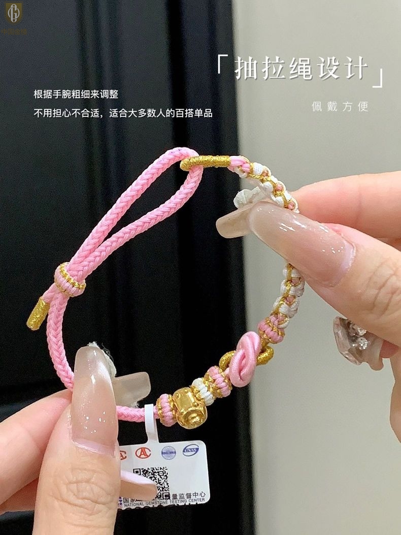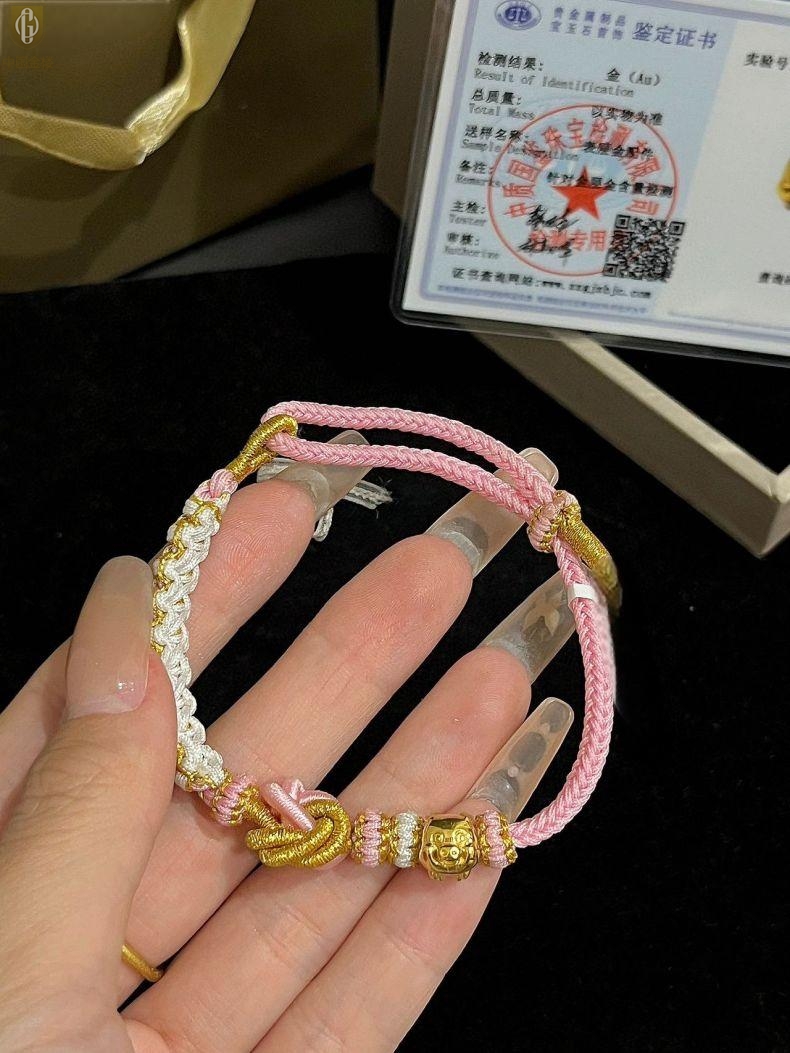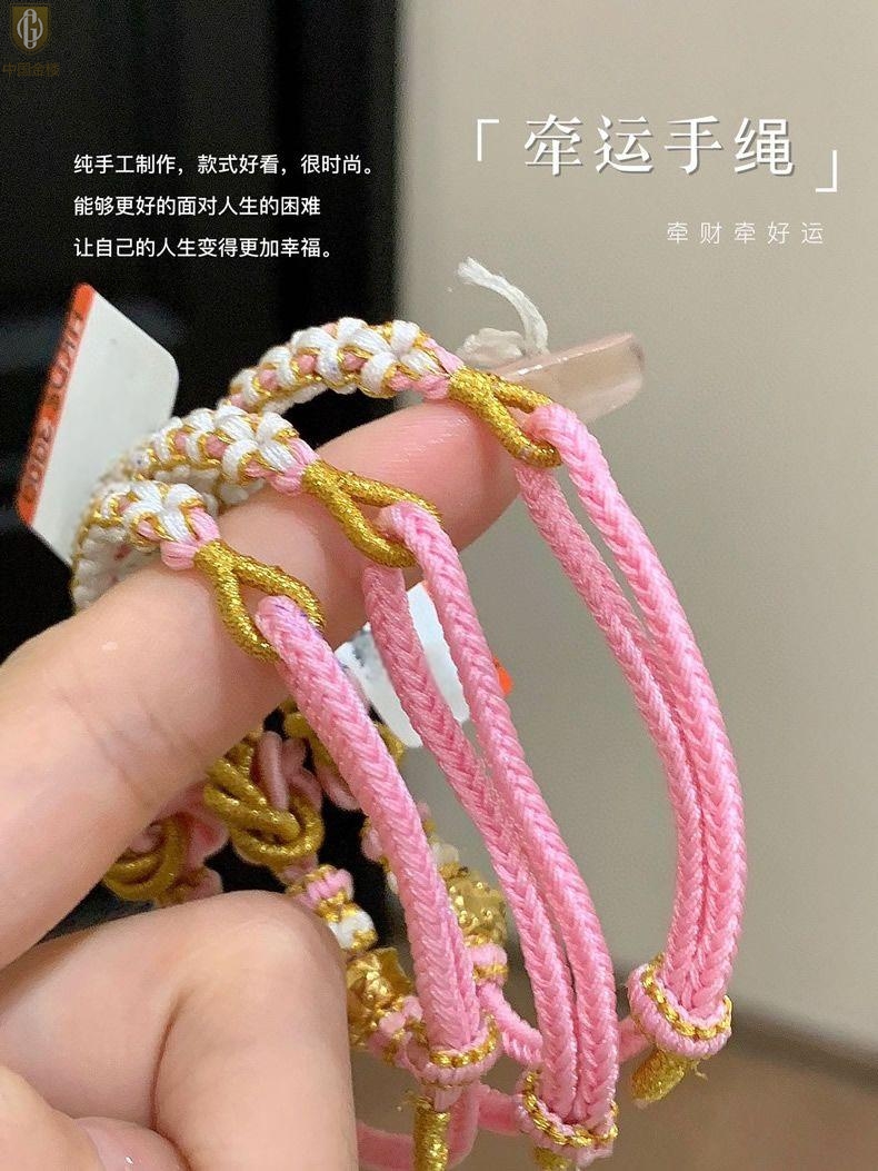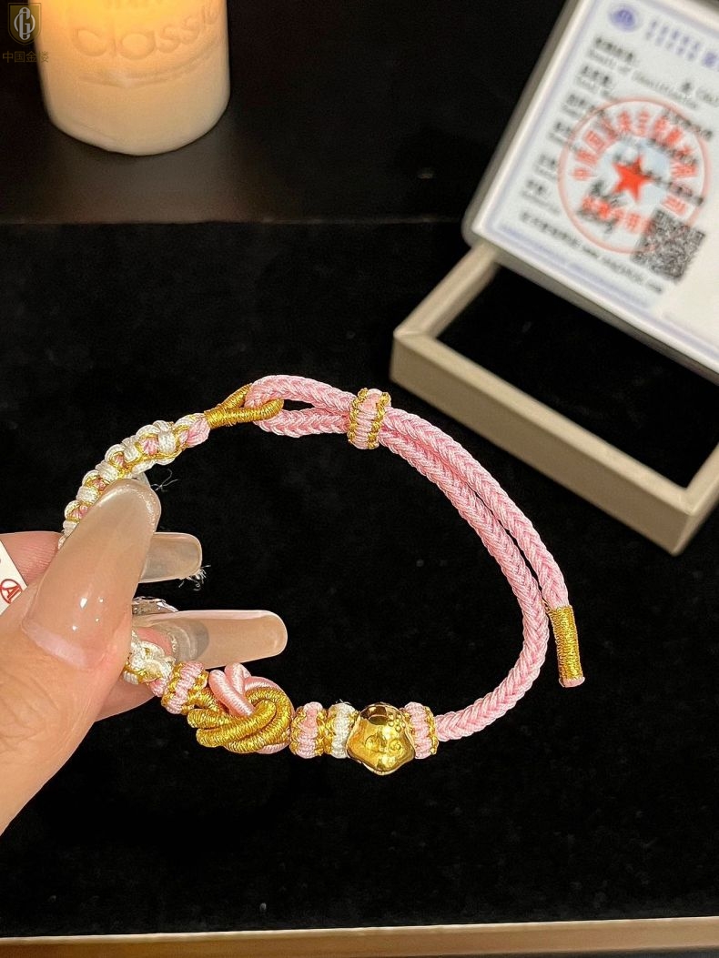 【品名】中国金楼花好月圆K金十二生肖守护手绳(招财粉)
