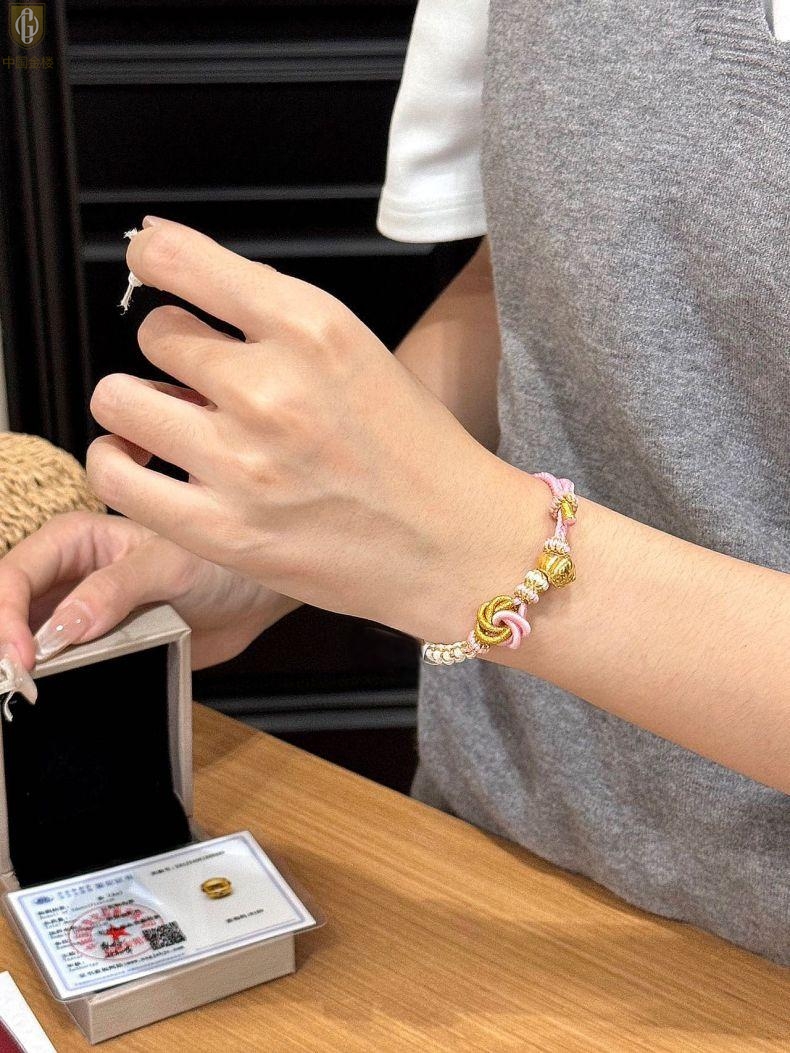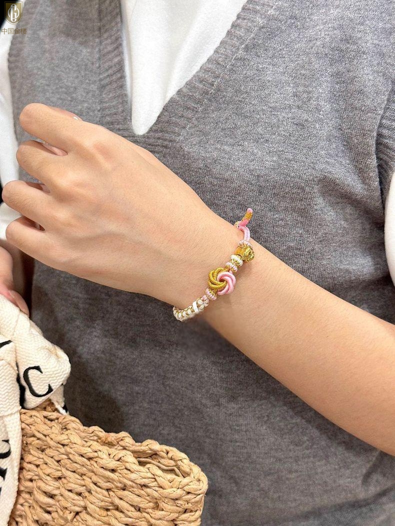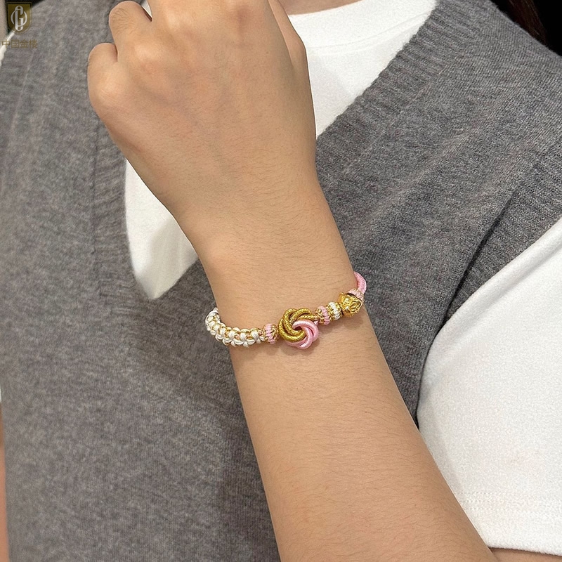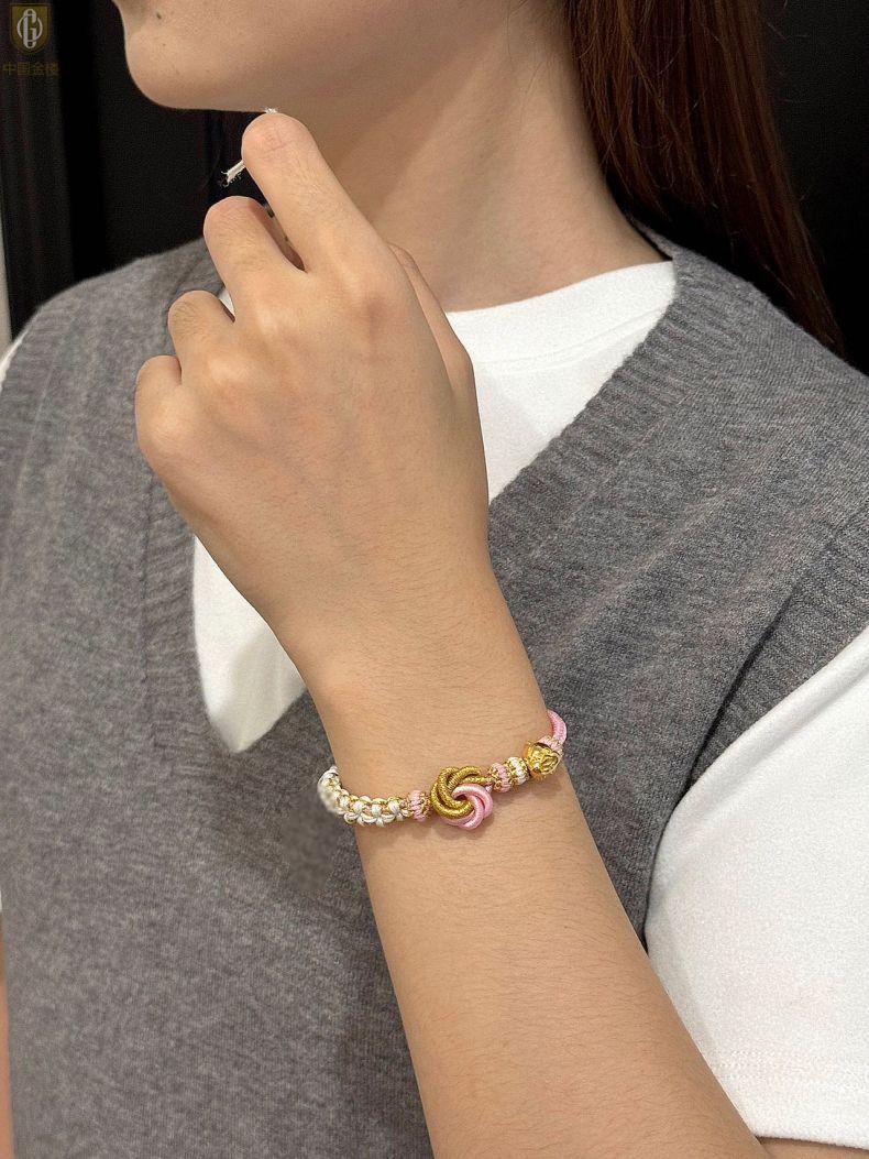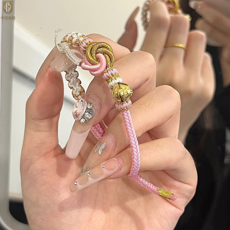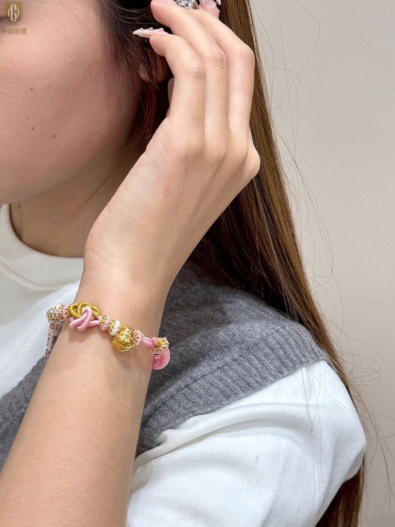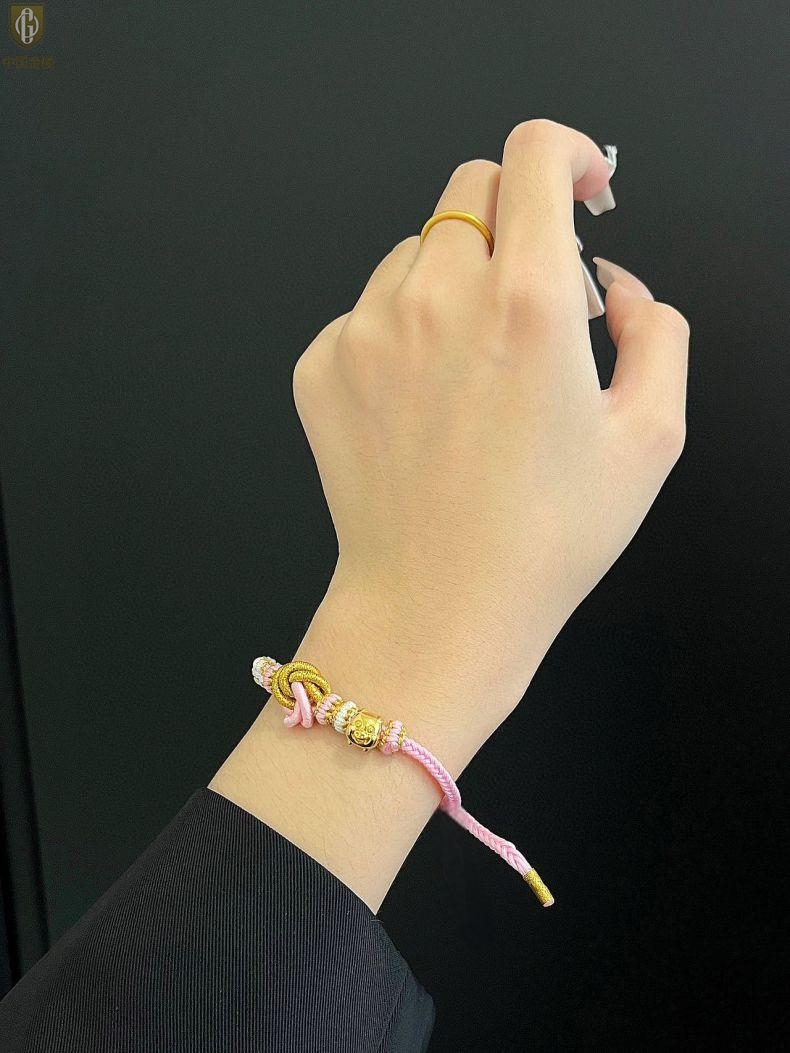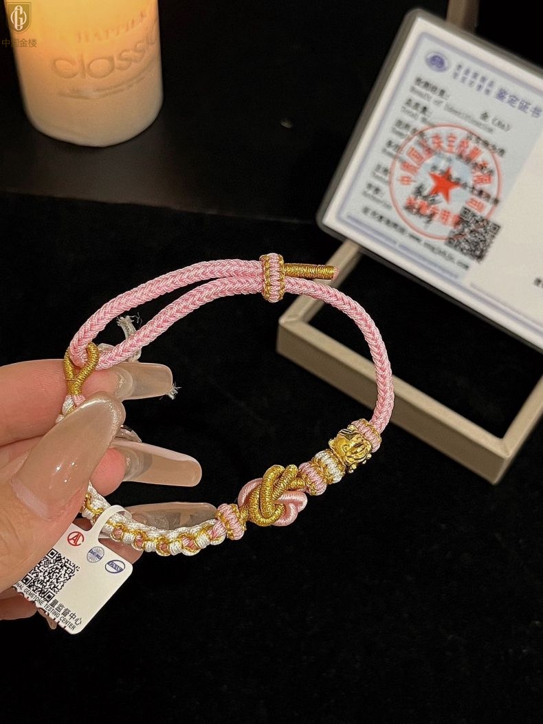 【品名】中国金楼花好月圆K金十二生肖守护手绳(招财粉)