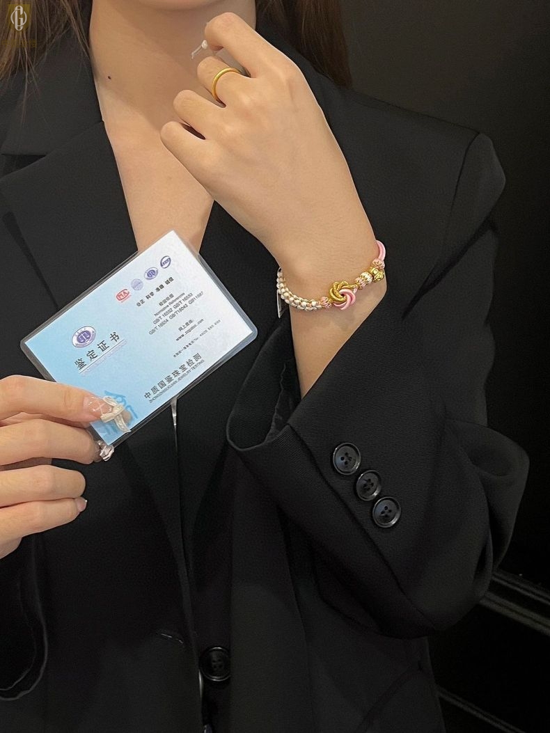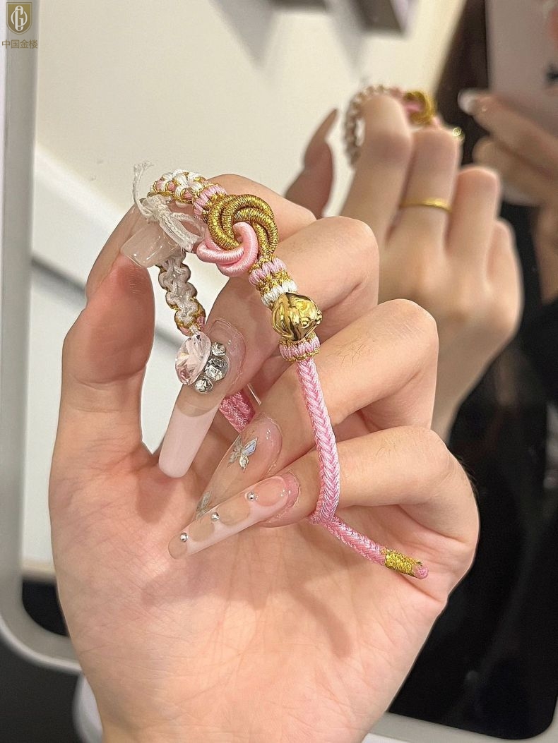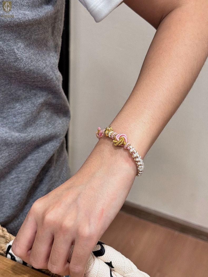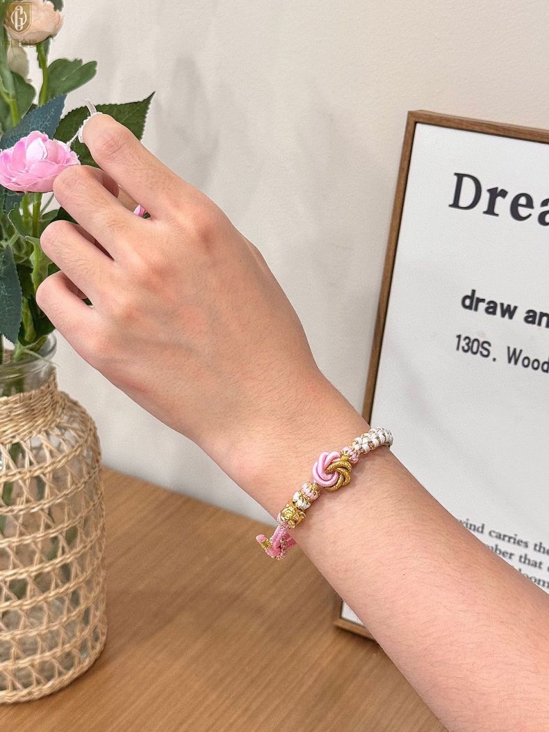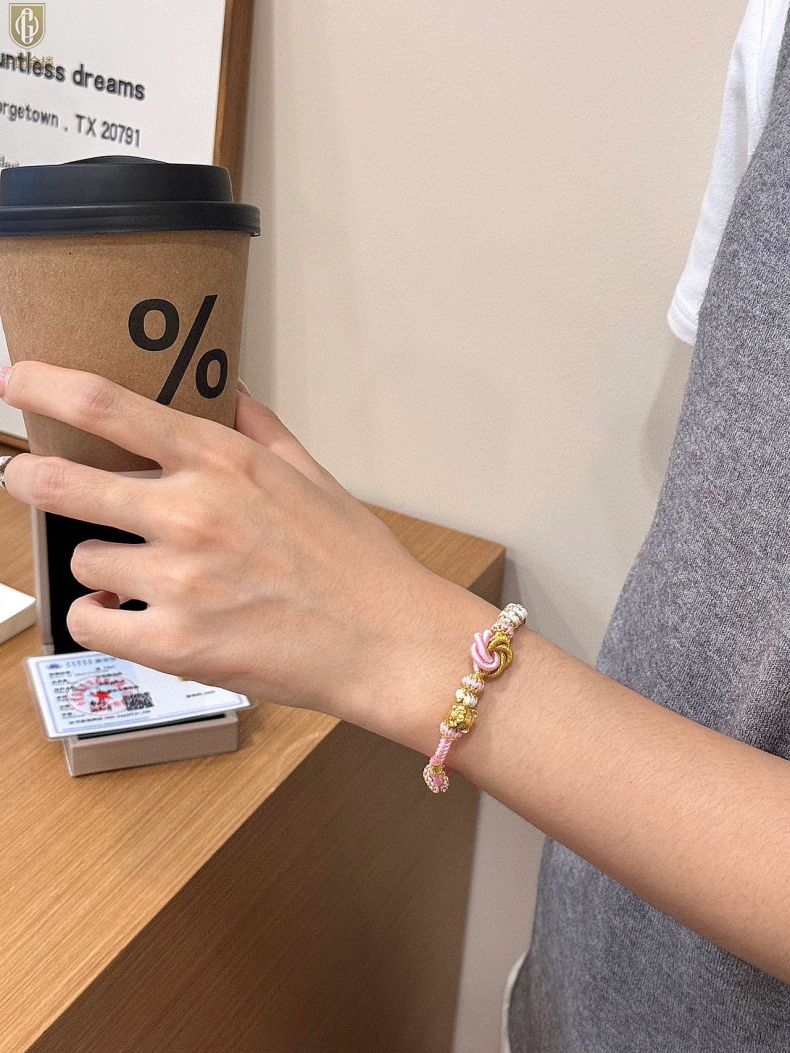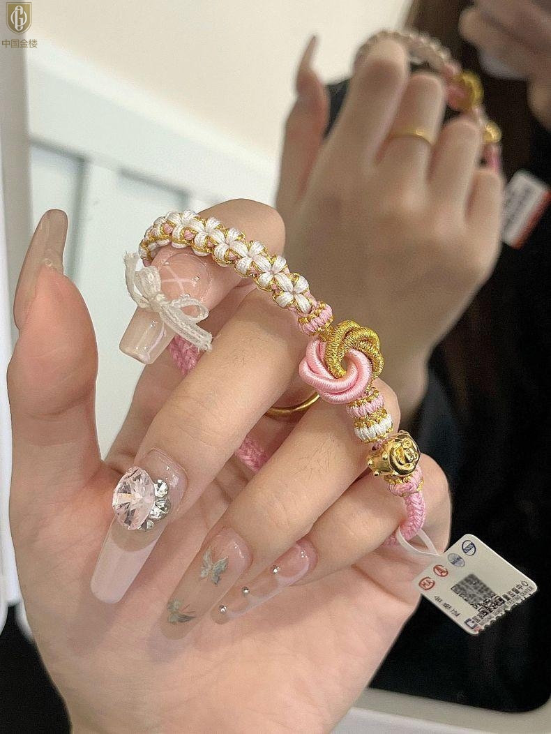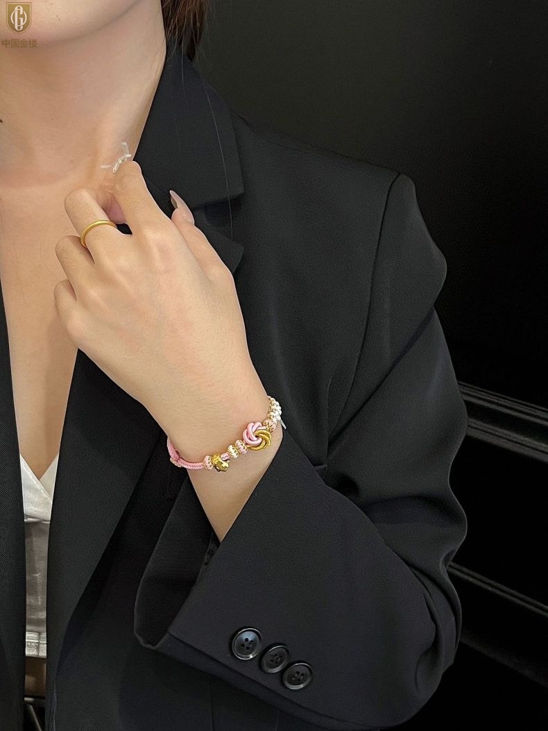 【品名】中国金楼花好月圆K金十二生肖守护手绳(招财粉)