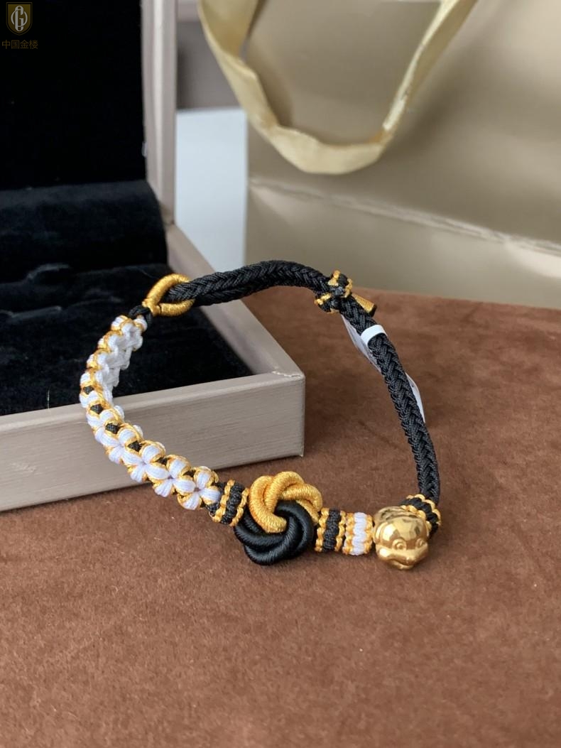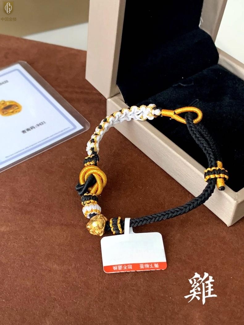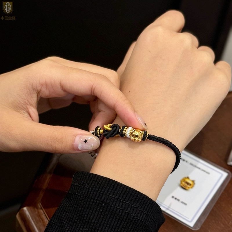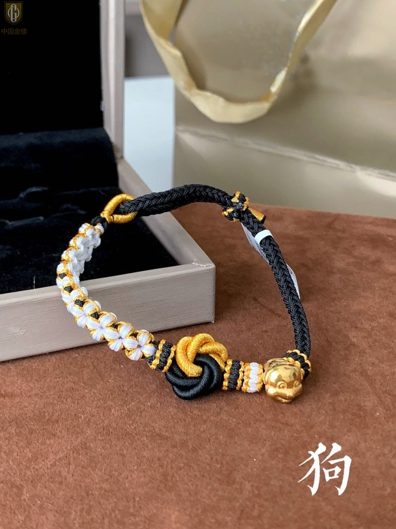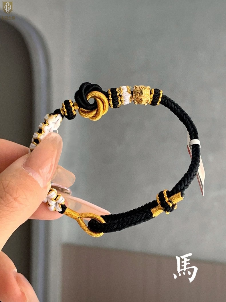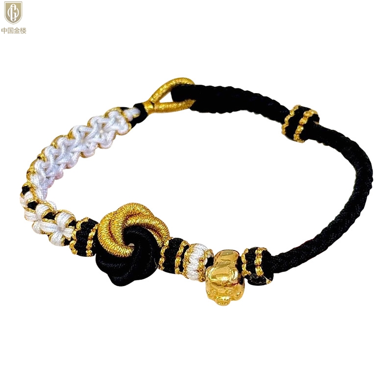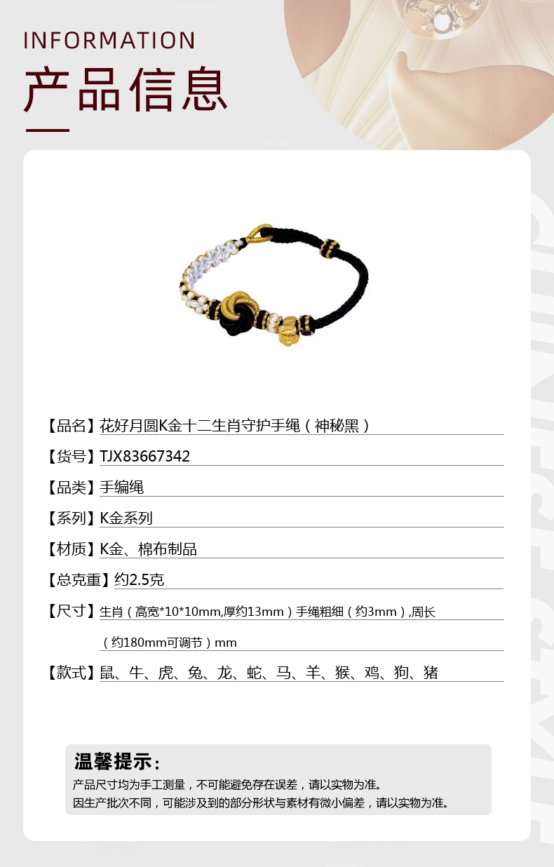 【品名】中国金楼花好月圆K金十二生肖守护手绳(神秘黑)