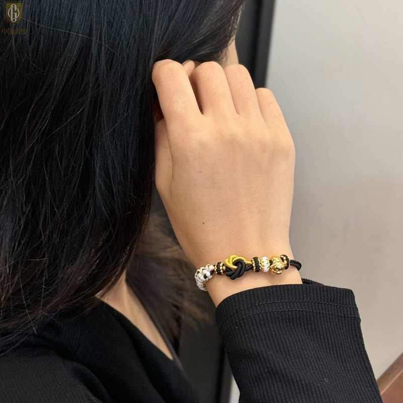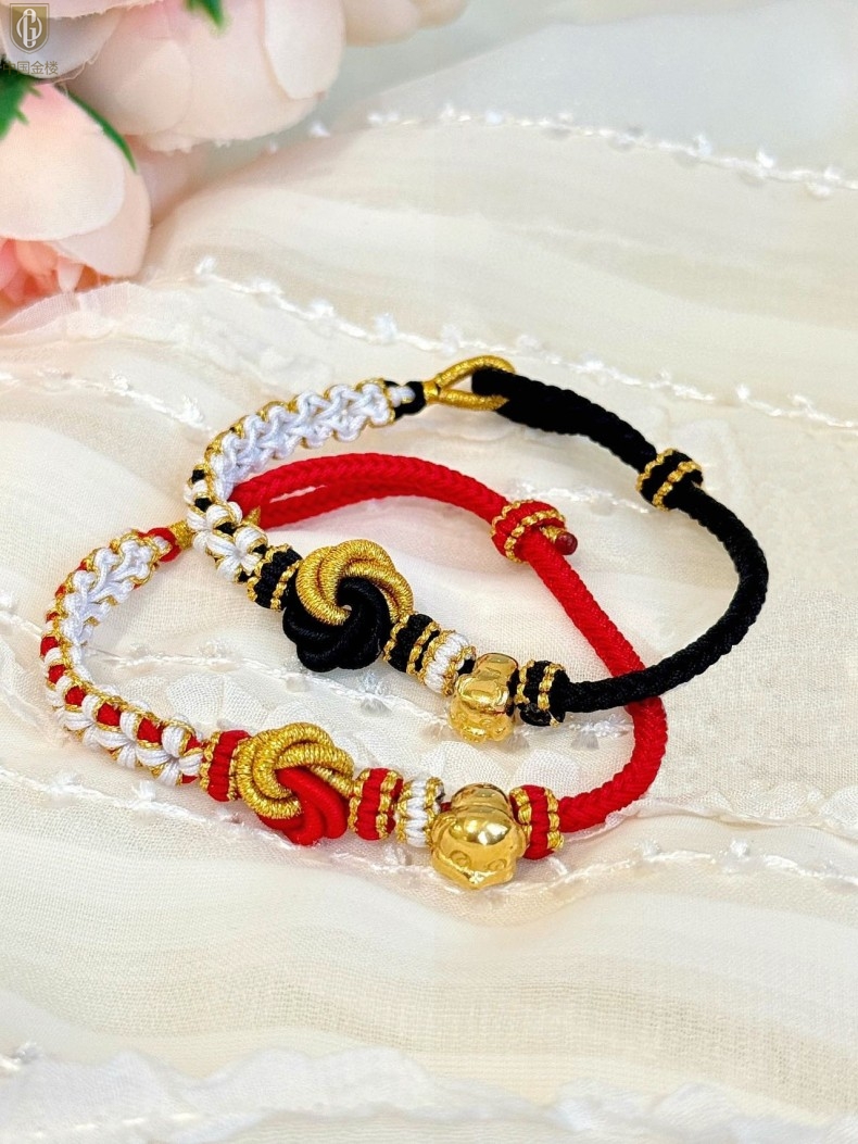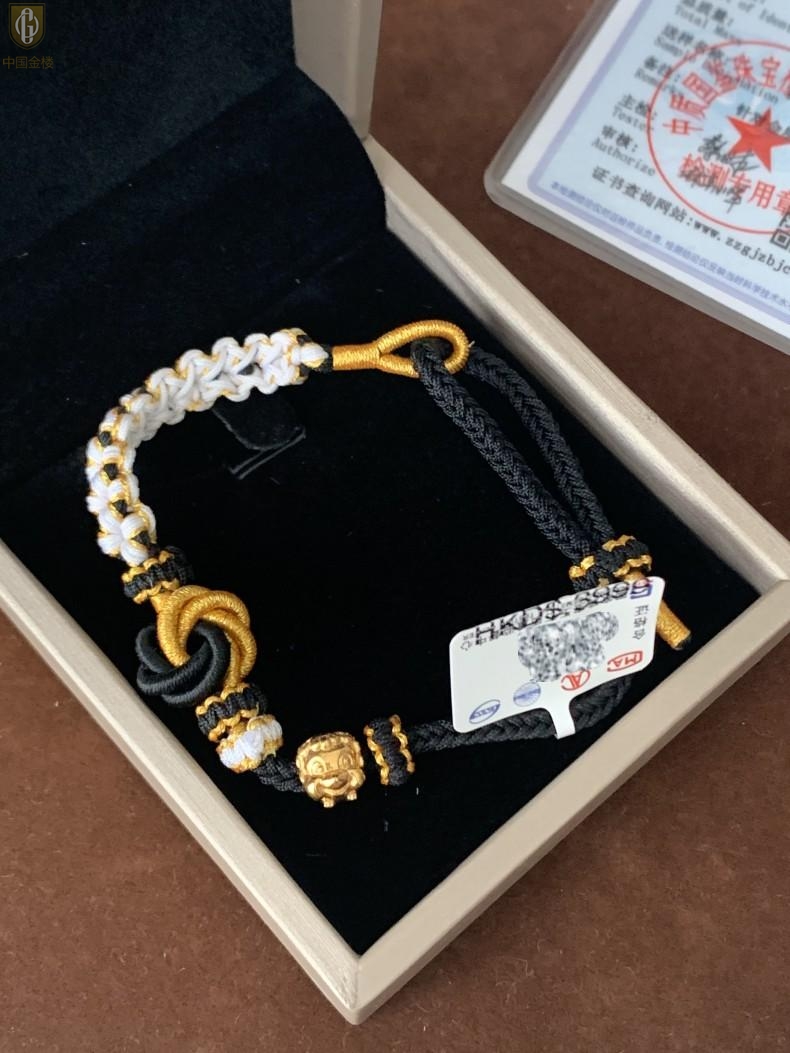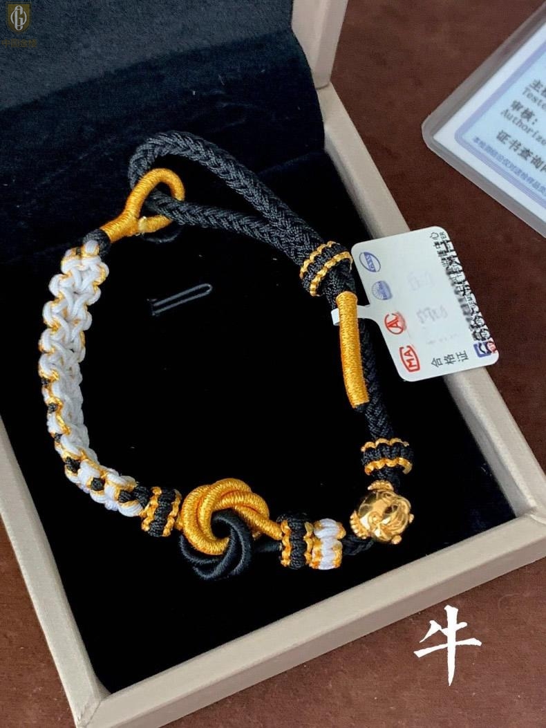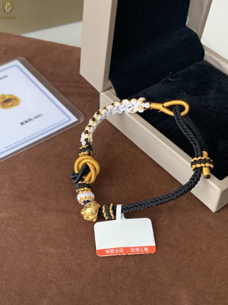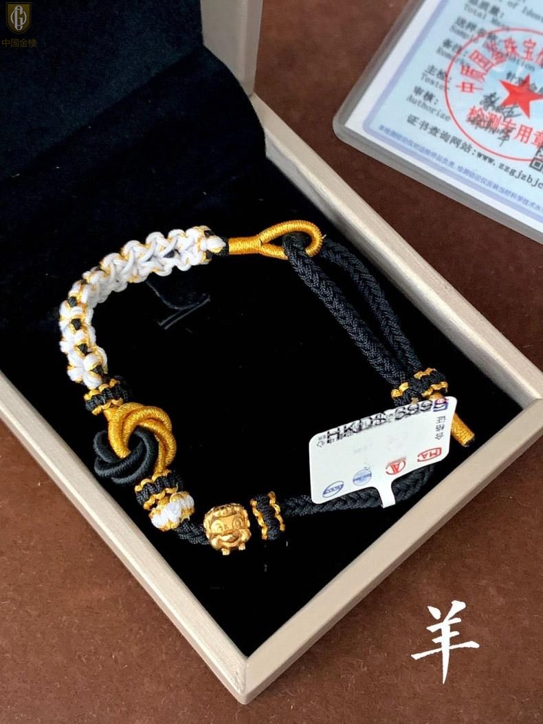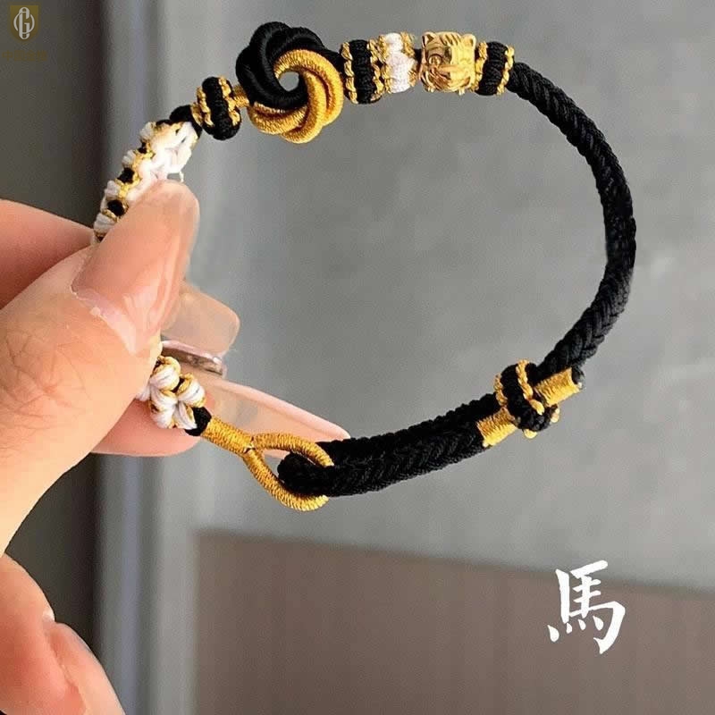 【品名】中国金楼花好月圆K金十二生肖守护手绳(神秘黑)