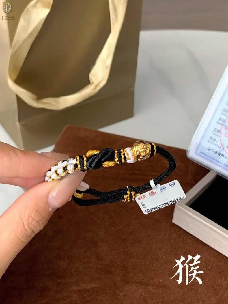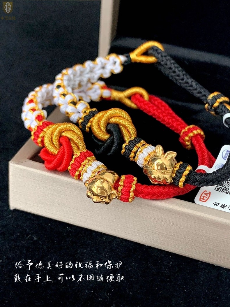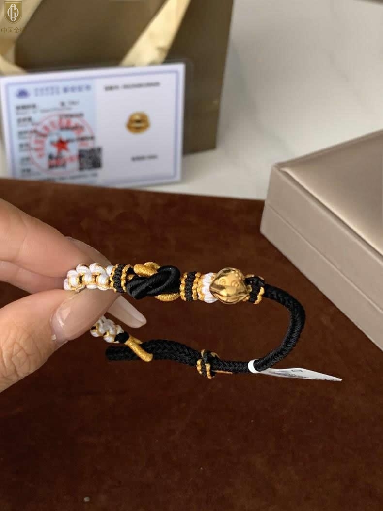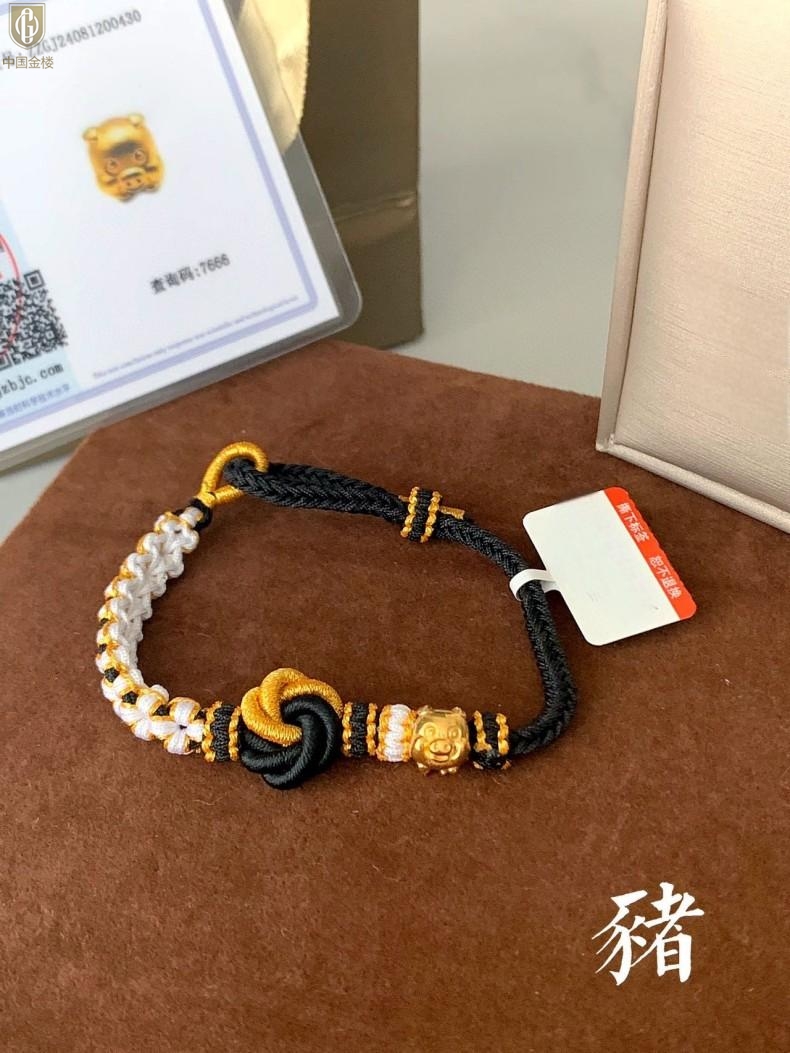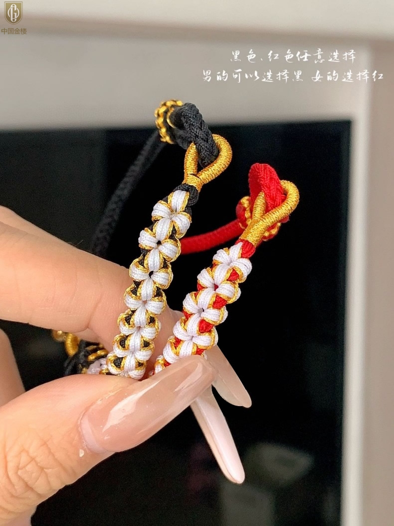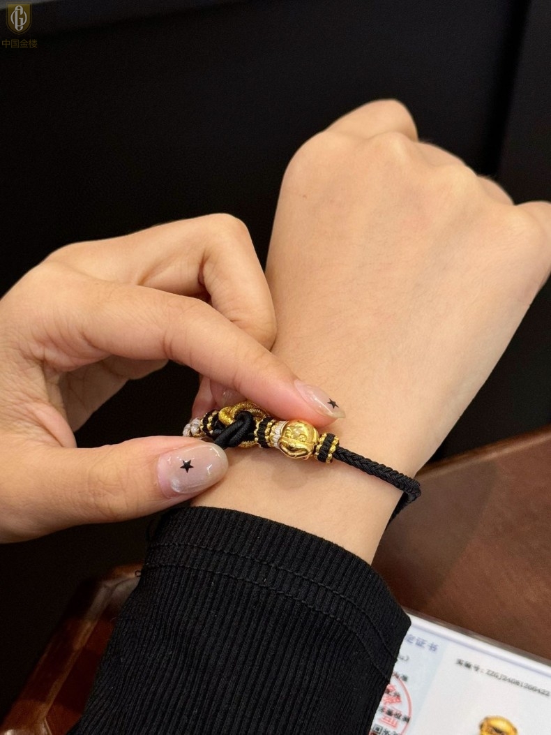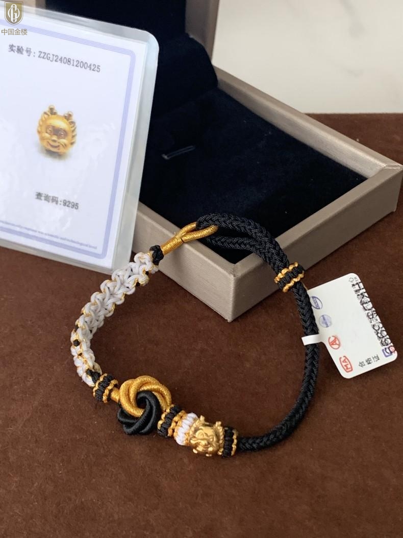 【品名】中国金楼花好月圆K金十二生肖守护手绳(神秘黑)