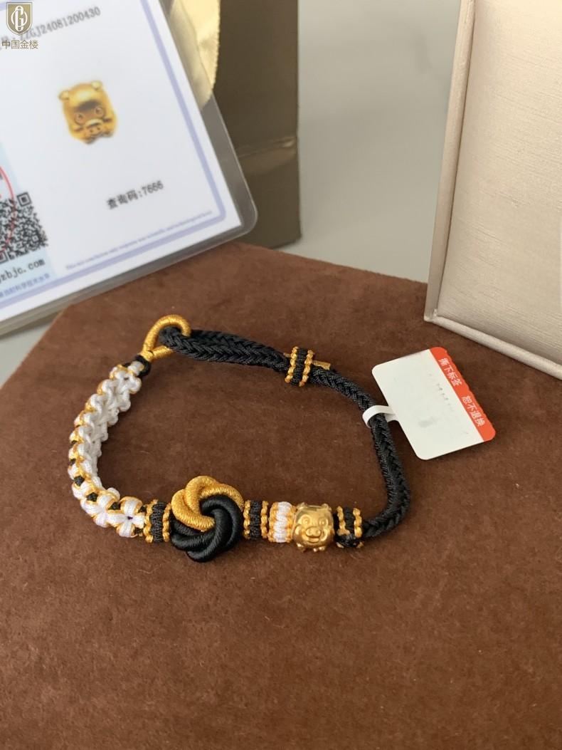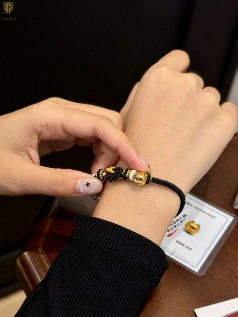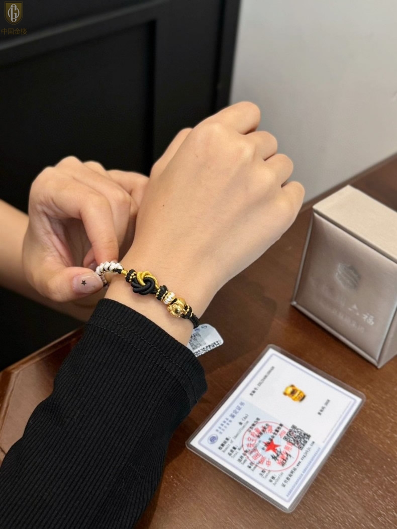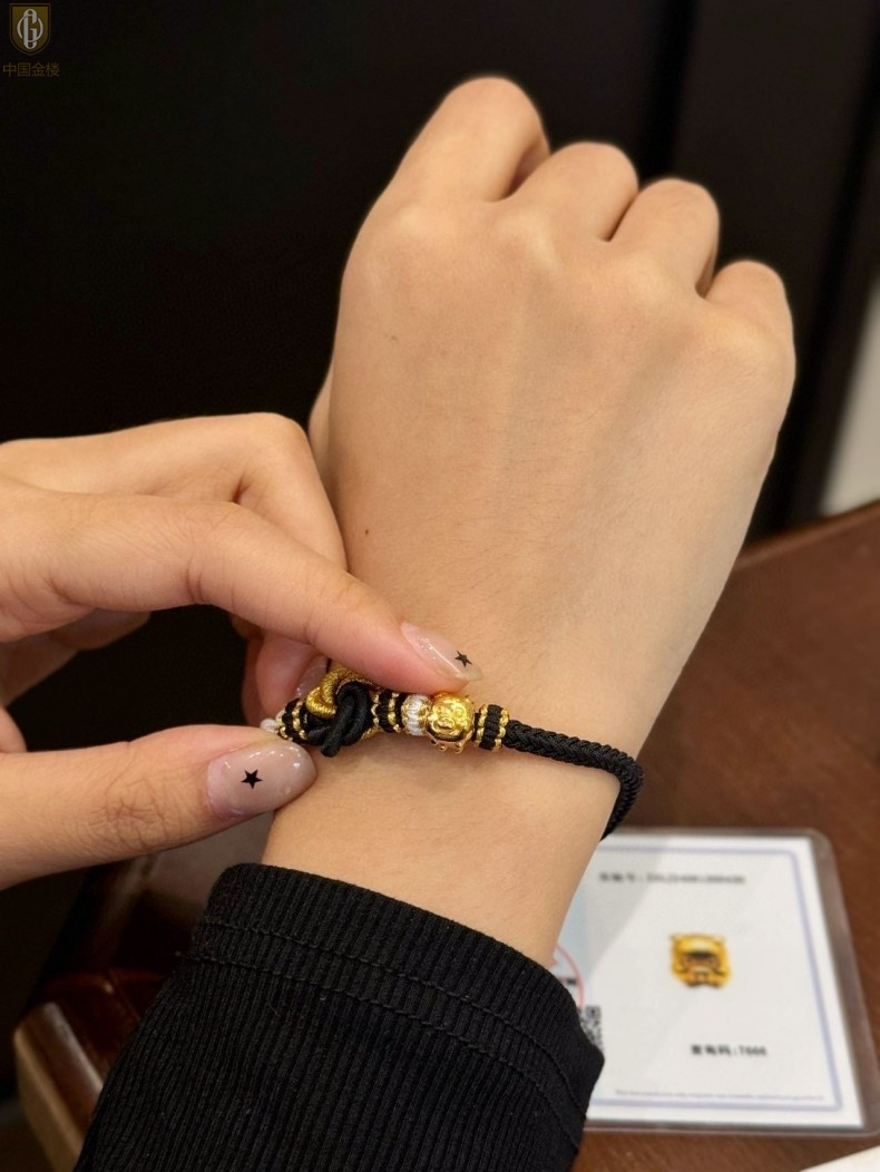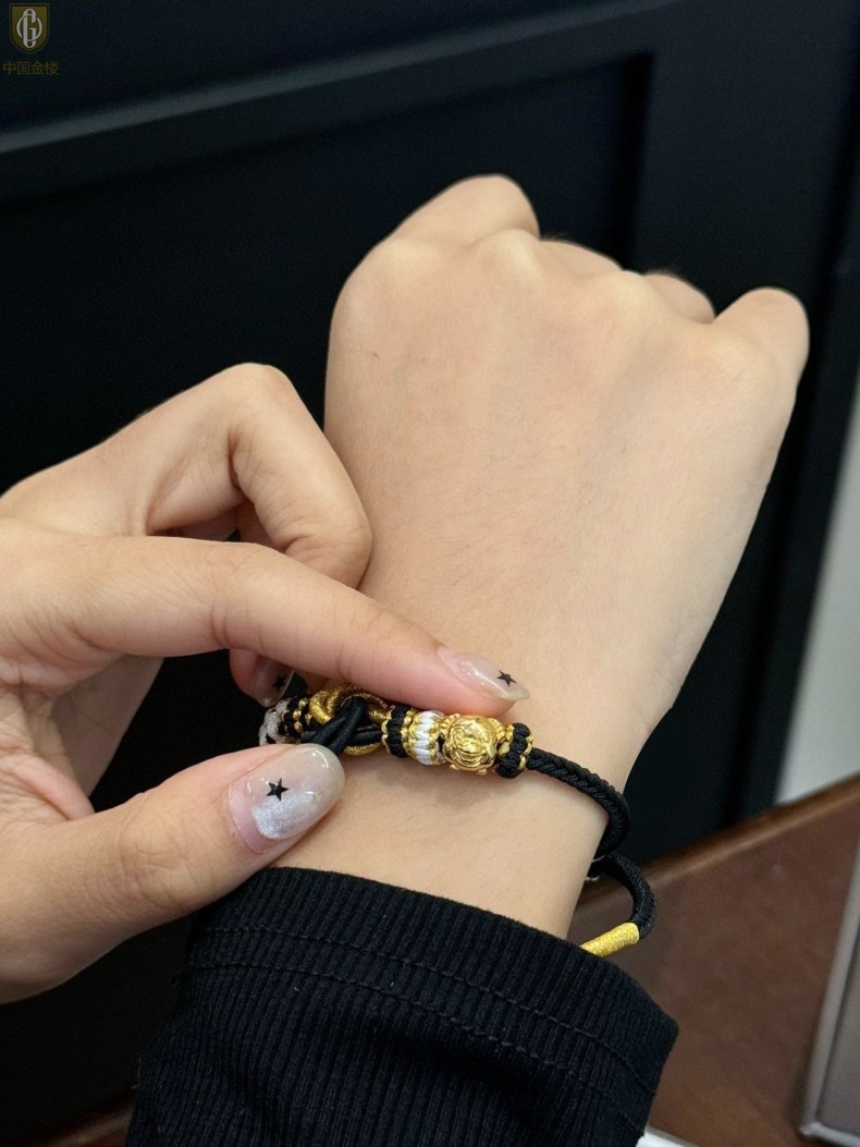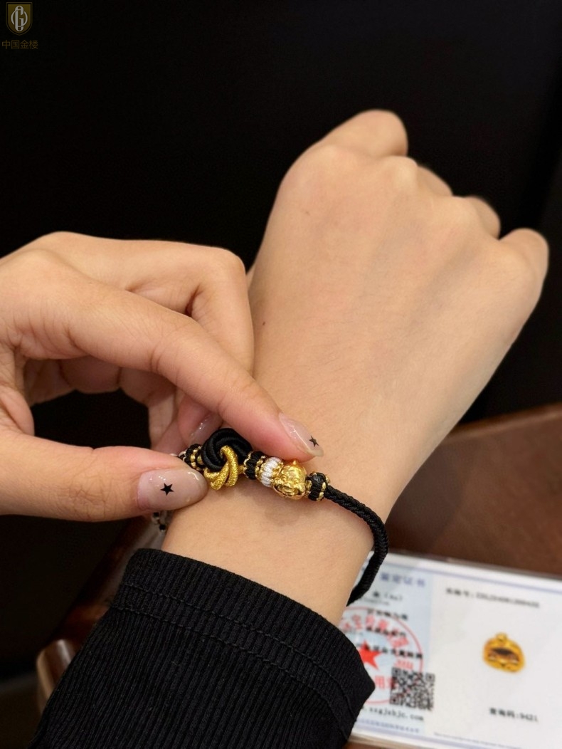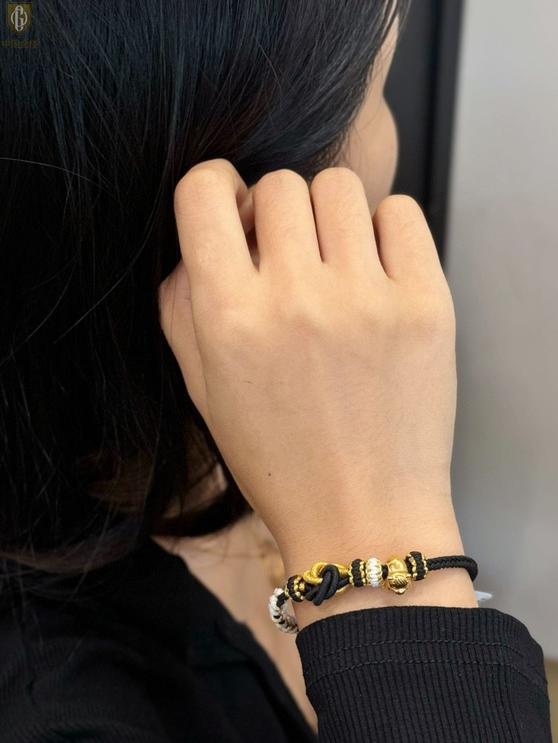 【品名】中国金楼花好月圆K金十二生肖守护手绳(神秘黑)