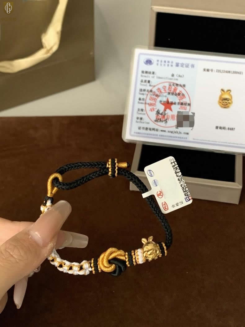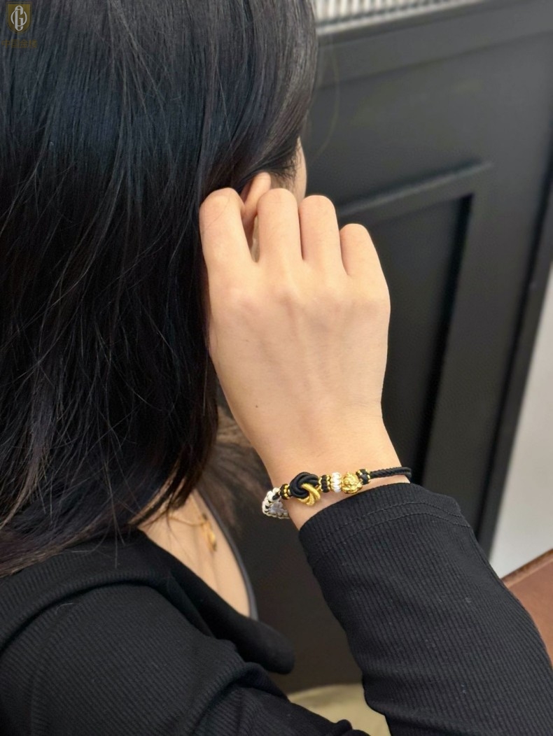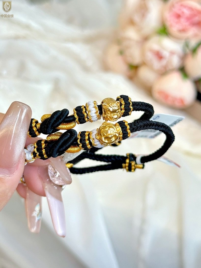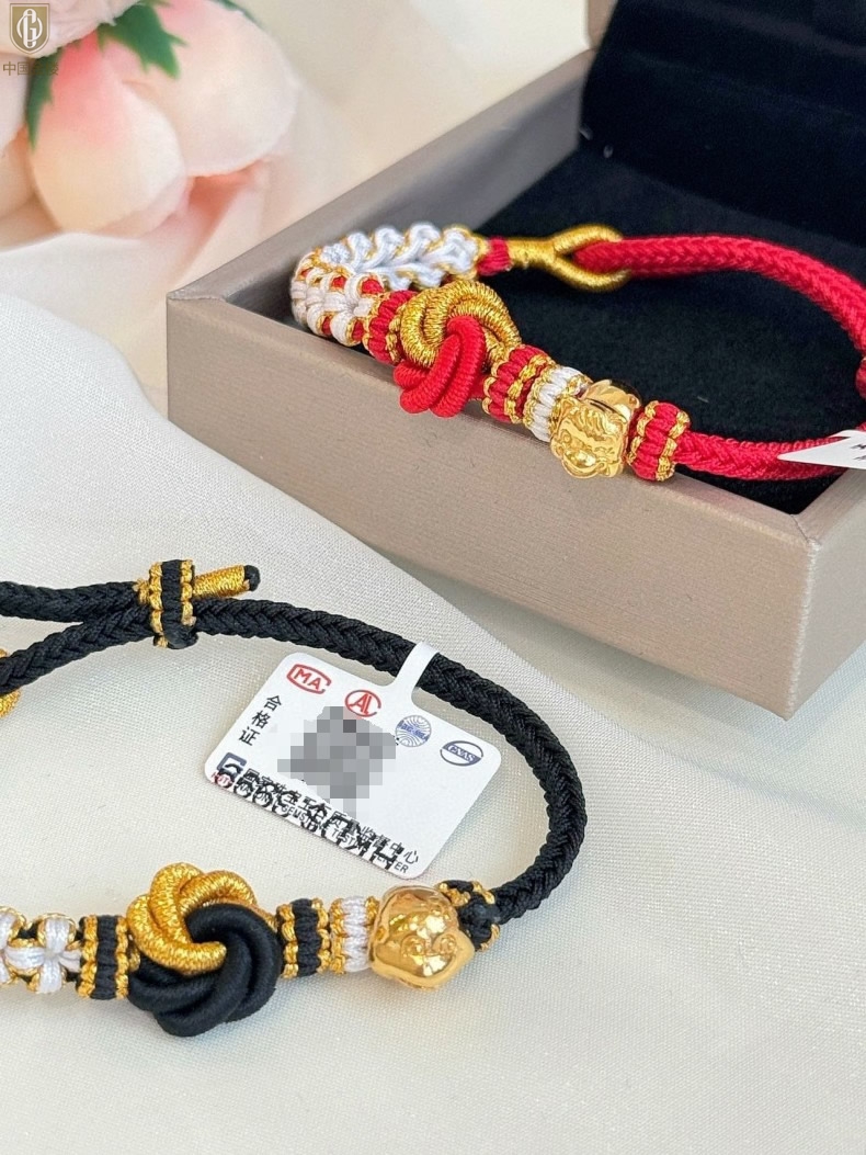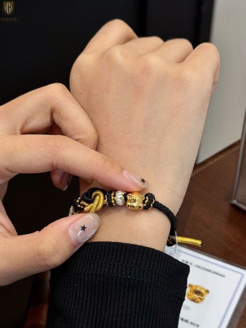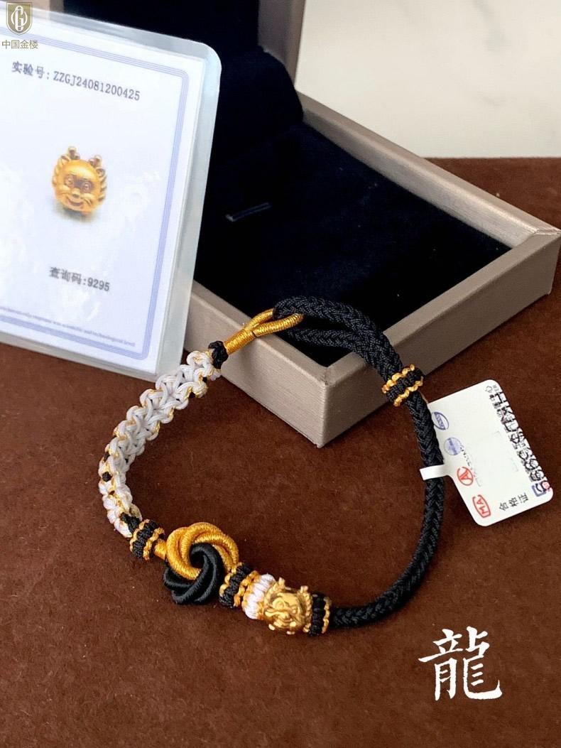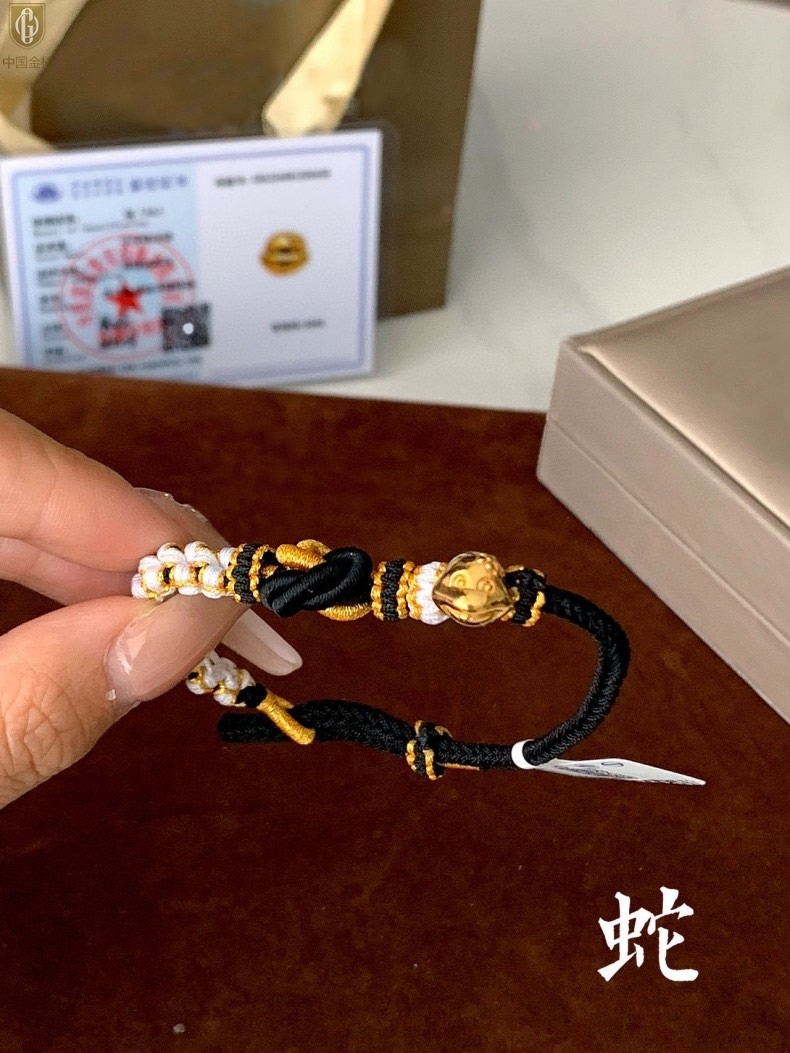【品名】中国金楼花好月圆K金十二生肖守护手绳(神秘黑)