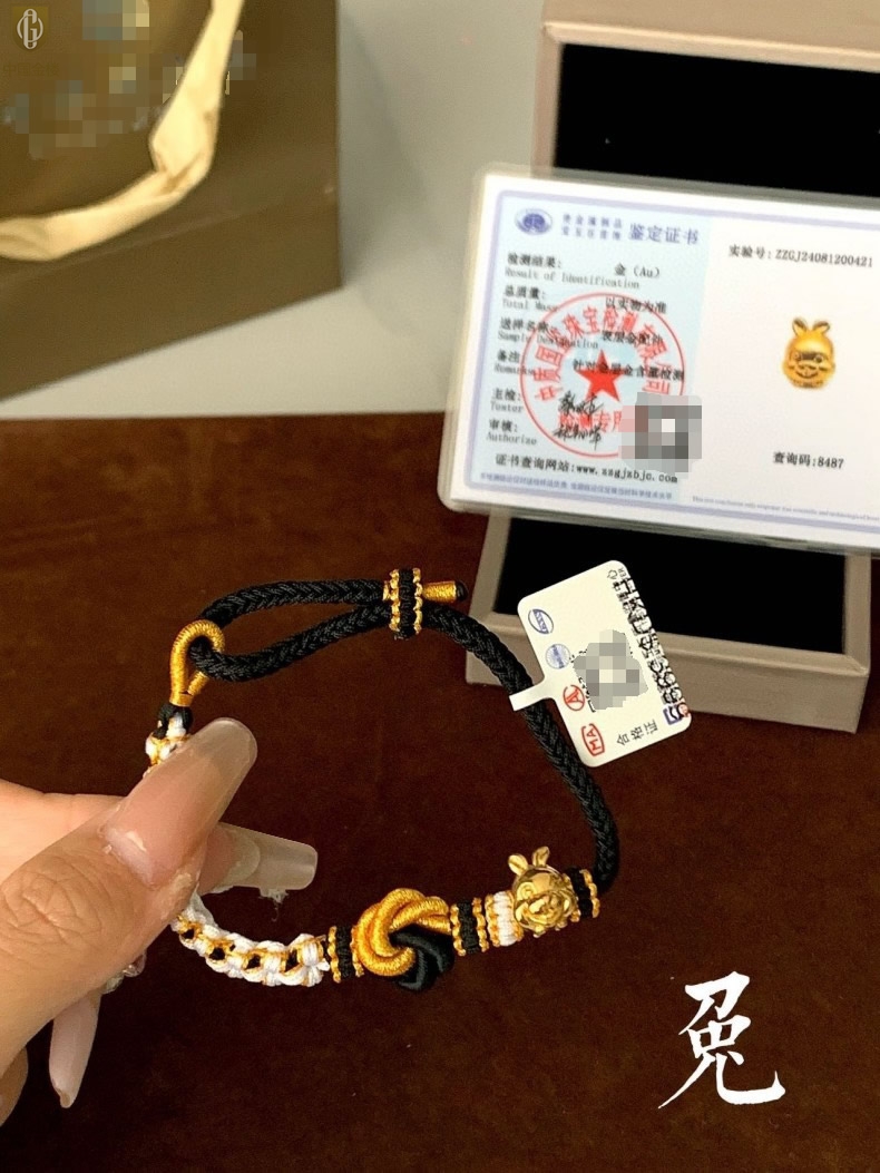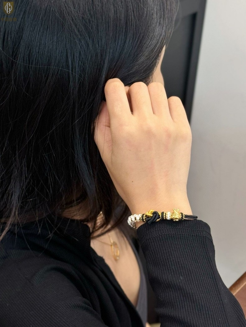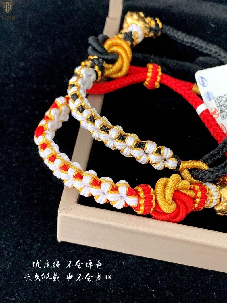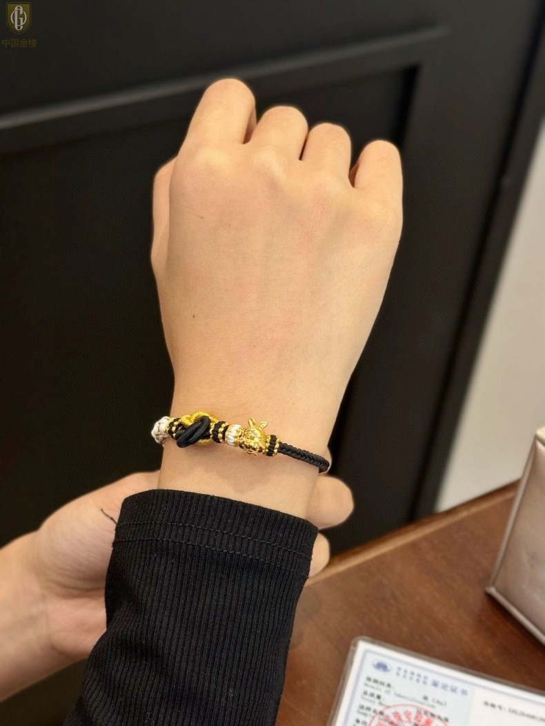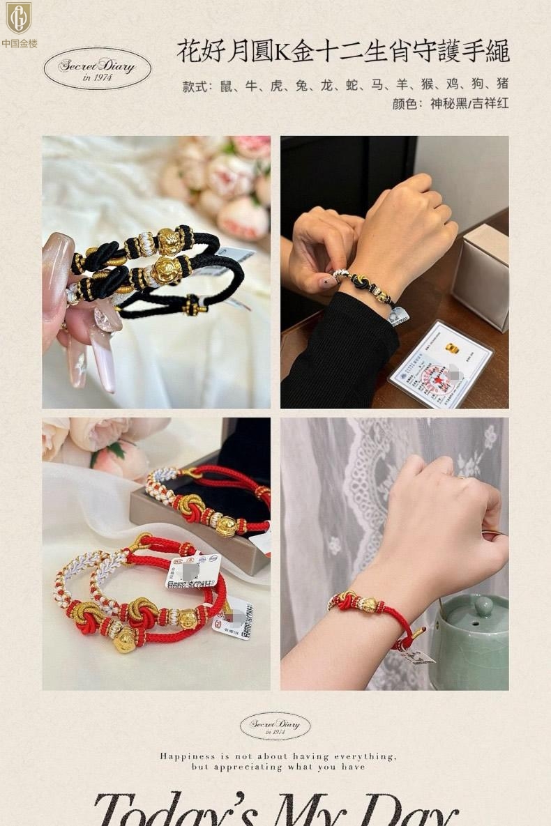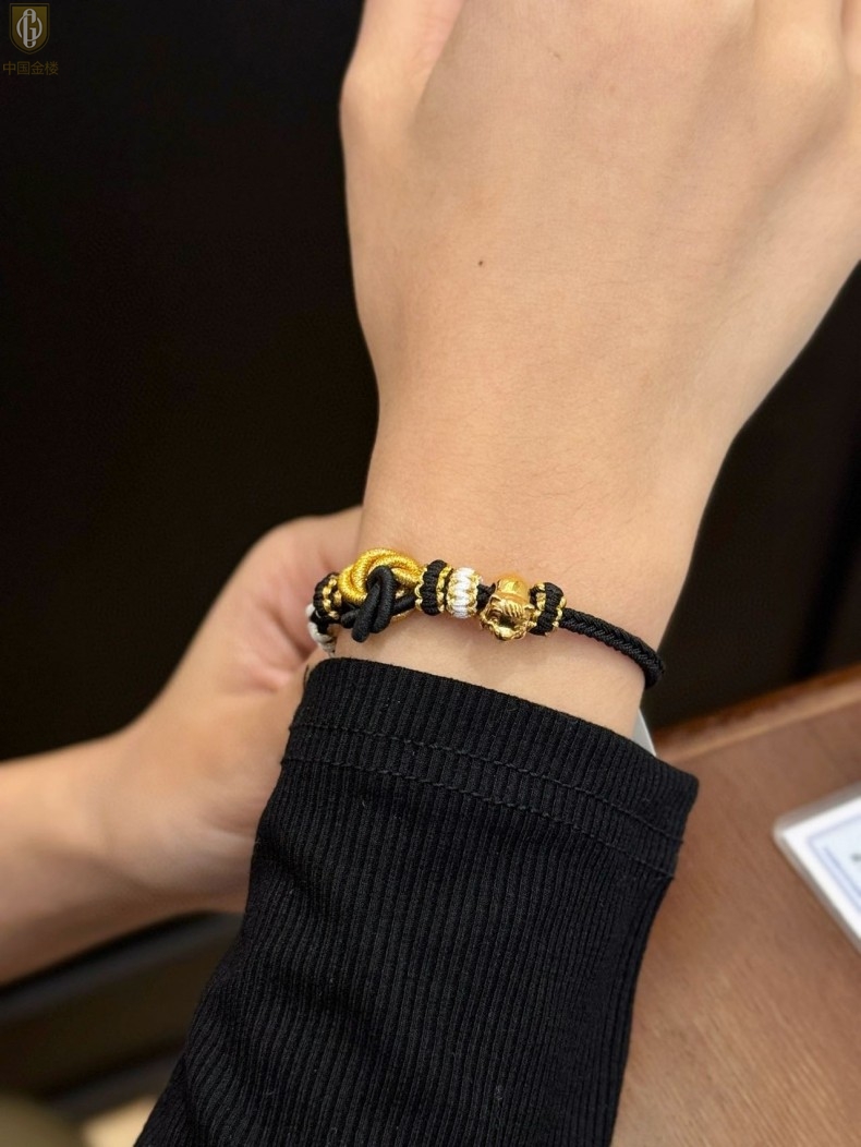 【品名】中国金楼花好月圆K金十二生肖守护手绳(神秘黑)