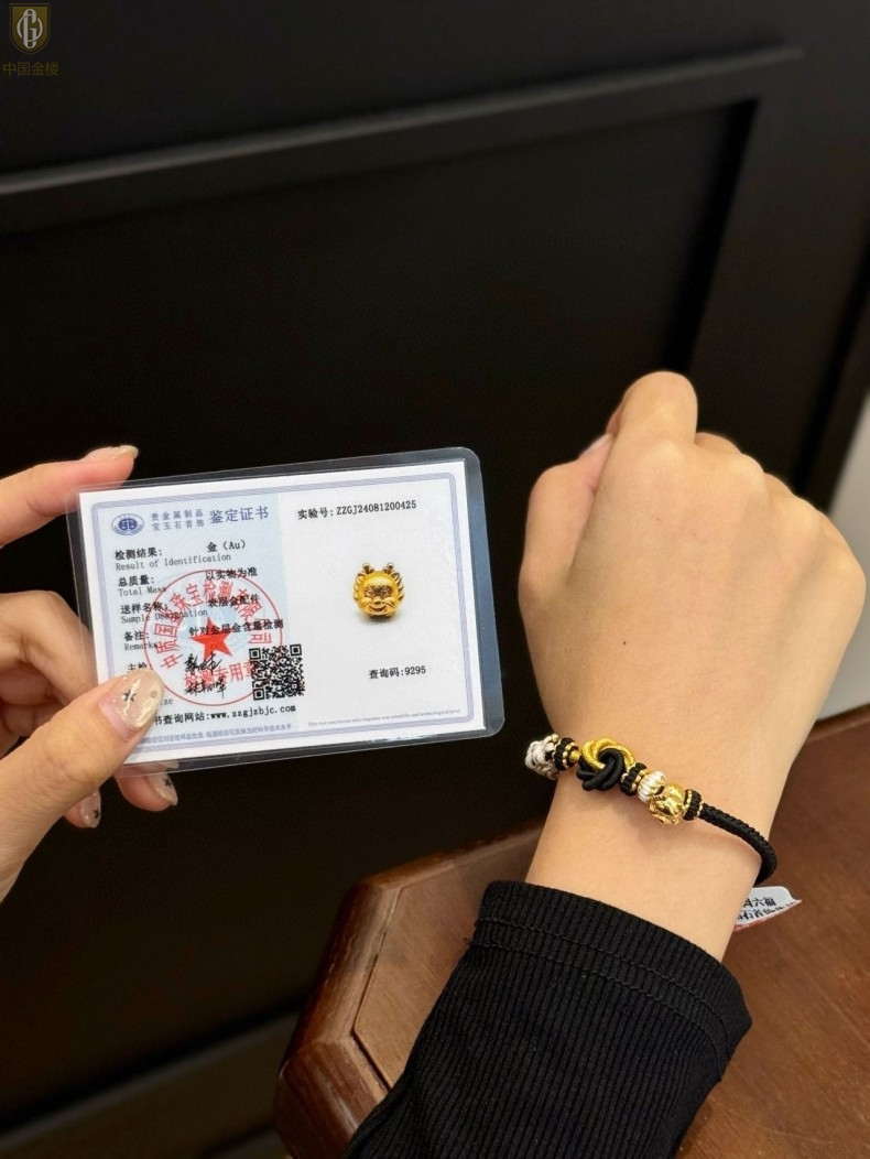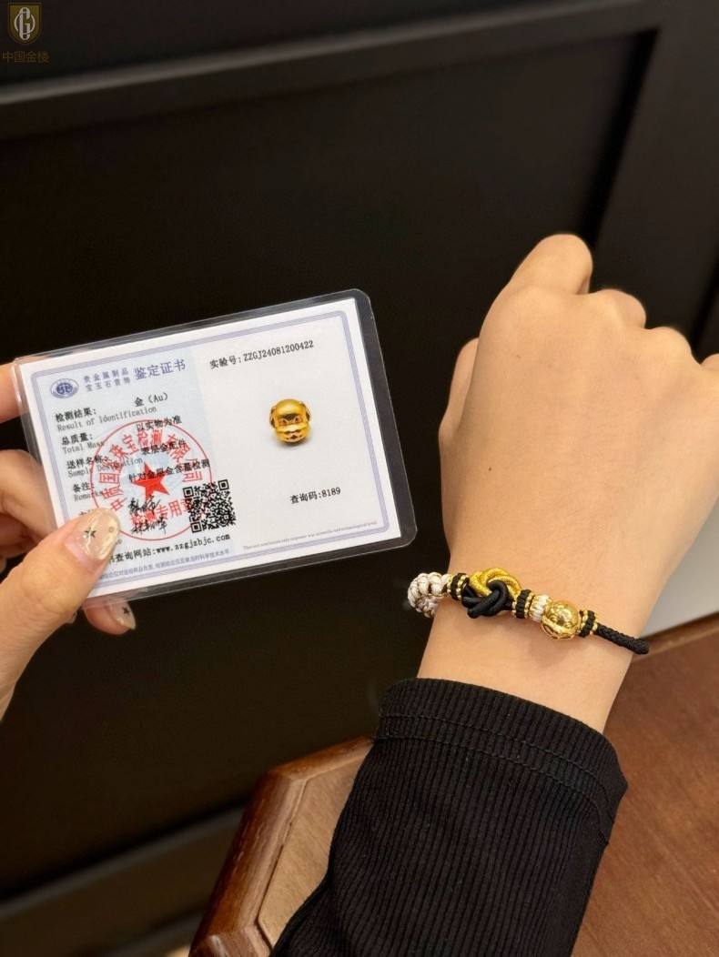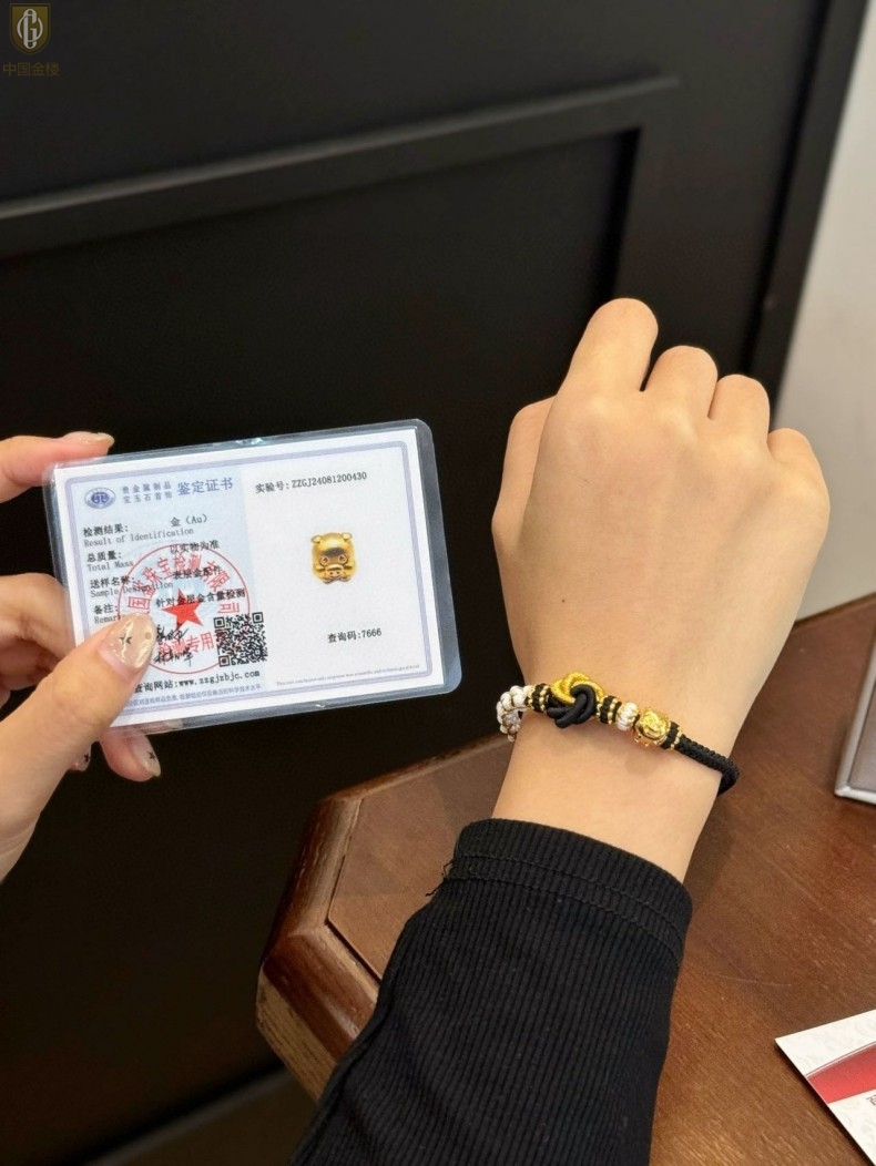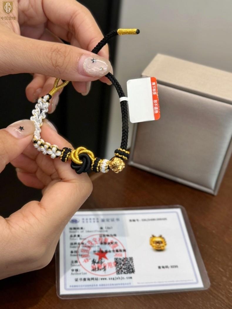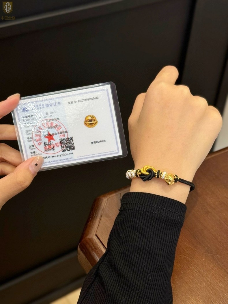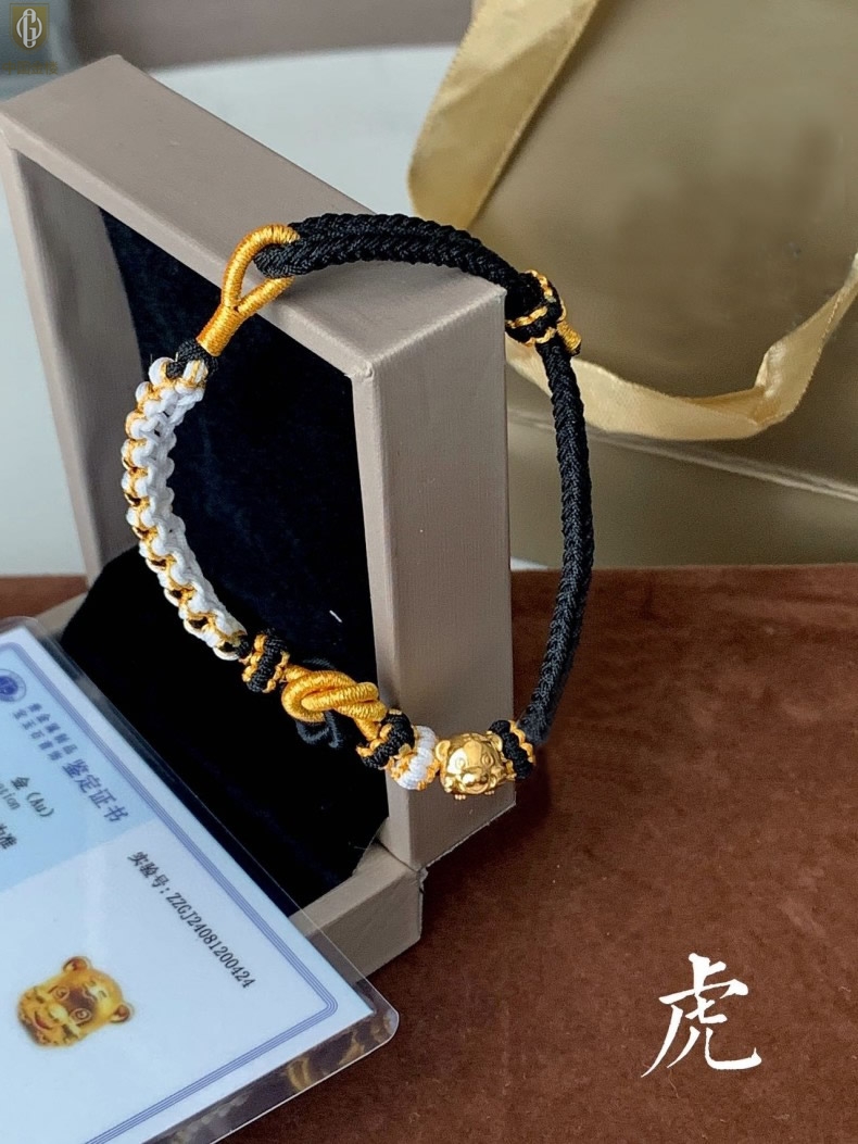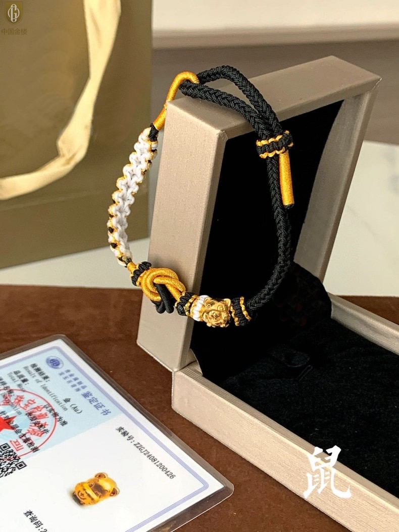 【品名】中国金楼花好月圆K金十二生肖守护手绳(神秘黑)