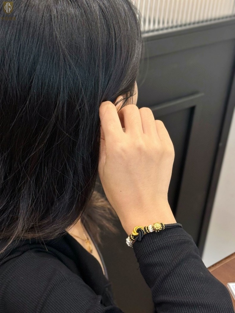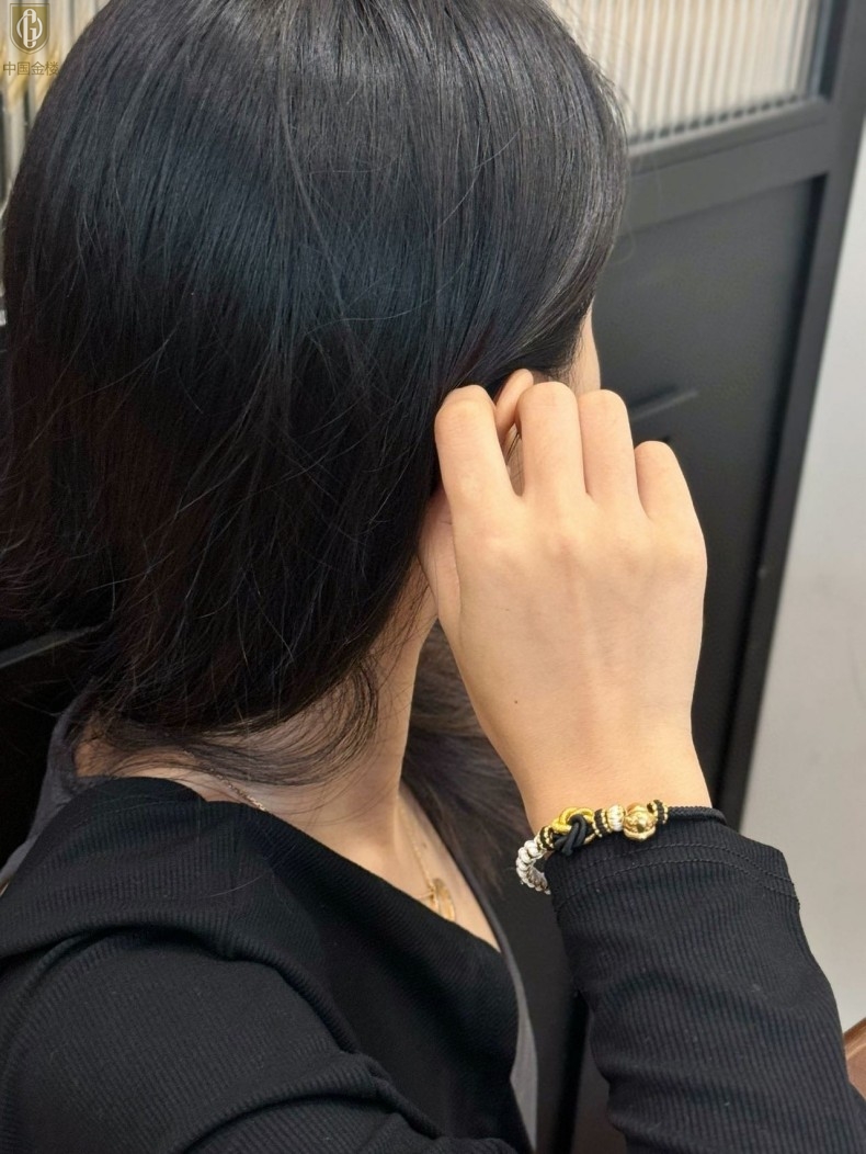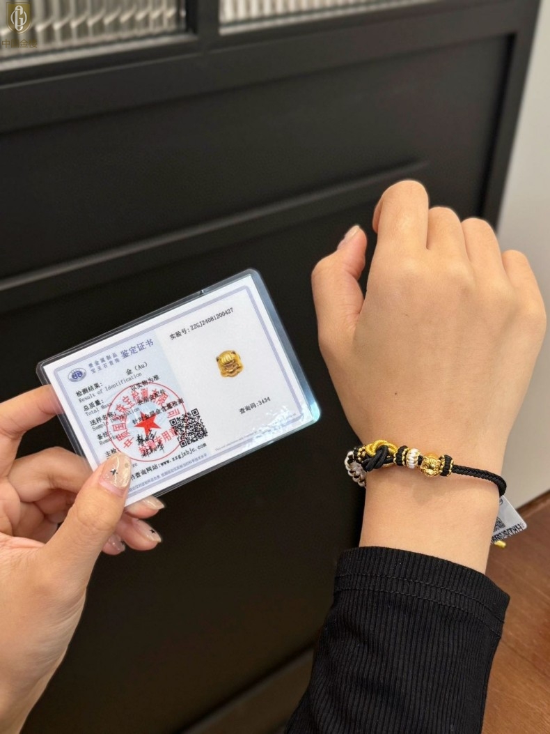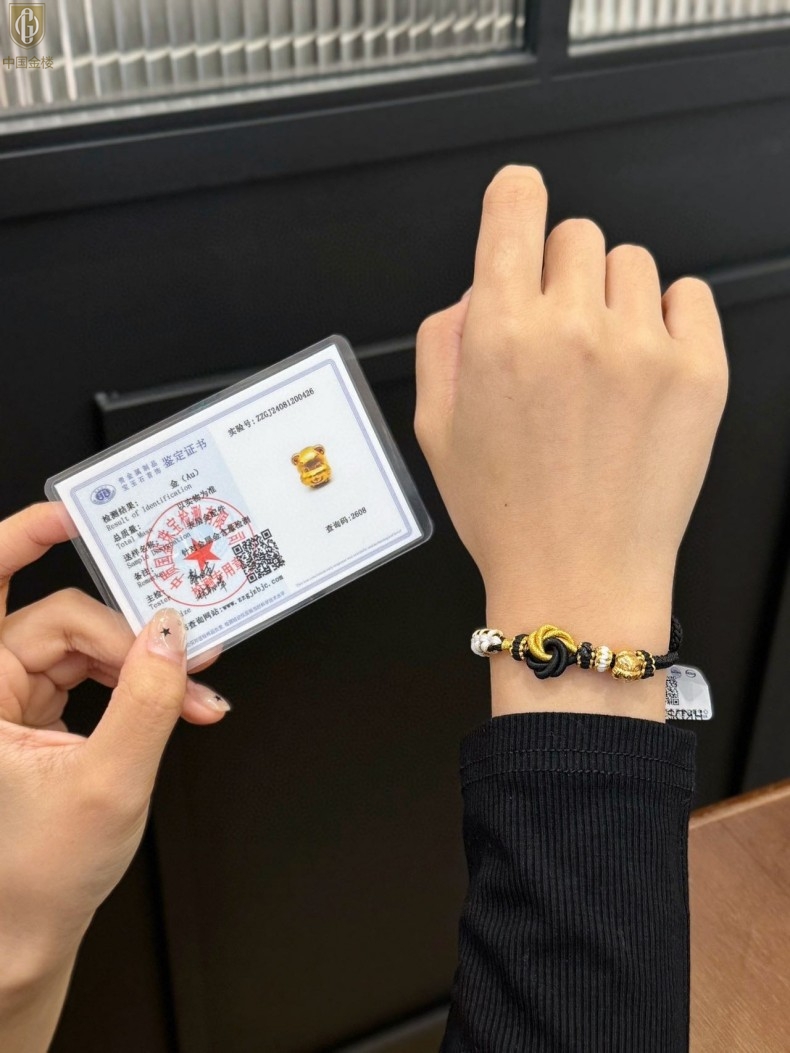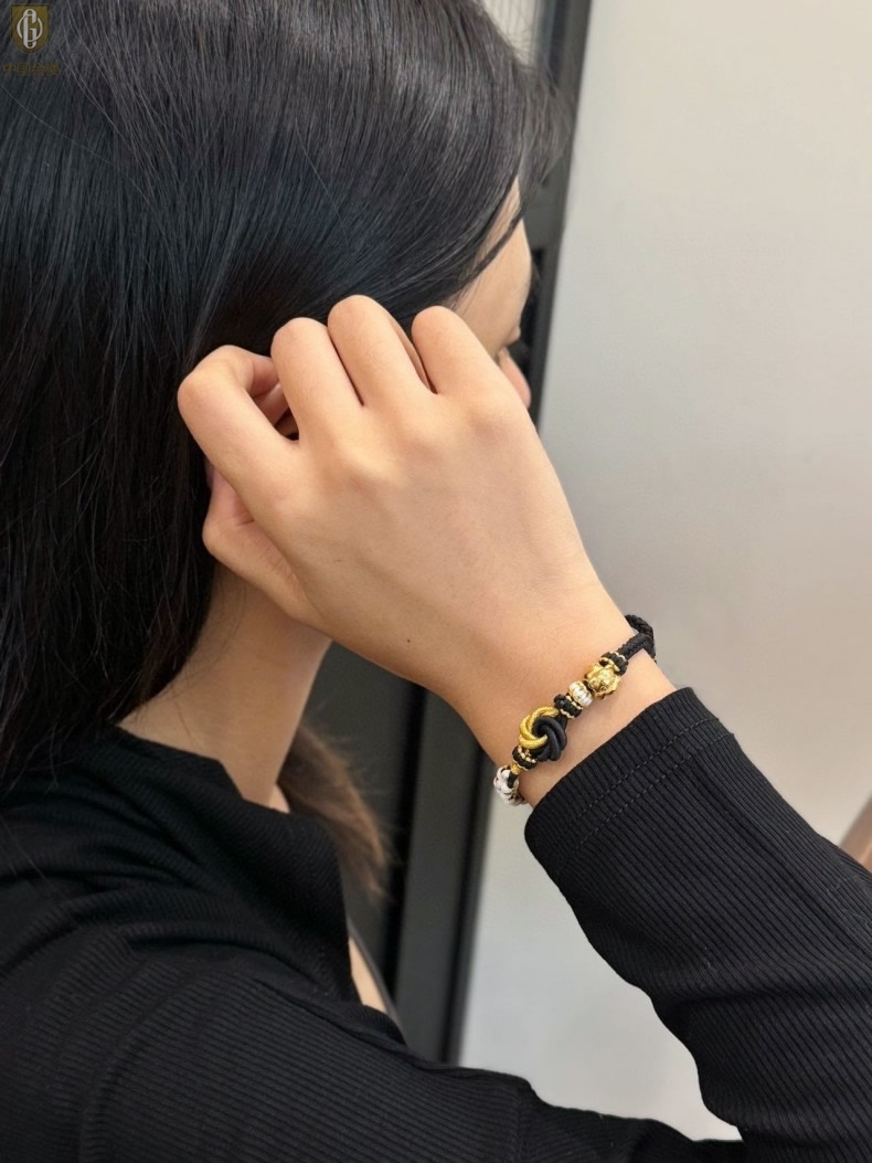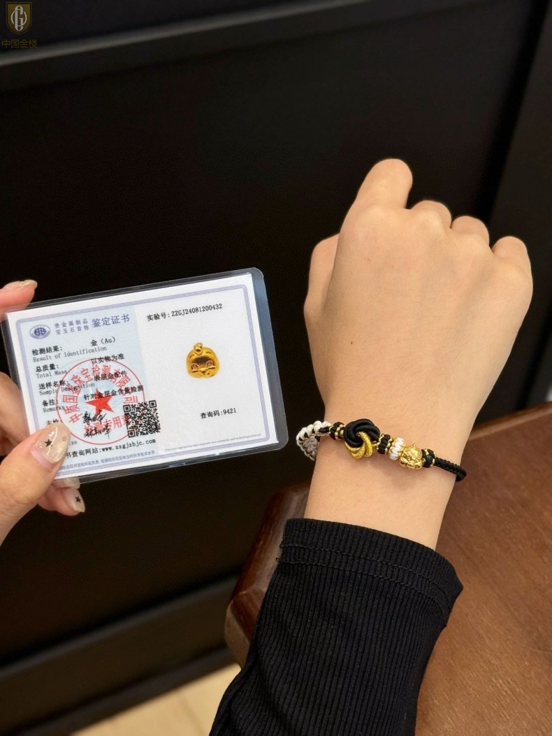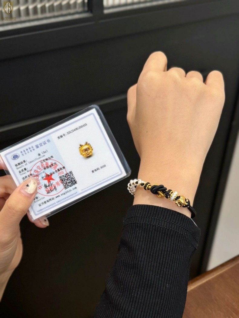 【品名】中国金楼花好月圆K金十二生肖守护手绳(神秘黑)