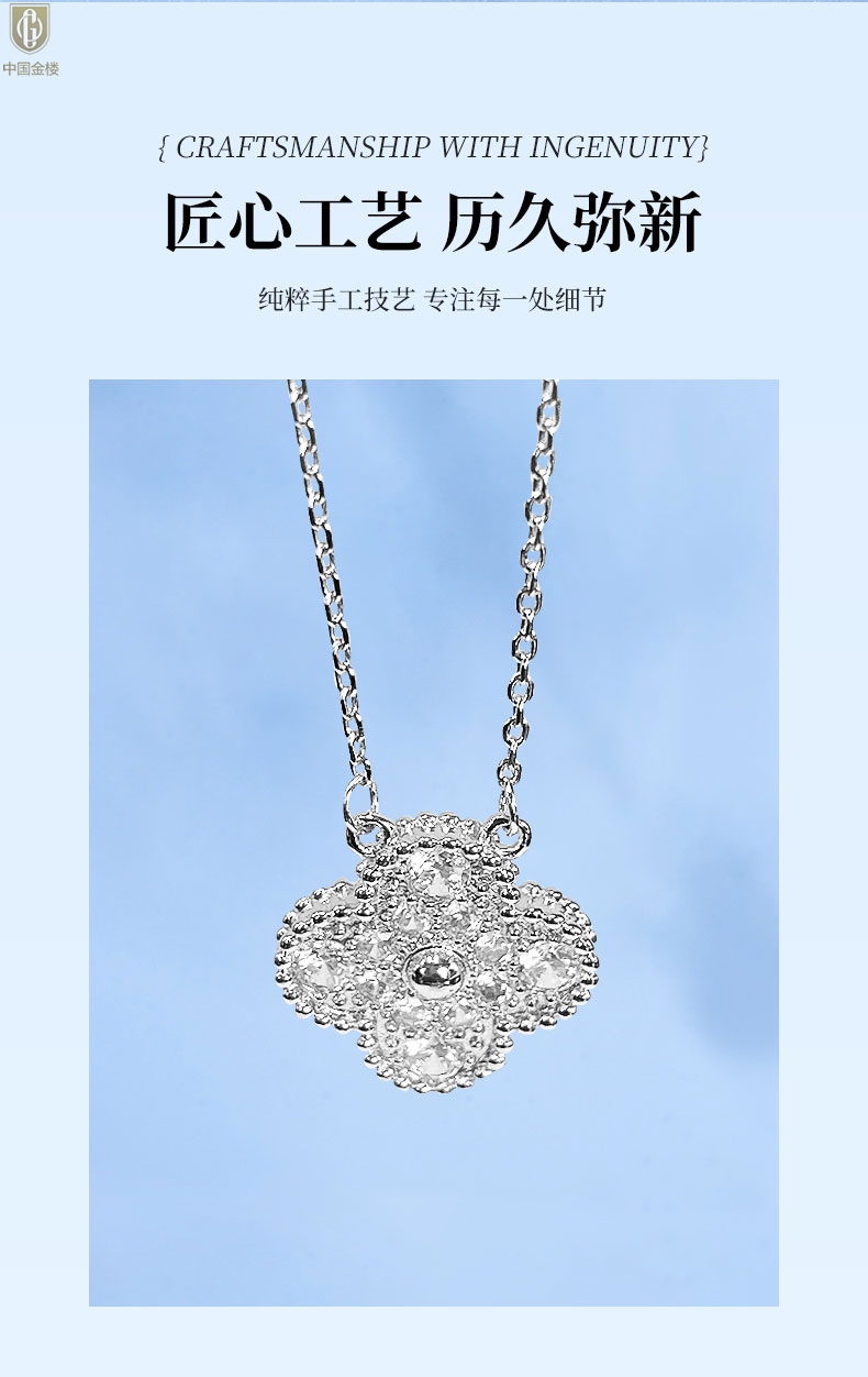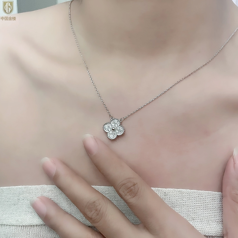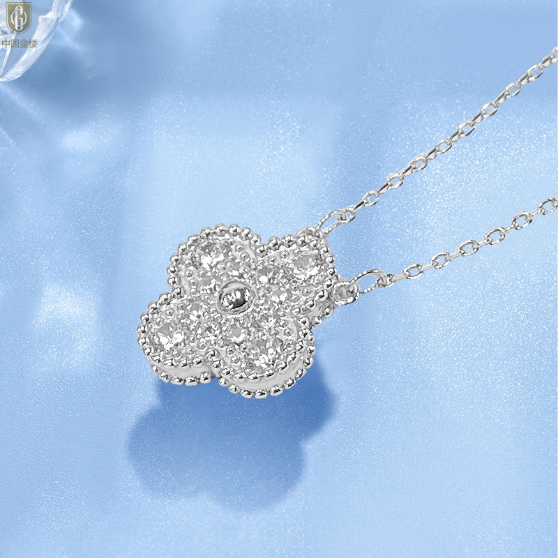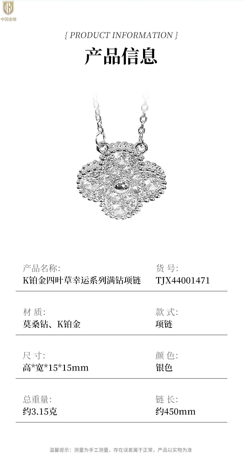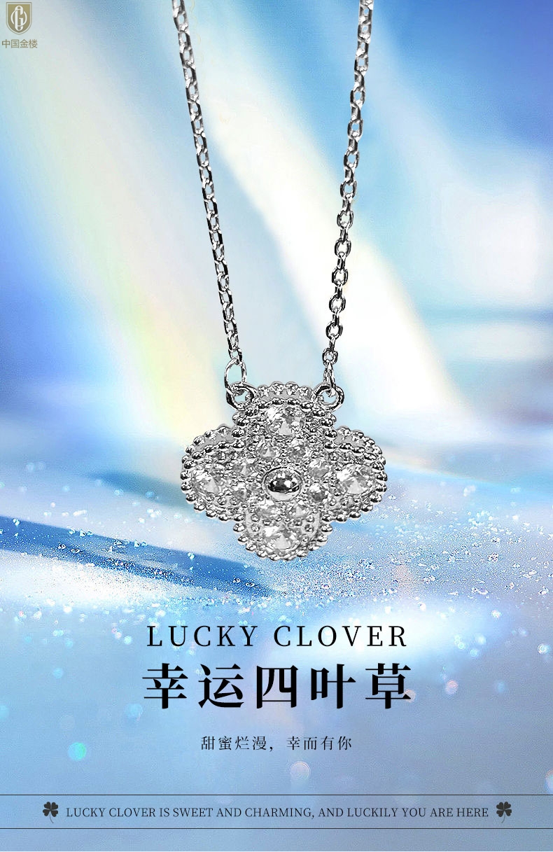 【品名】中国金楼K铂金四叶草幸运系列满钻项链