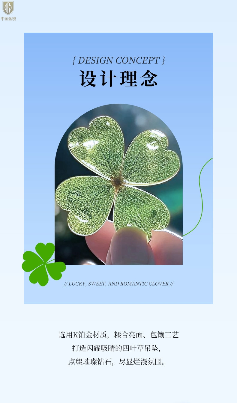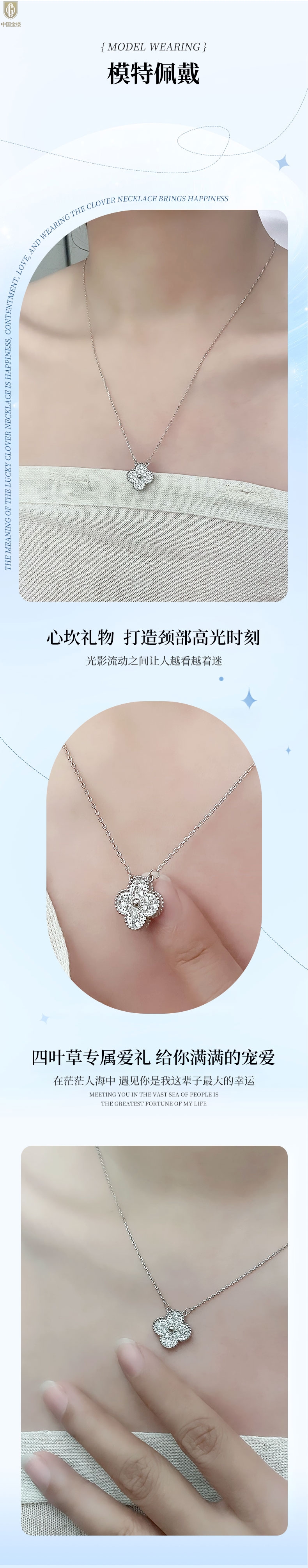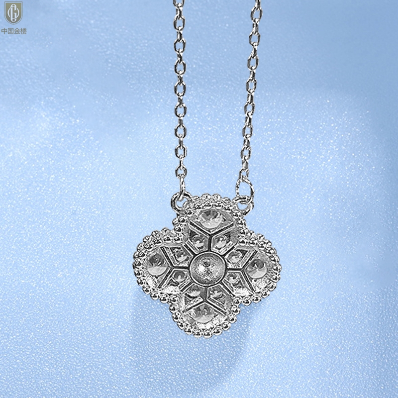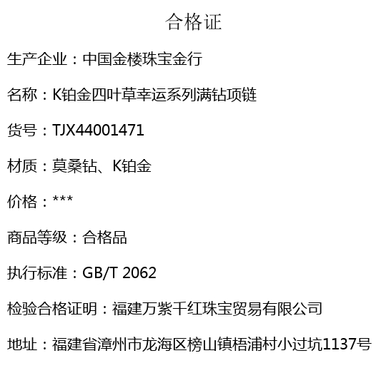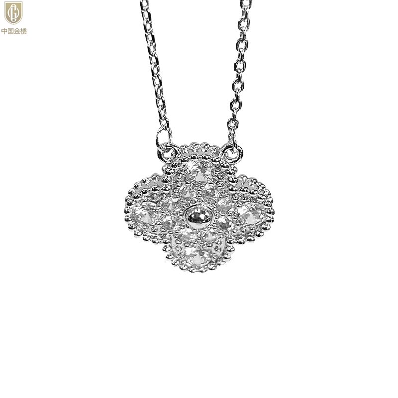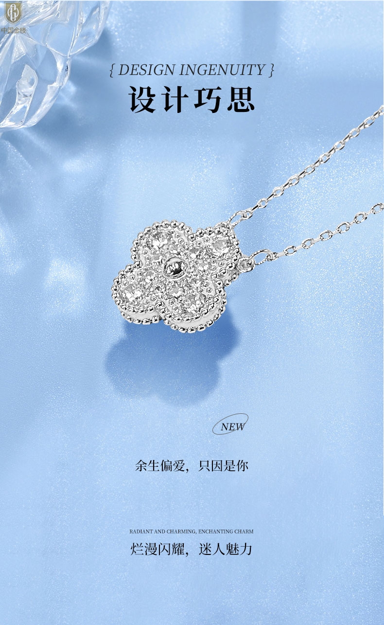 【品名】中国金楼K铂金四叶草幸运系列满钻项链