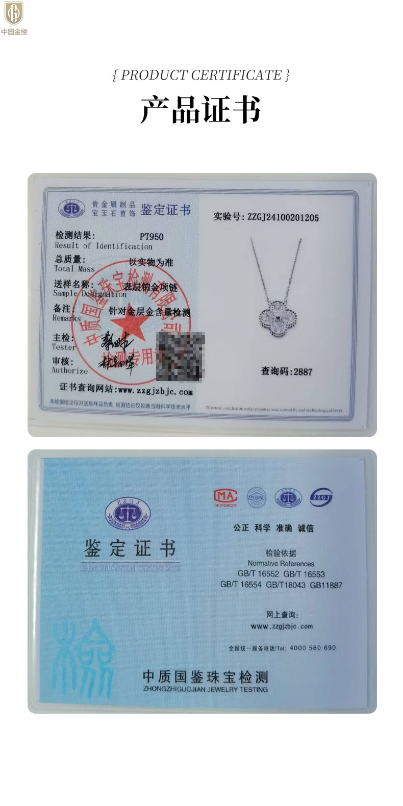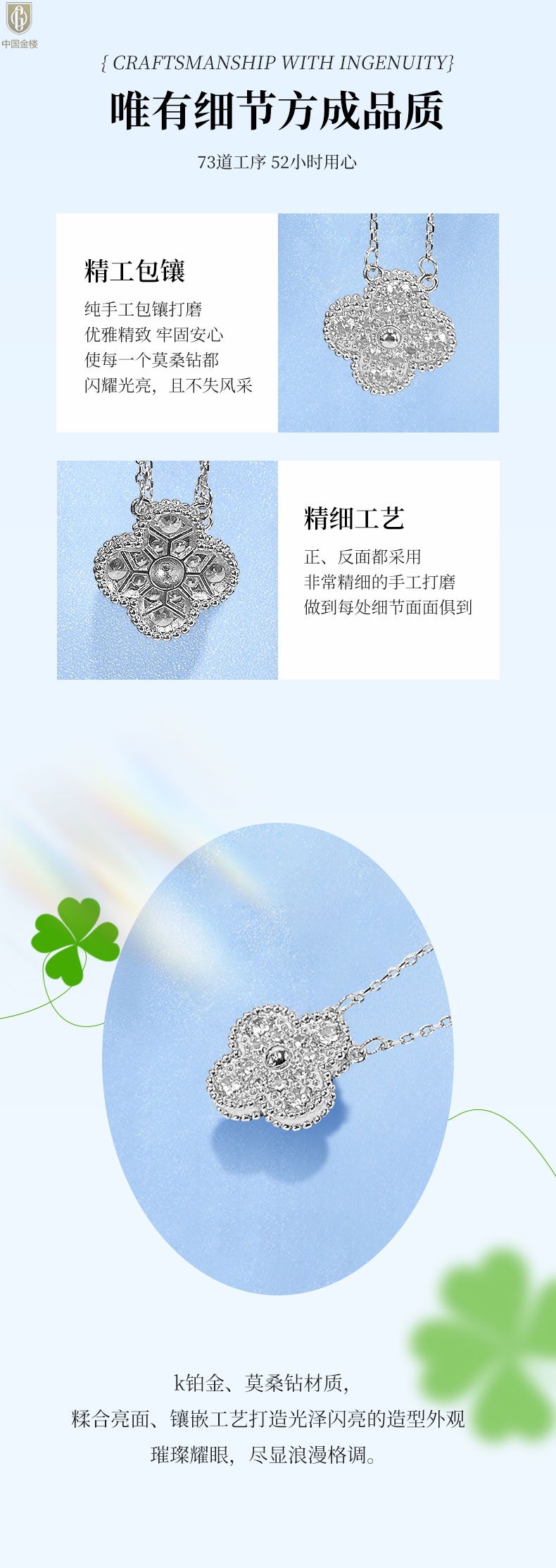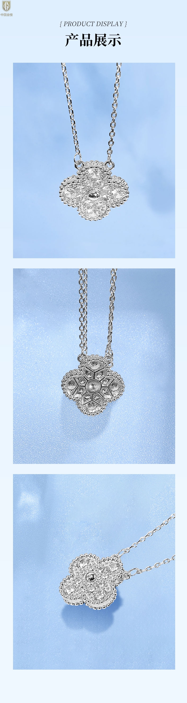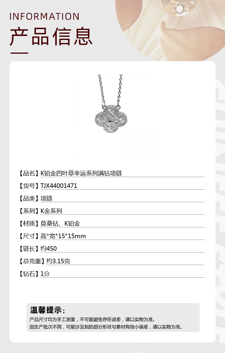 【品名】中国金楼K铂金四叶草幸运系列满钻项链