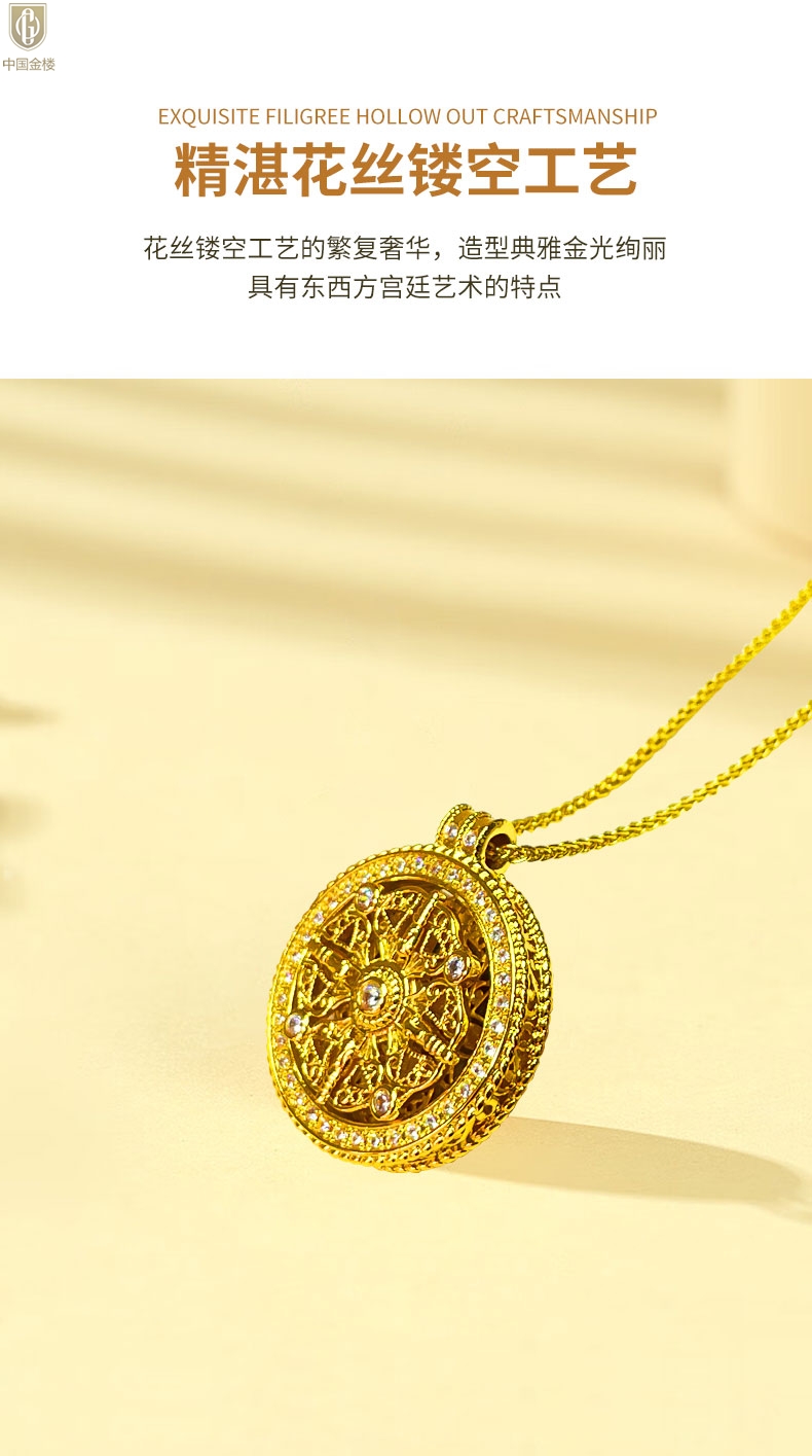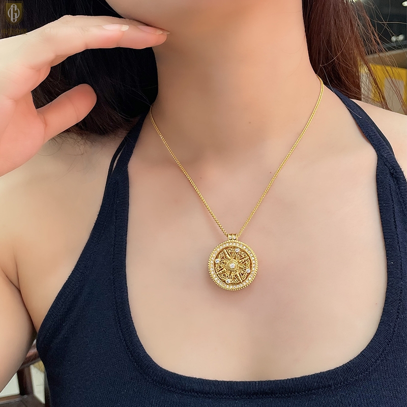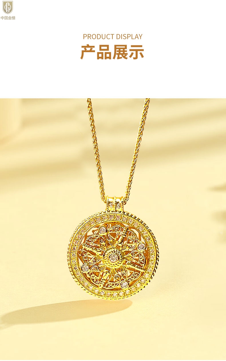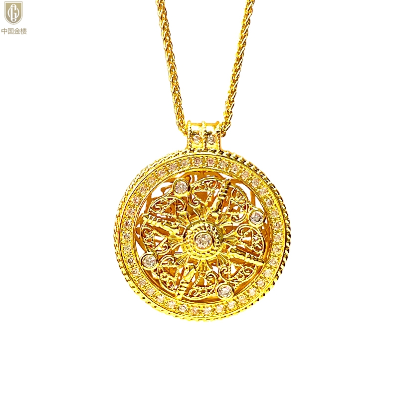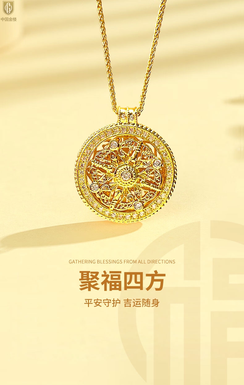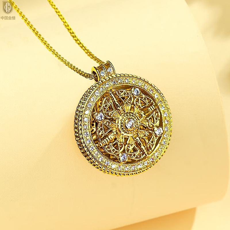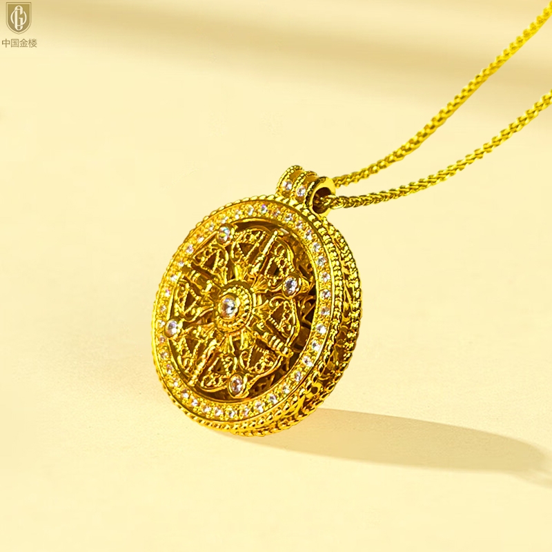 【品名】中国金楼古法K黄金聚福四方金刚杵罗盘项链(时来运转)