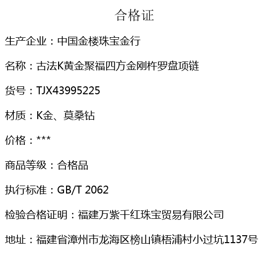 【套装包含】首饰+礼品盒+礼品袋+国检证书+质保单+价签