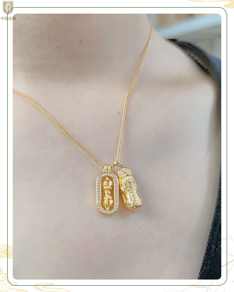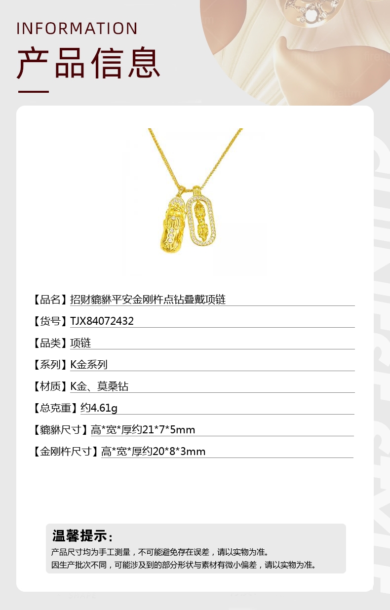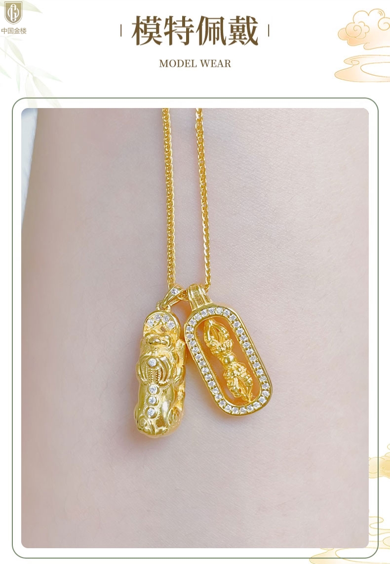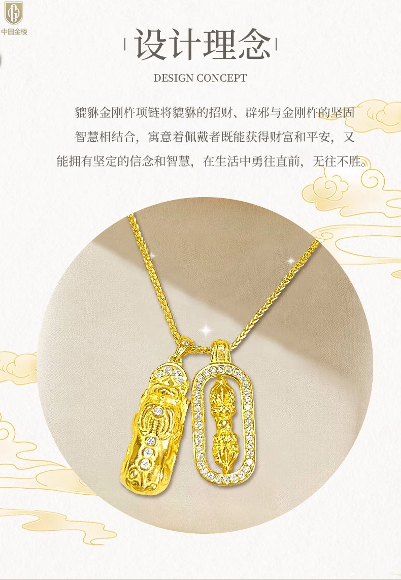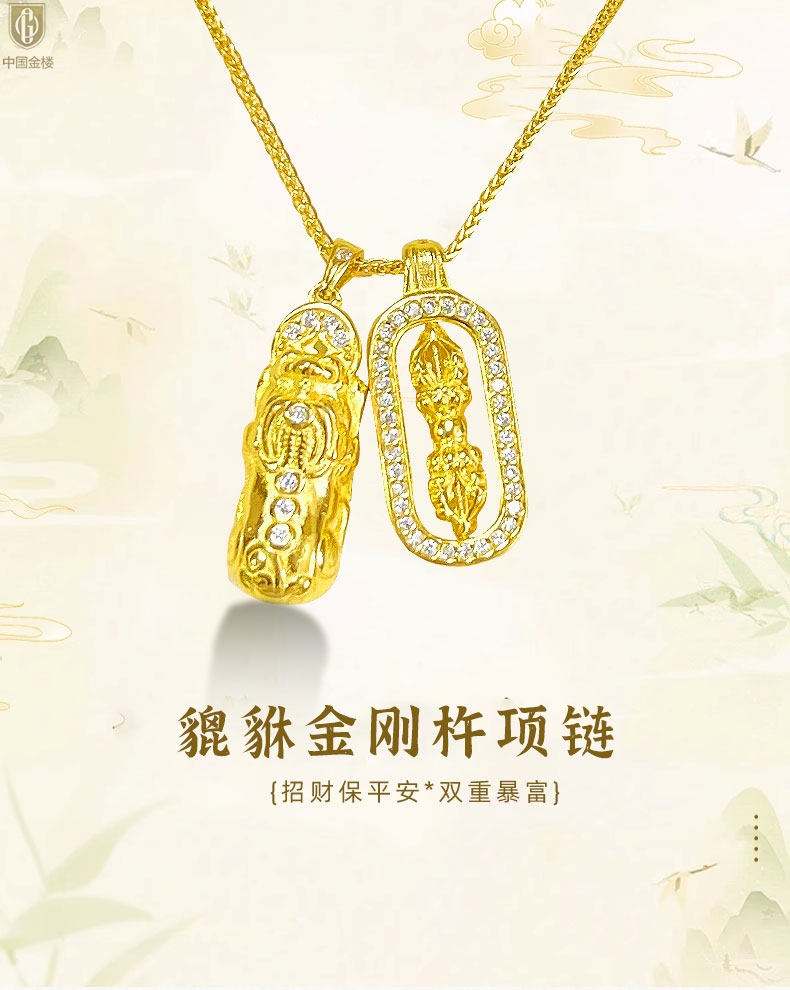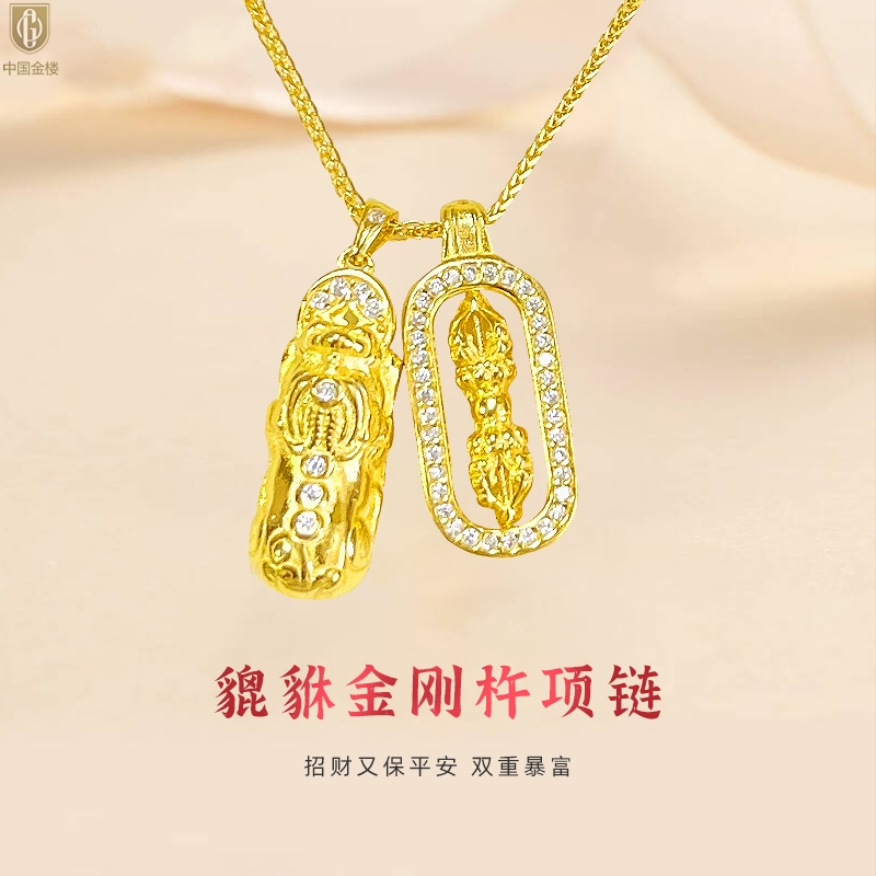 【品名】中国金楼招财貔貅平安金刚杵点钻叠戴项链