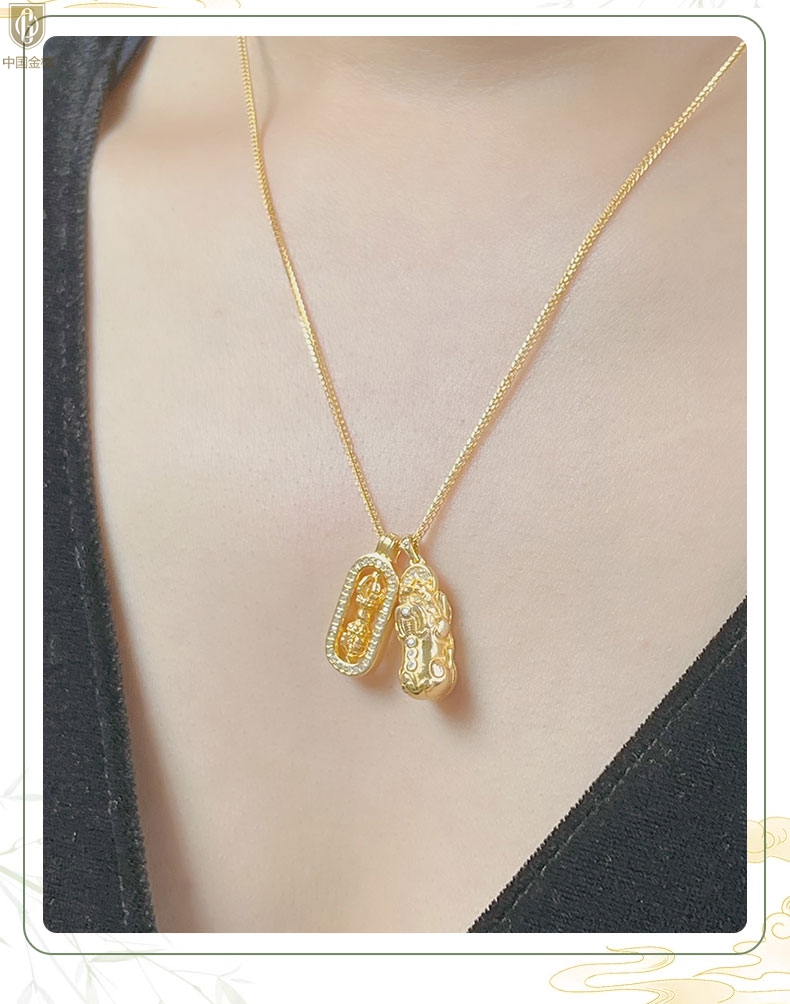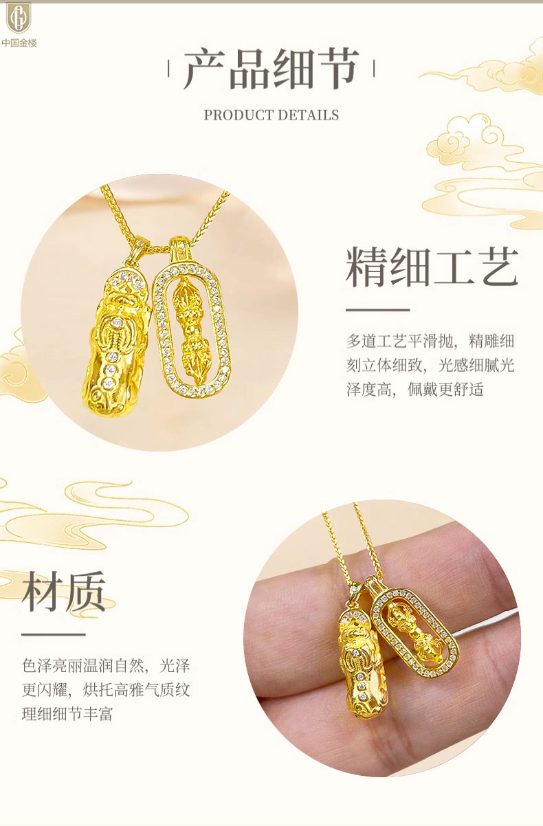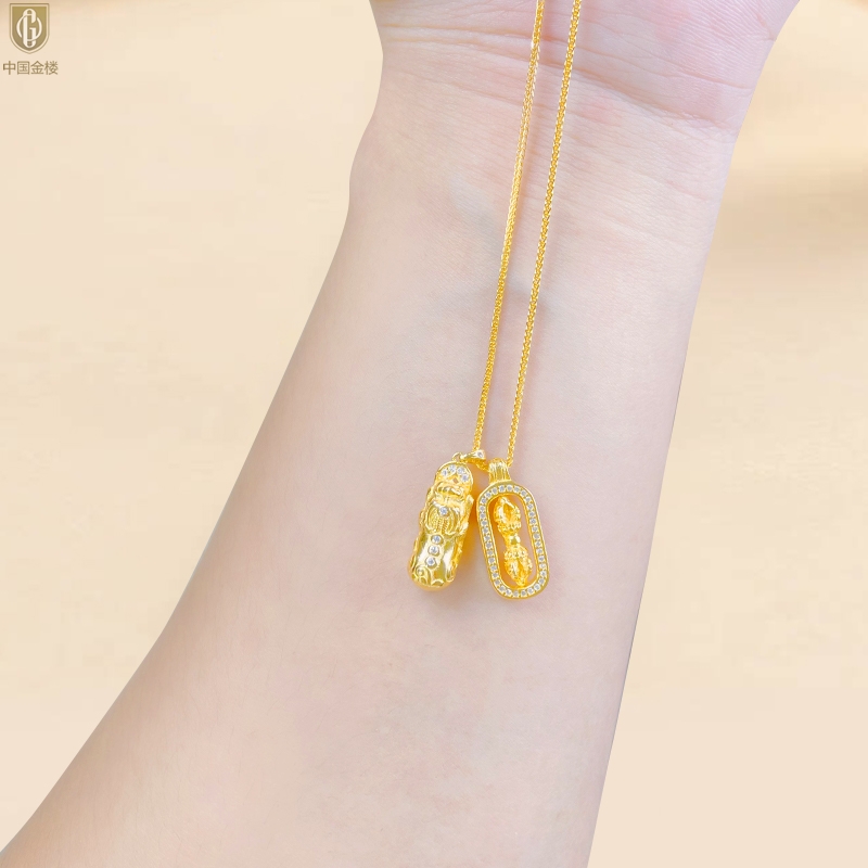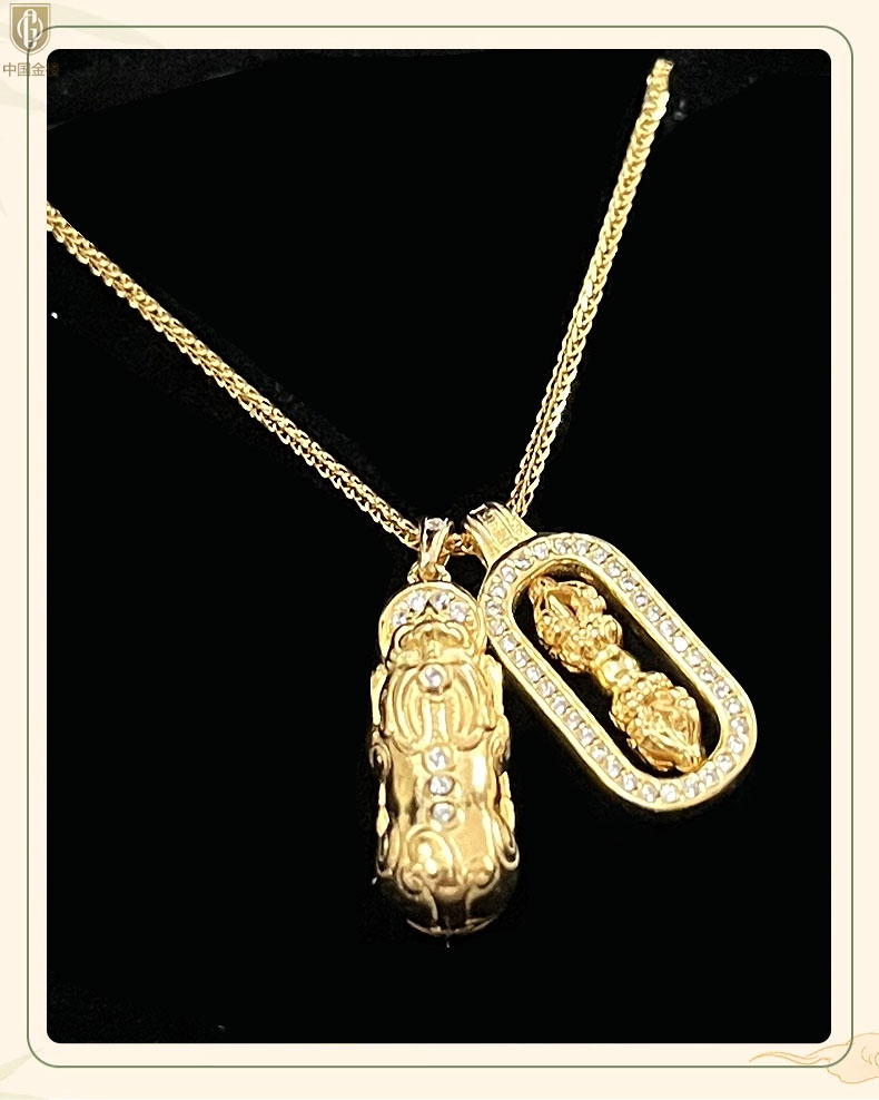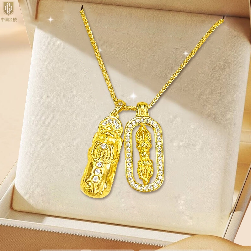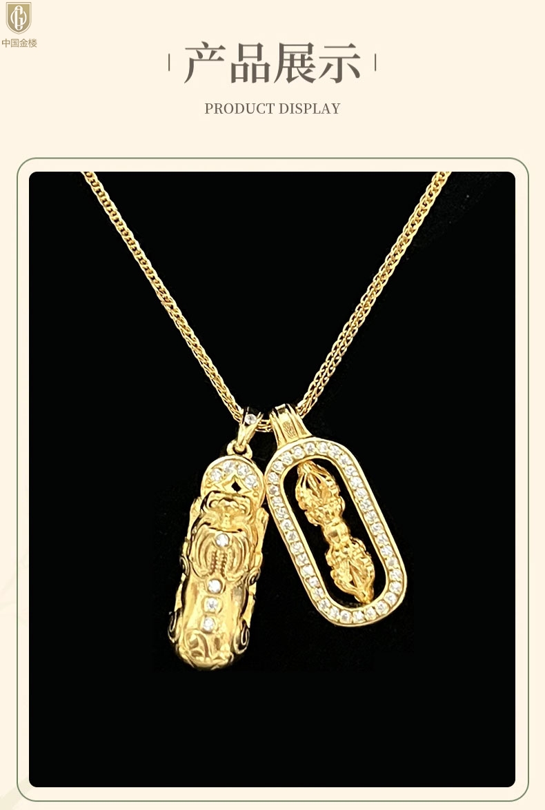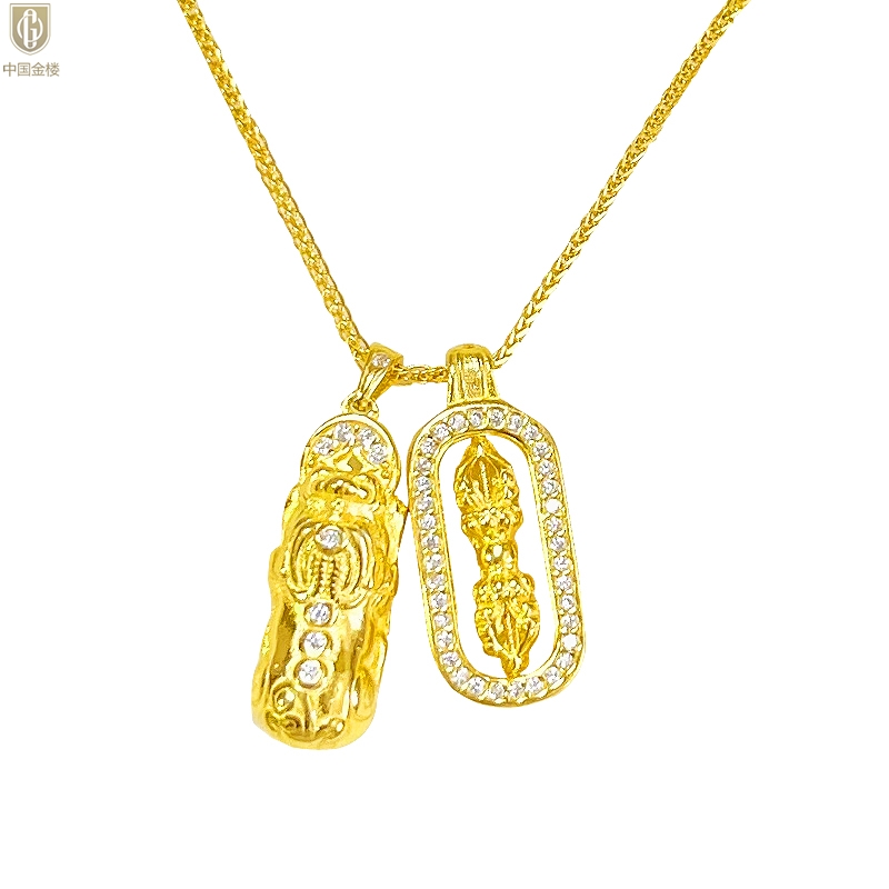 【品名】中国金楼招财貔貅平安金刚杵点钻叠戴项链
