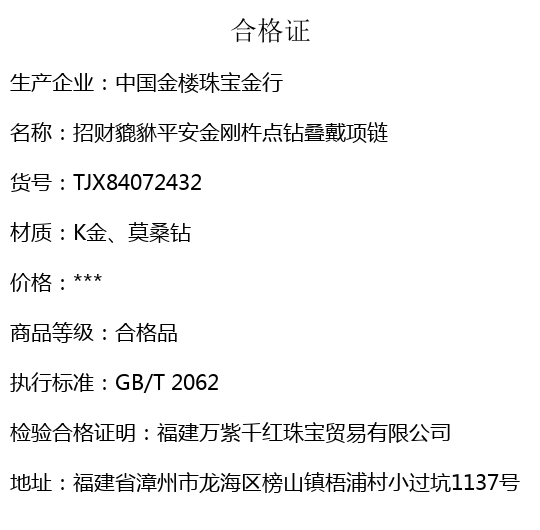 【套装包含】首饰+礼品盒+礼品袋+国检证书+质保单+价签