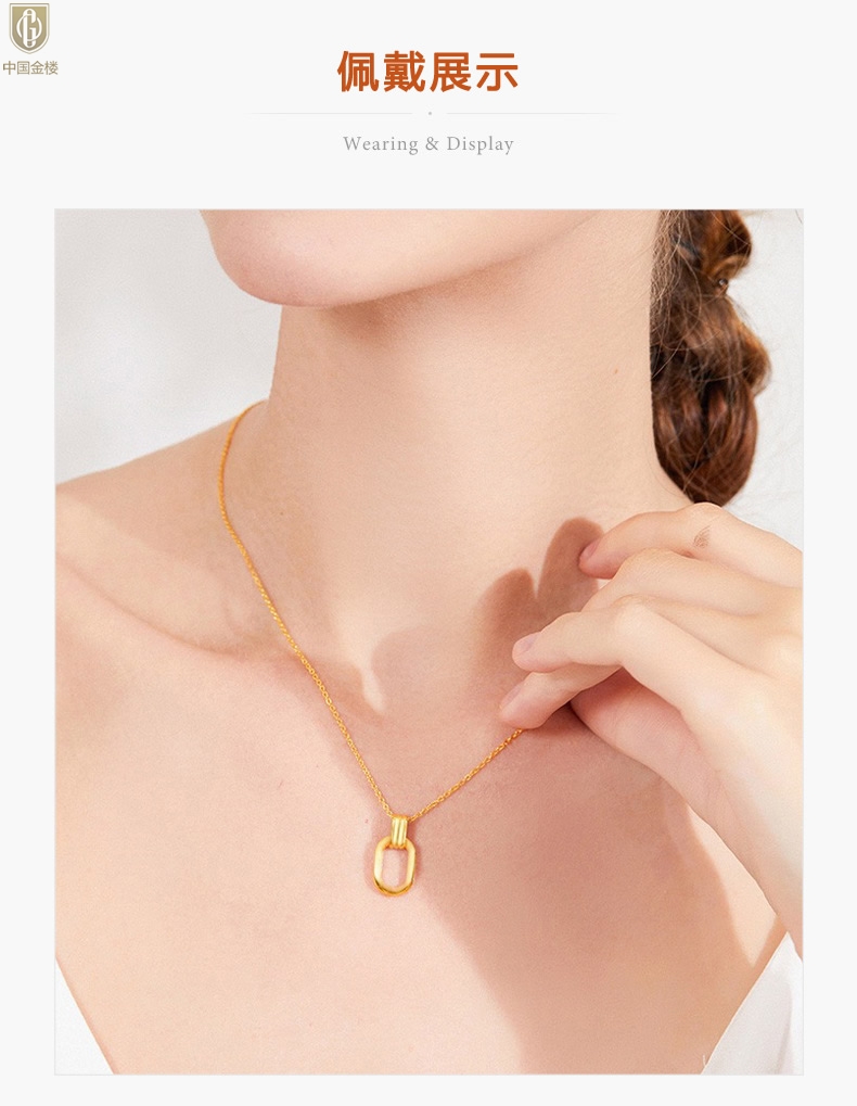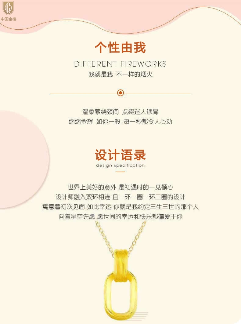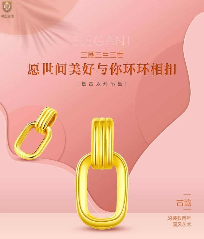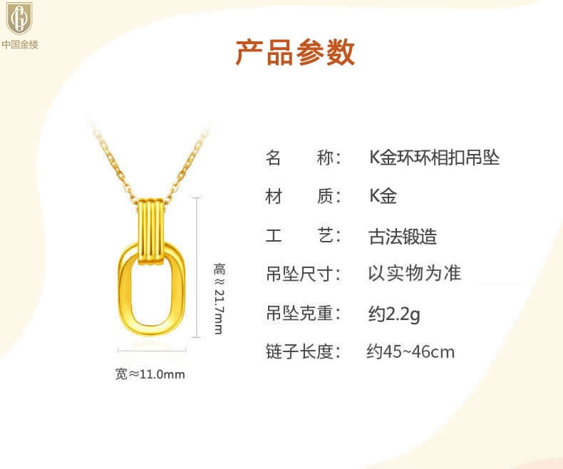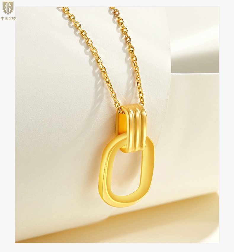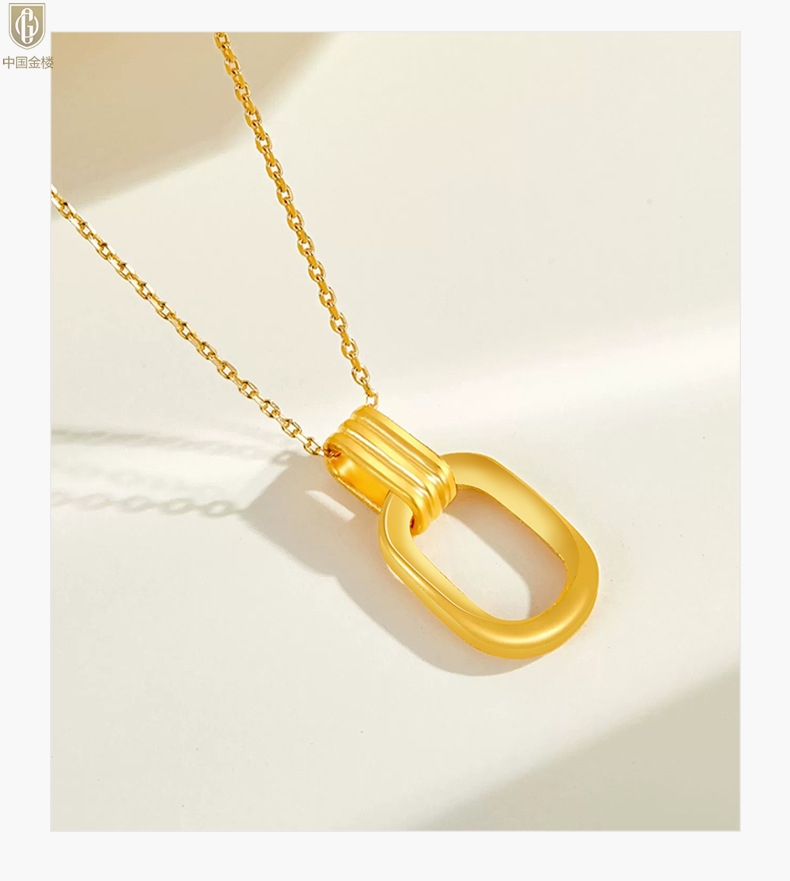 【品名】中国金楼K金环环相扣吊坠(附赠K金项链)