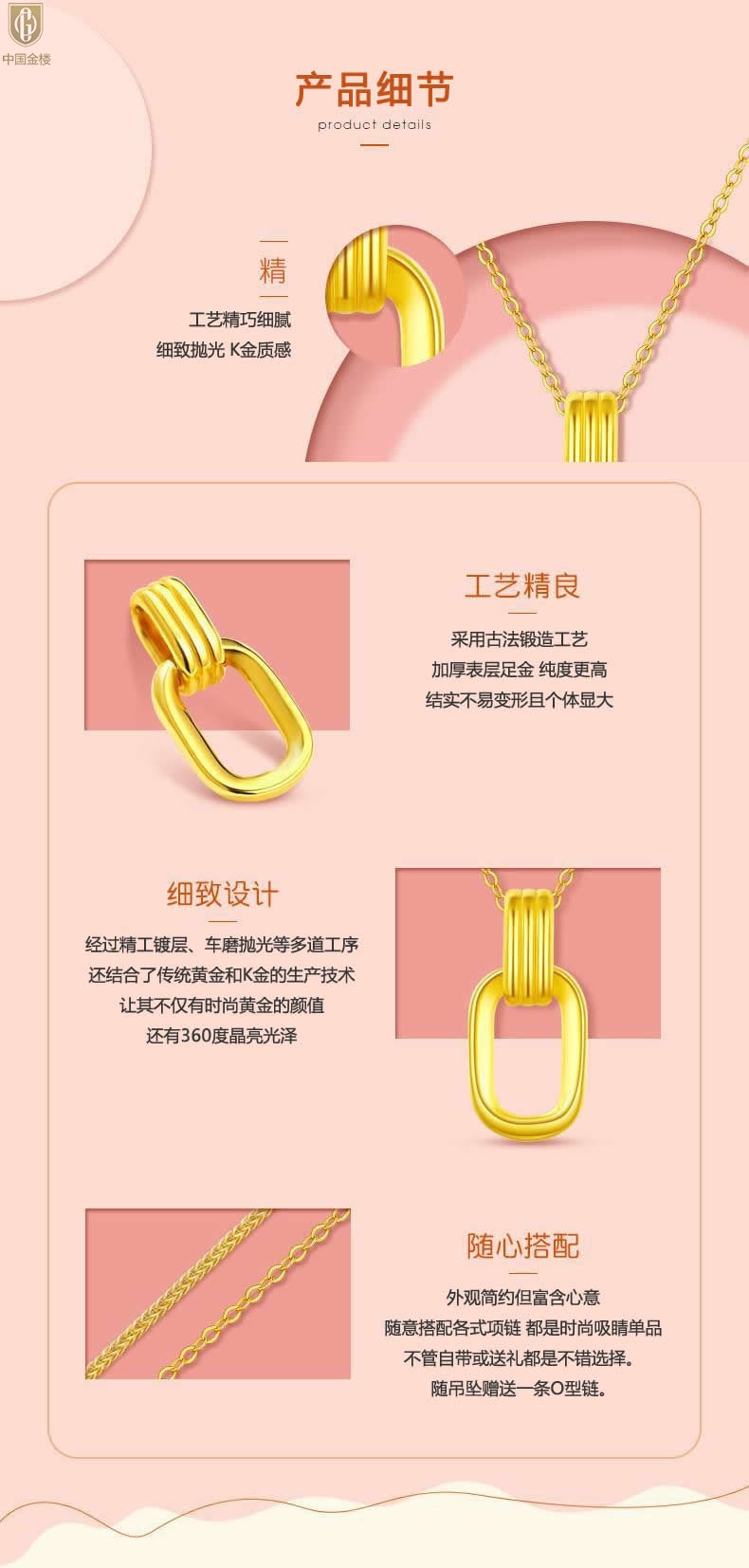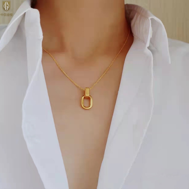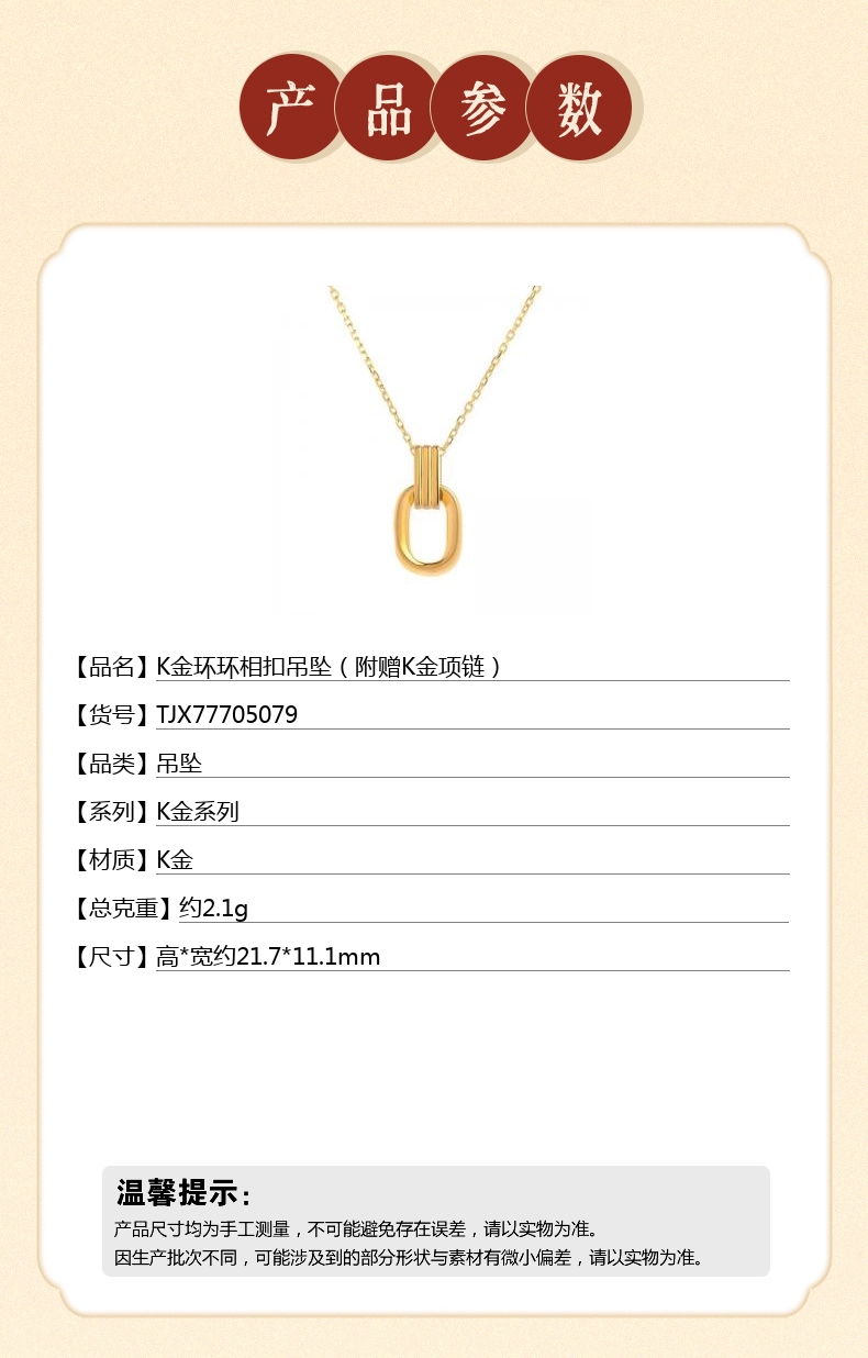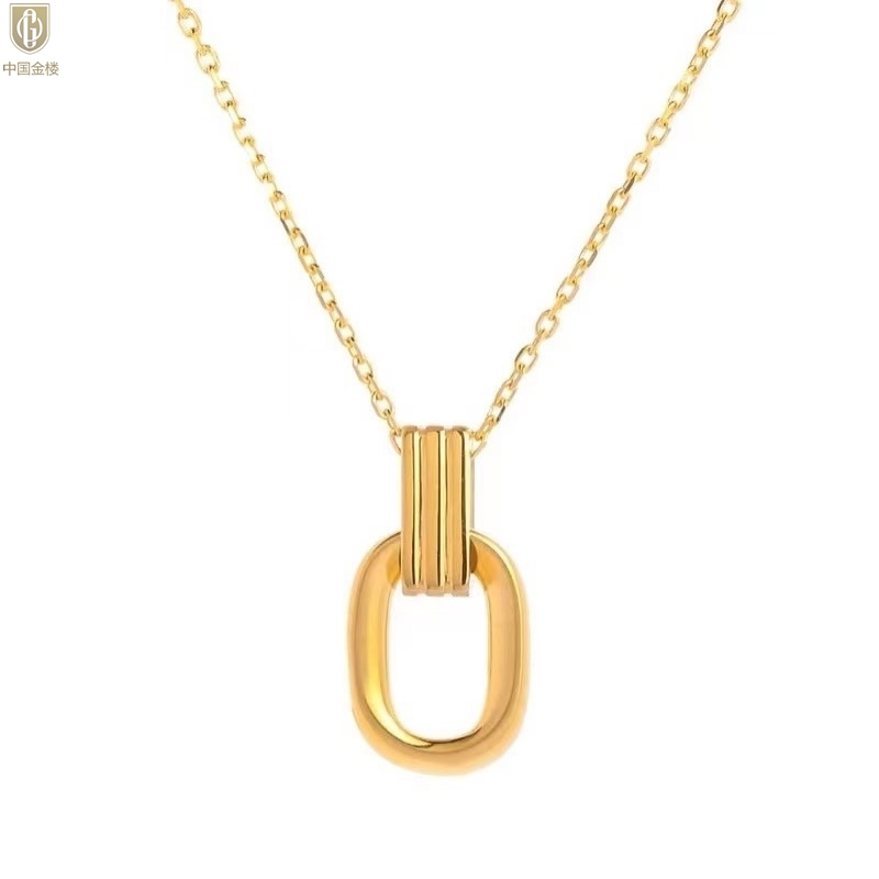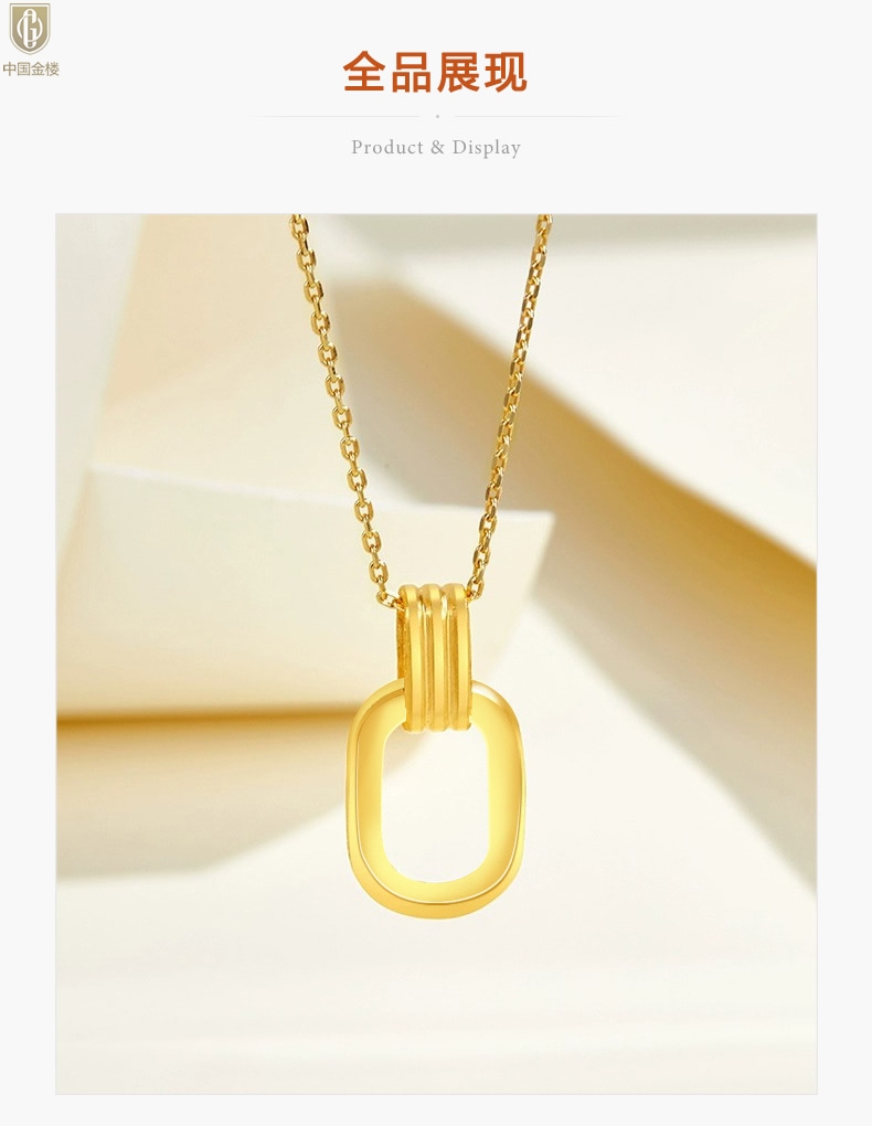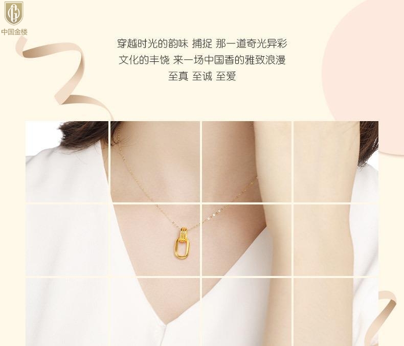 【品名】中国金楼K金环环相扣吊坠(附赠K金项链)