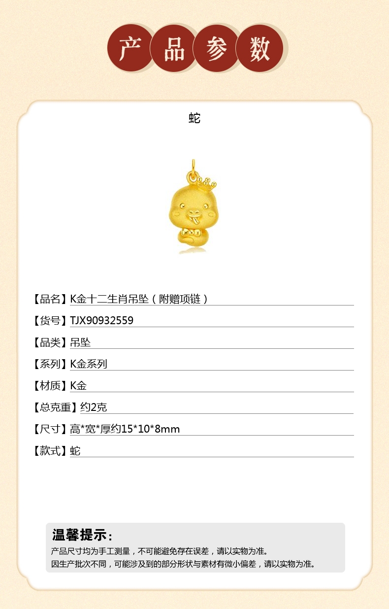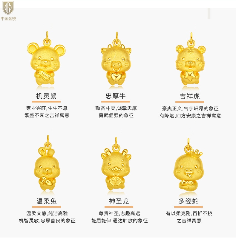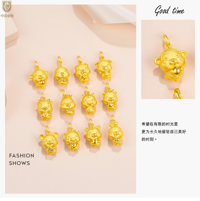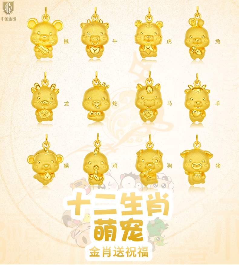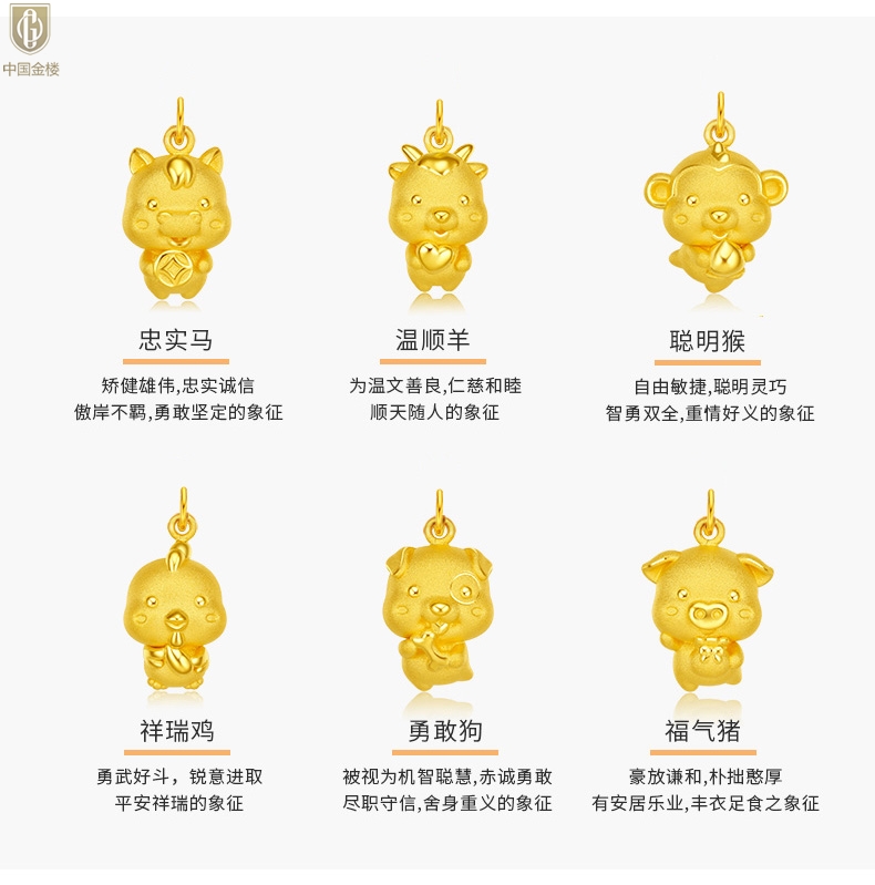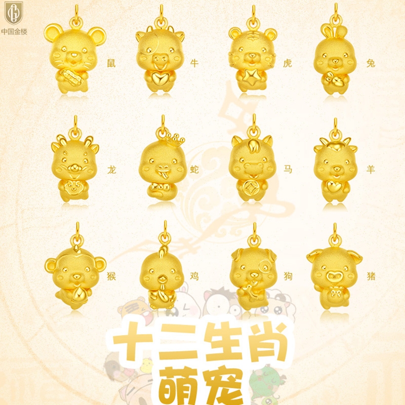 【品名】中国金楼K金十二生肖吊坠(附赠项链)