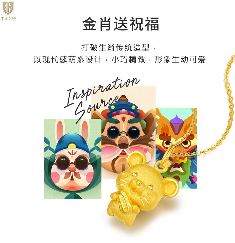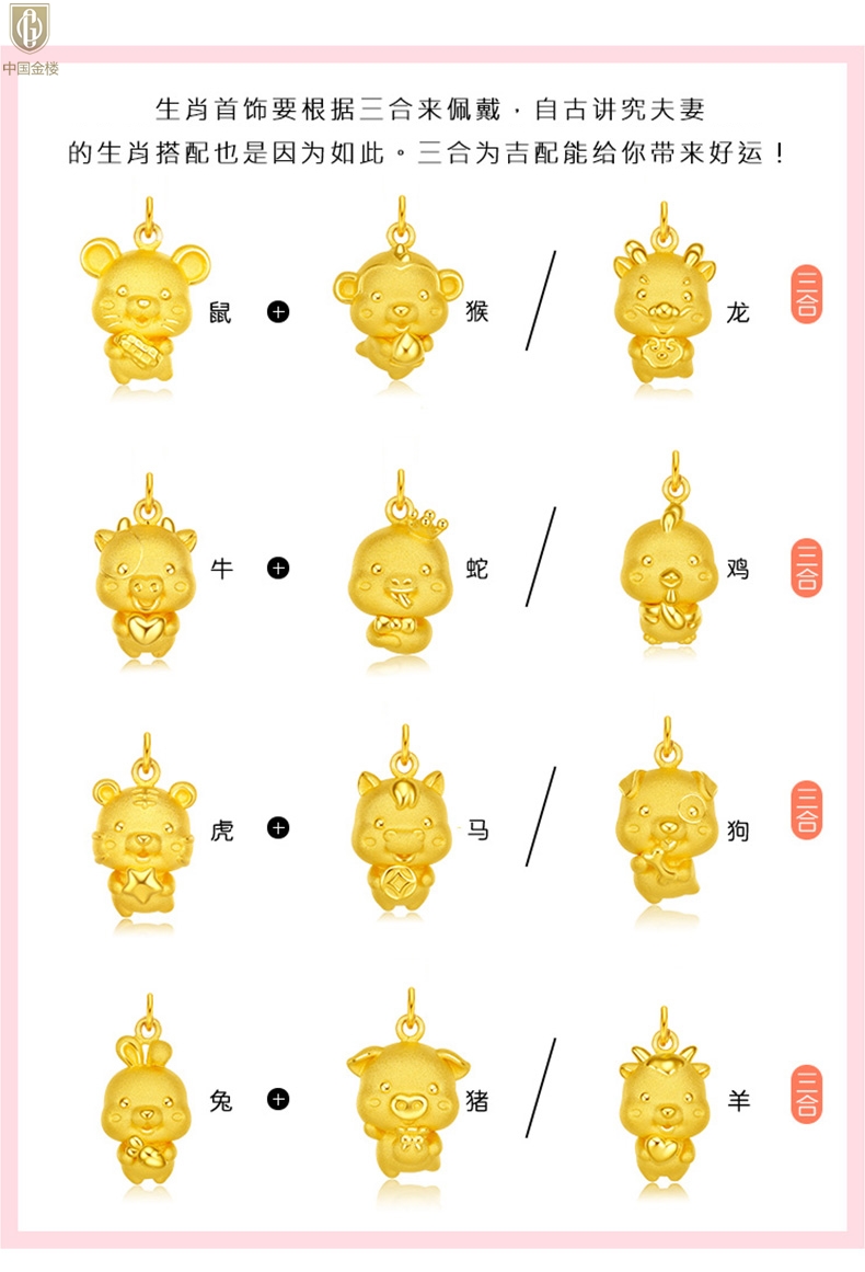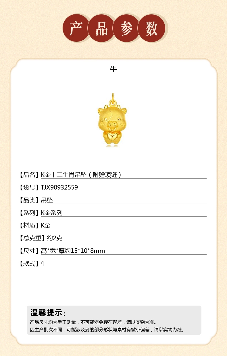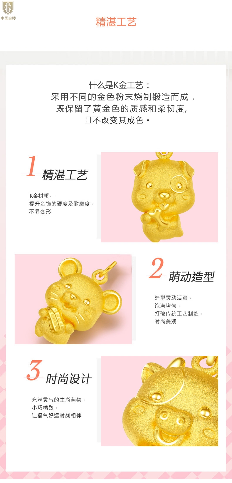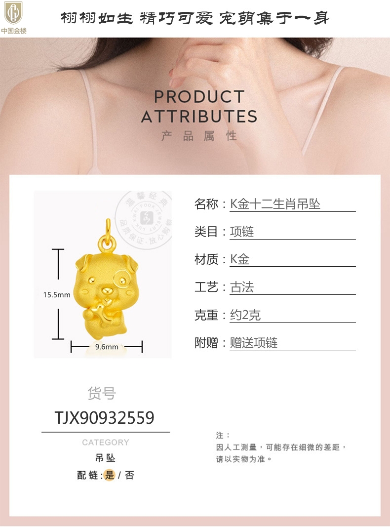【品名】中国金楼K金十二生肖吊坠(附赠项链)
