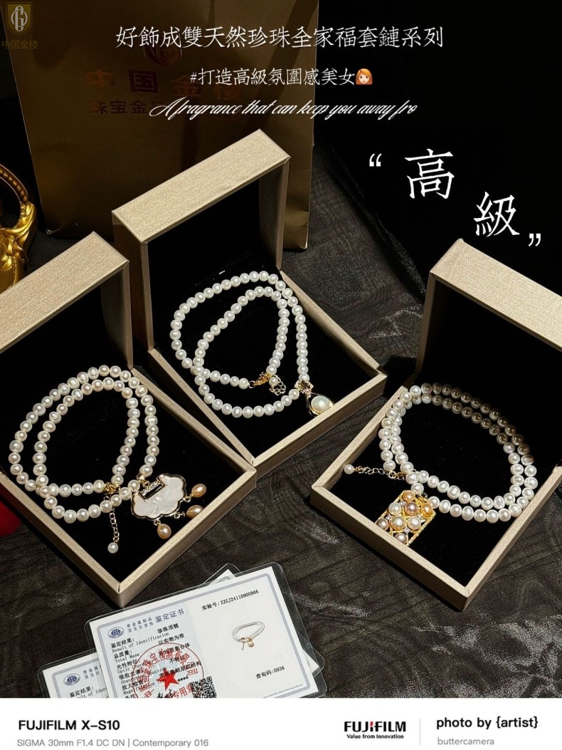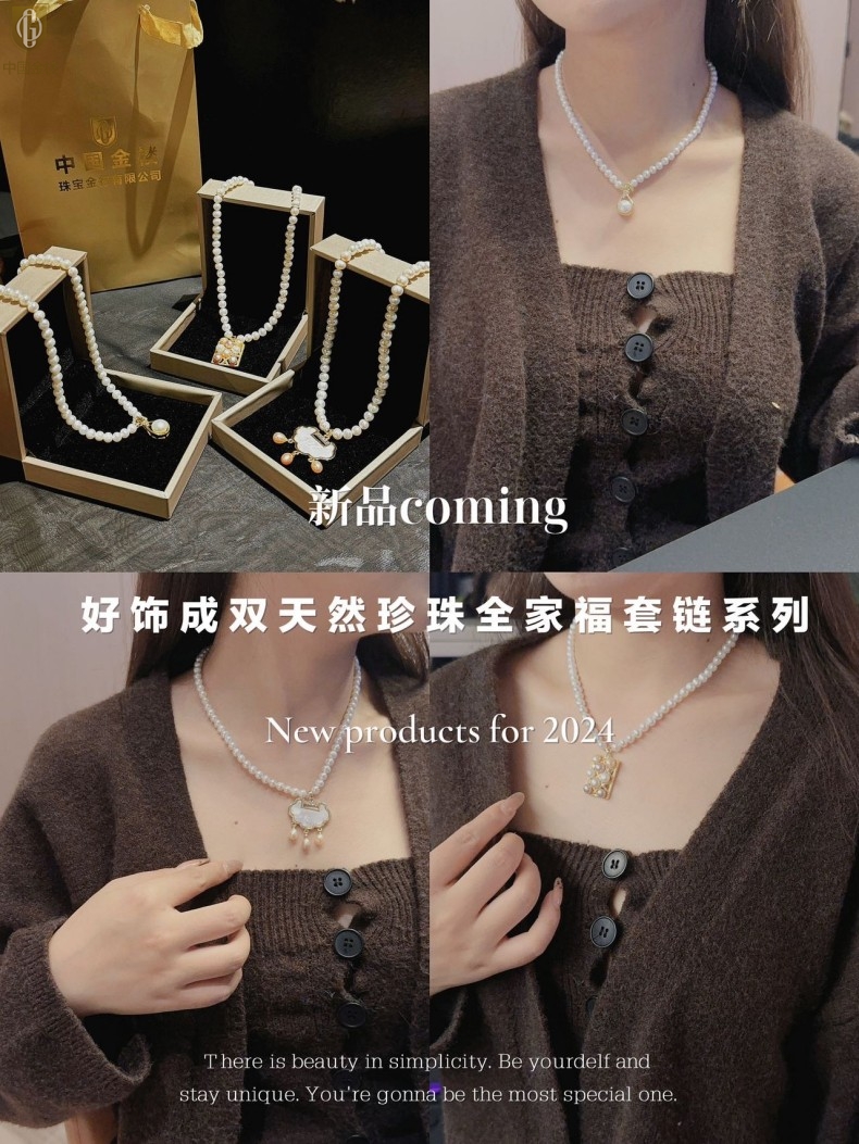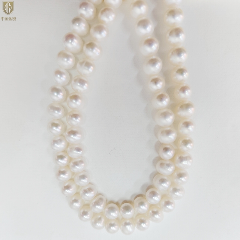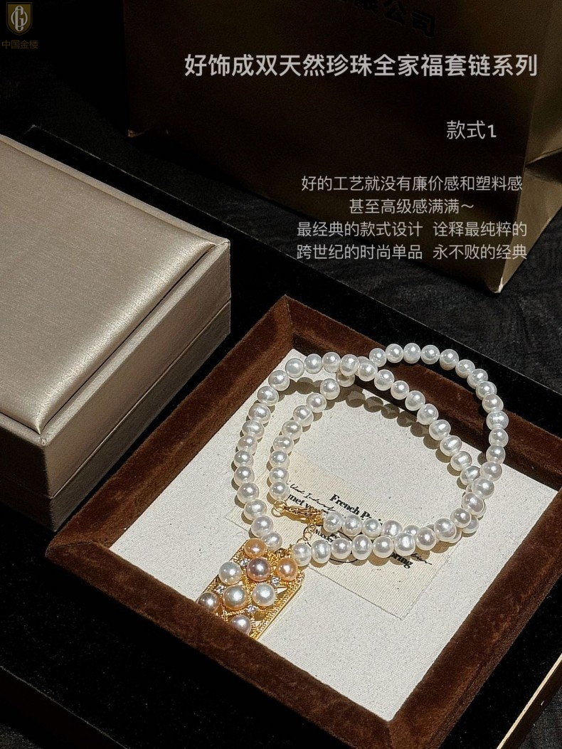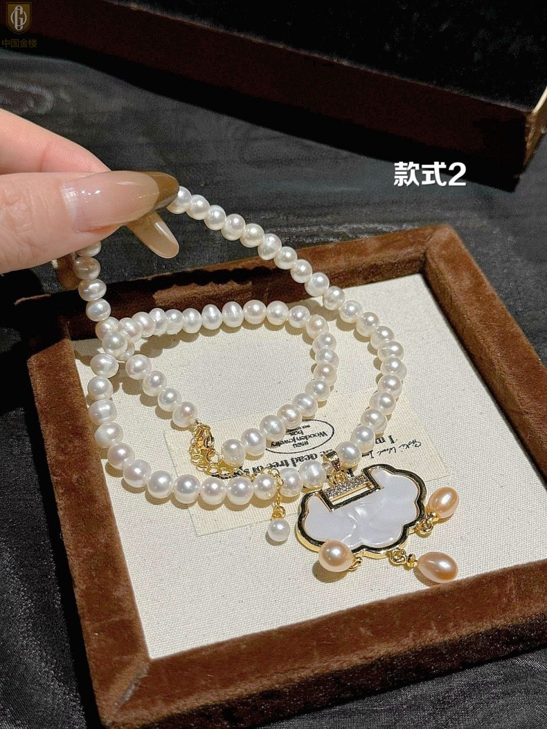 【品名】中国金楼白贝母平安锁天然珍珠项链
