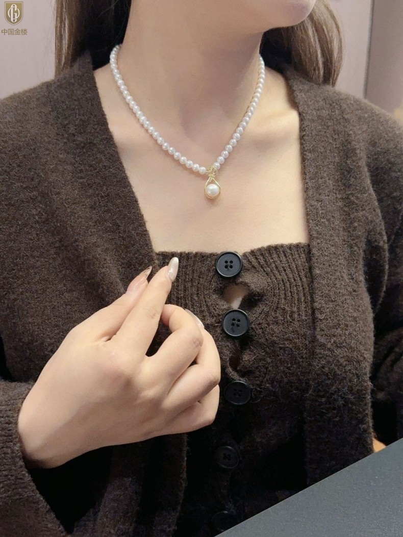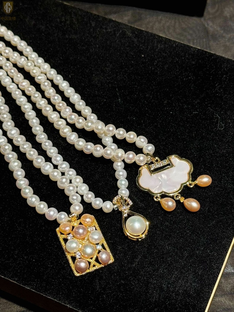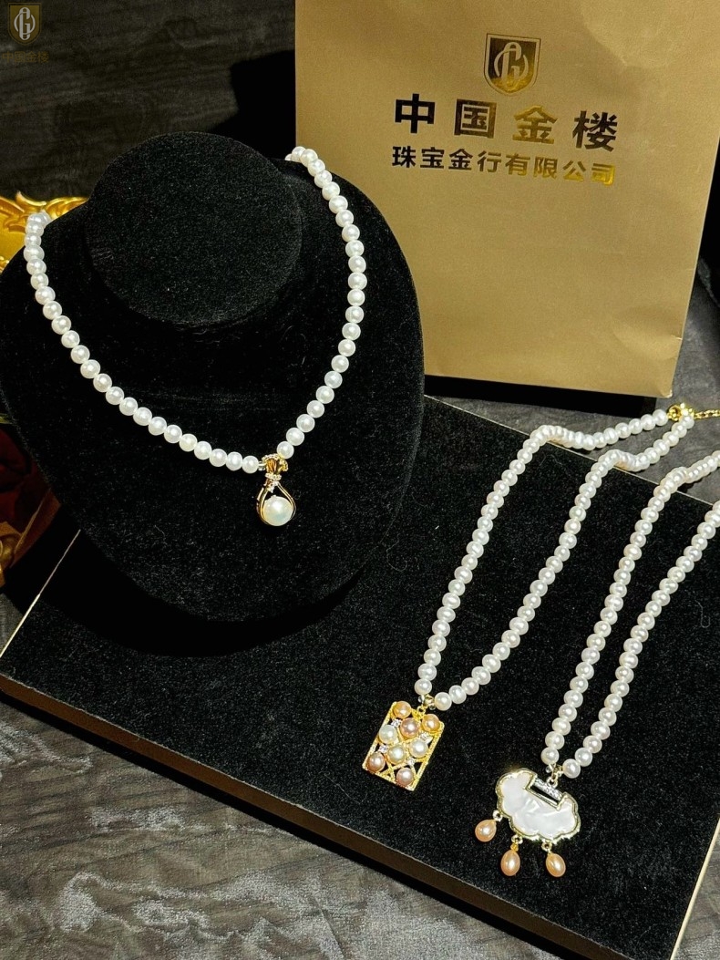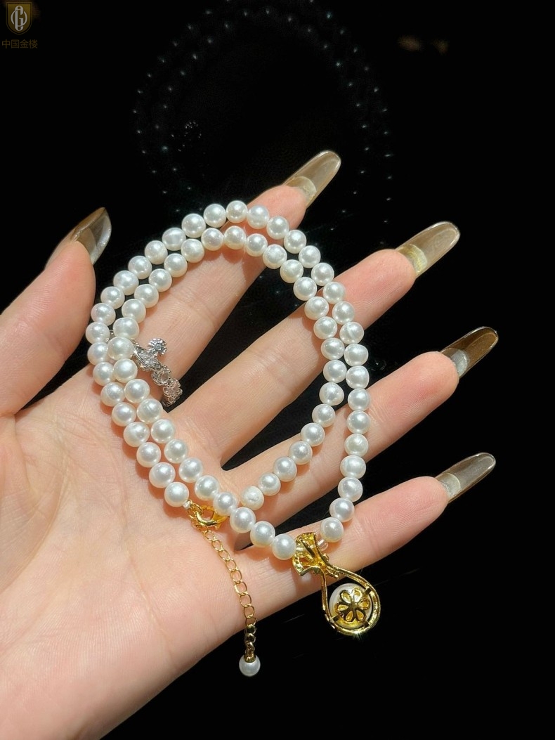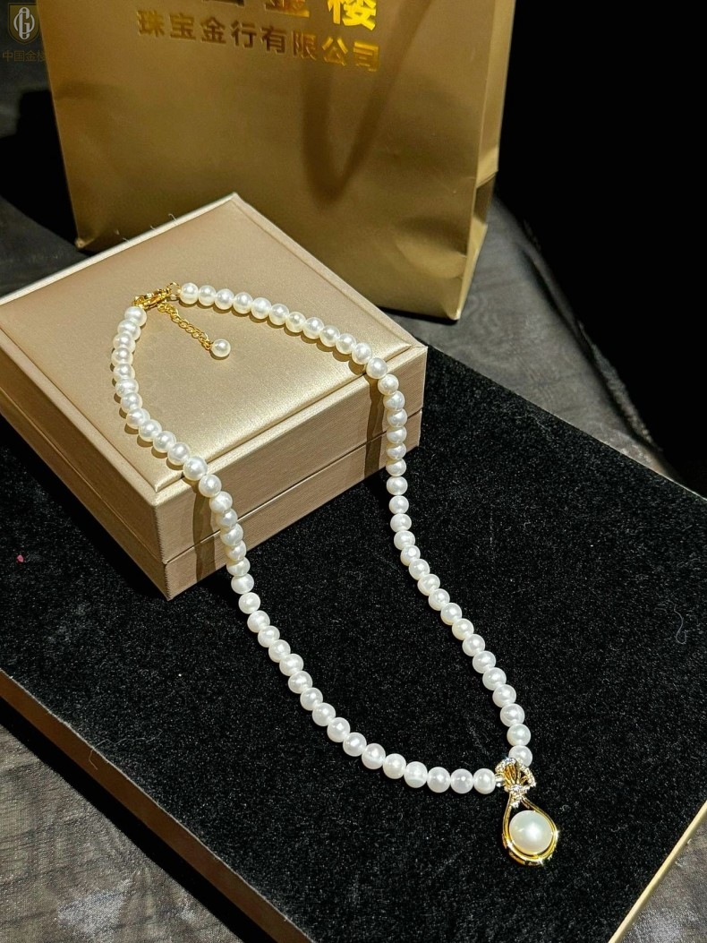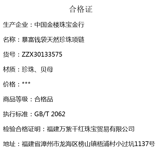 【品名】中国金楼暴富钱袋天然珍珠项链