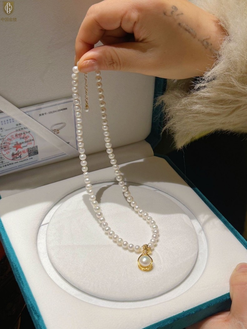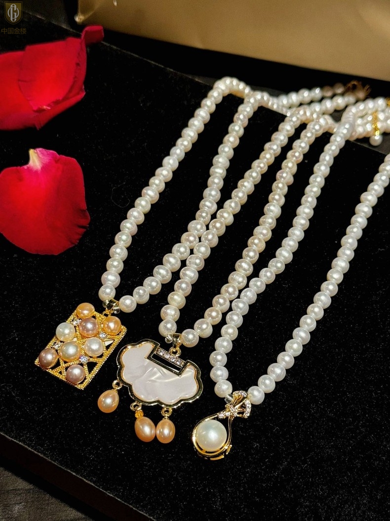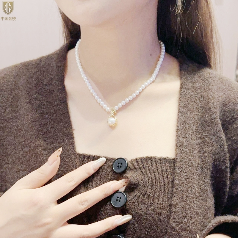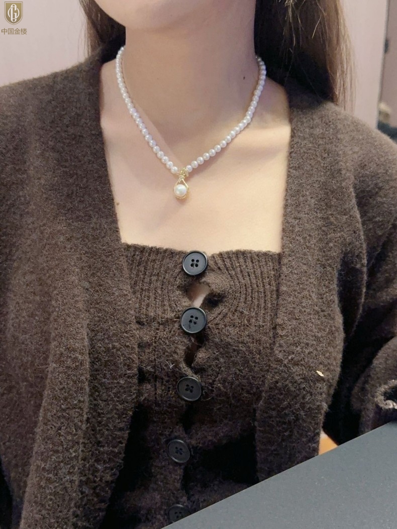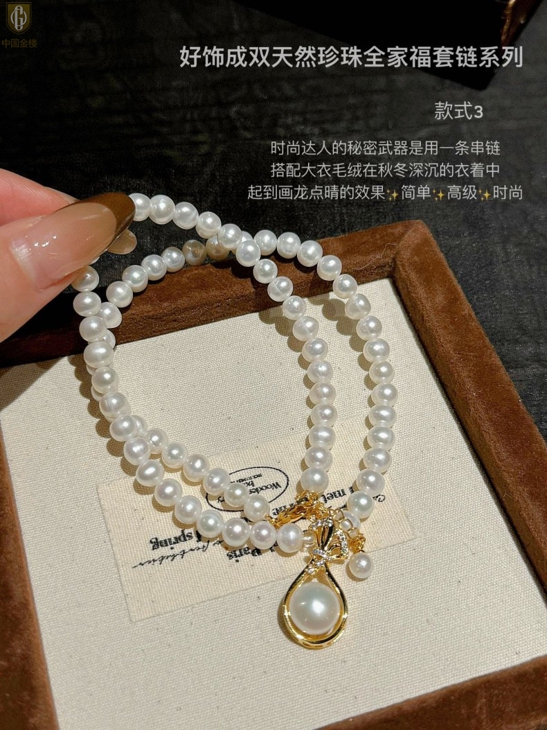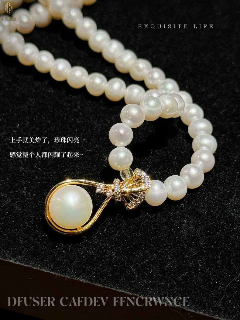 【品名】中国金楼暴富钱袋天然珍珠项链