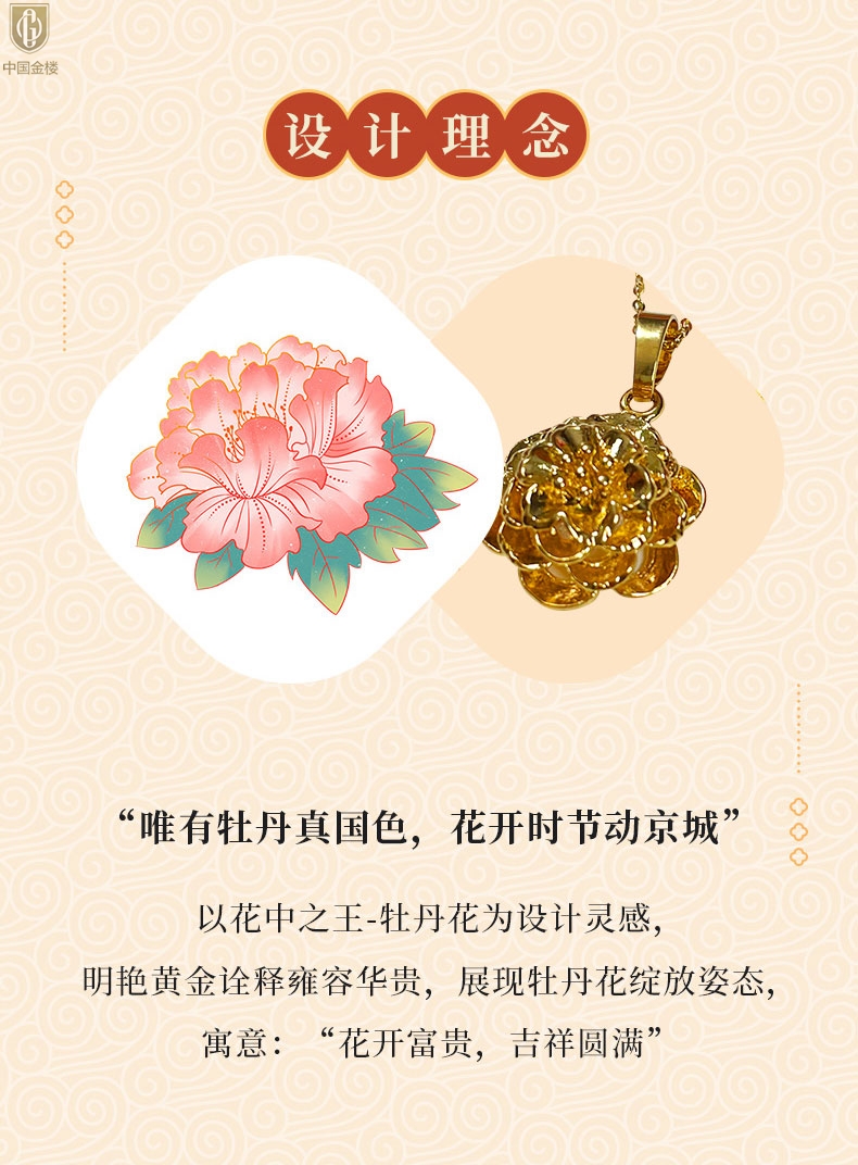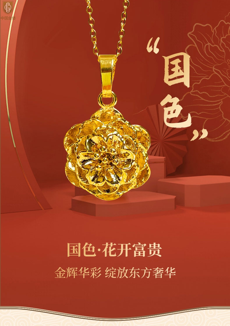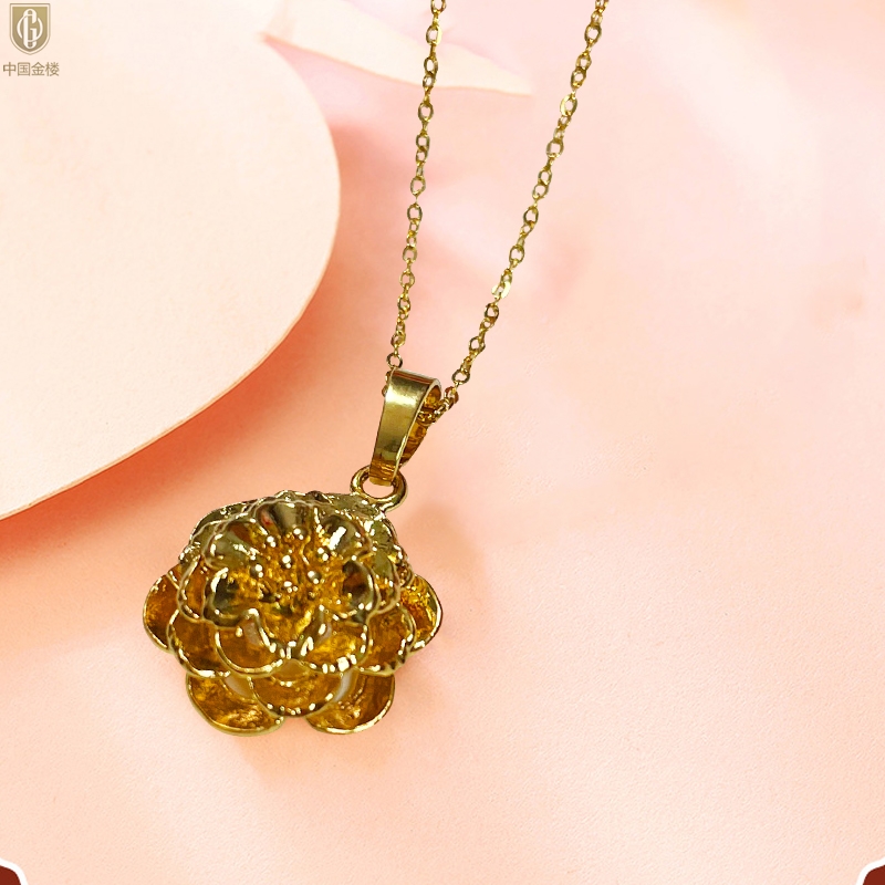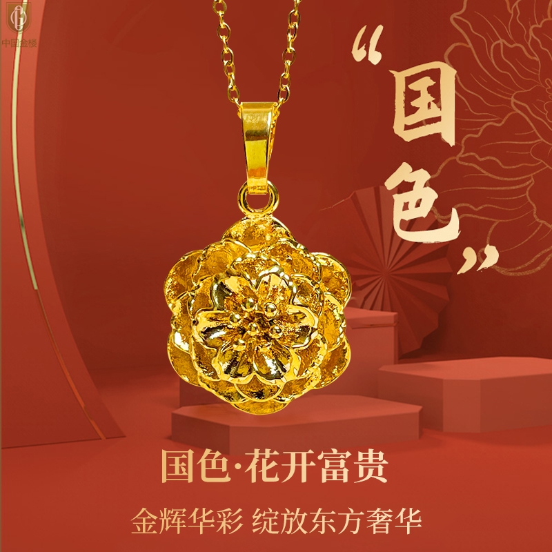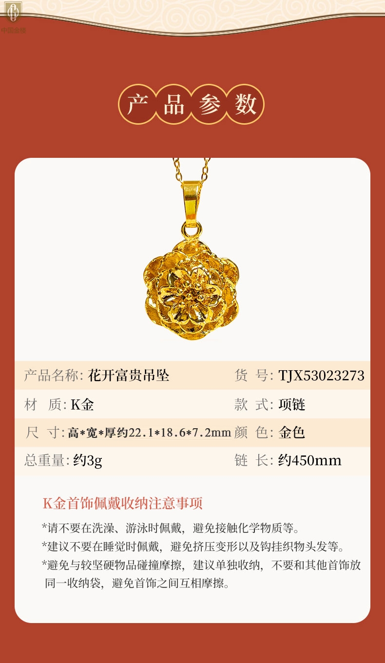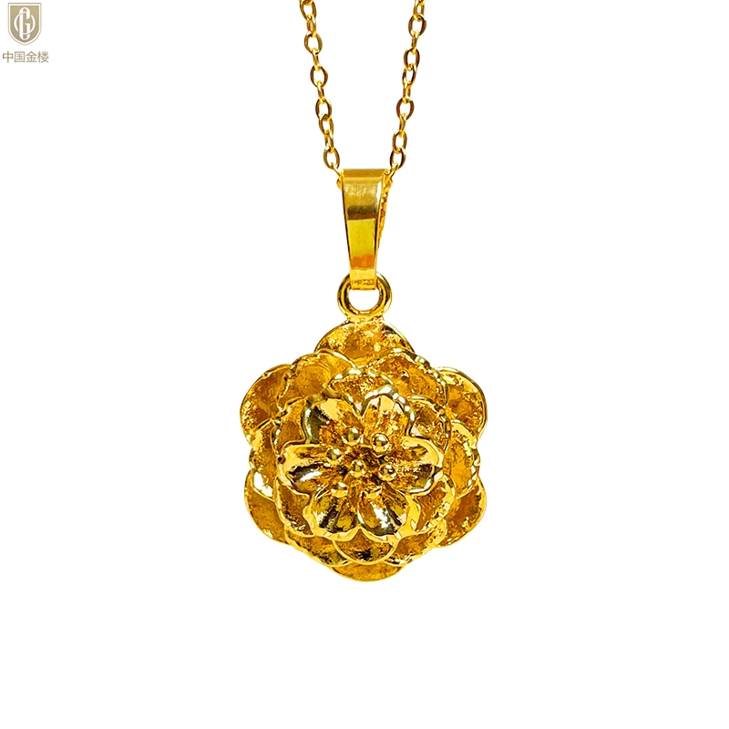 【品名】中国金楼花开富贵吊坠