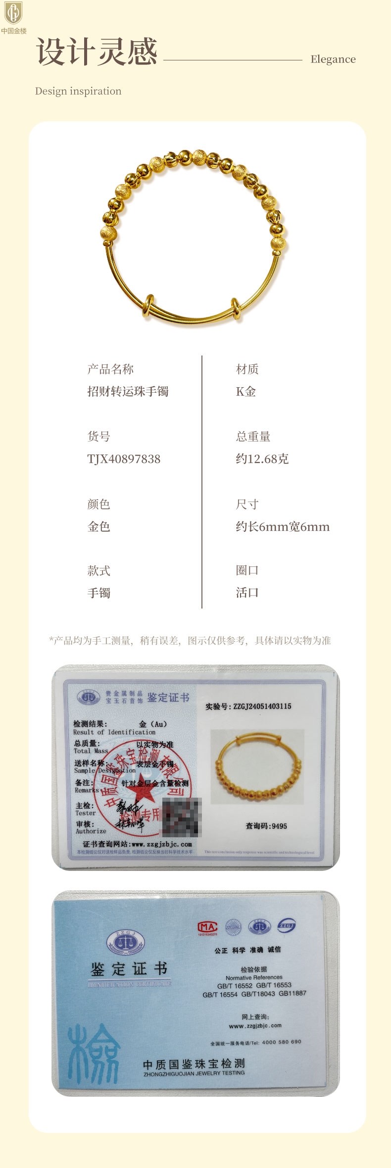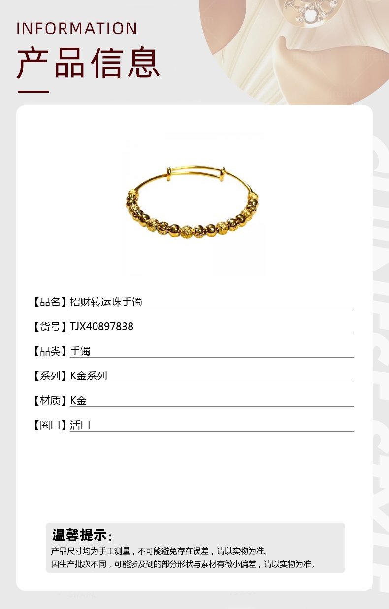 【品名】中国金楼招财转运珠手镯