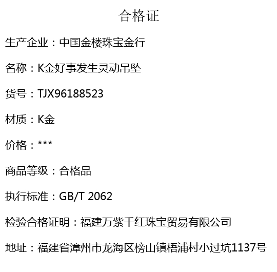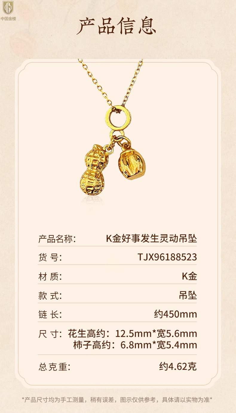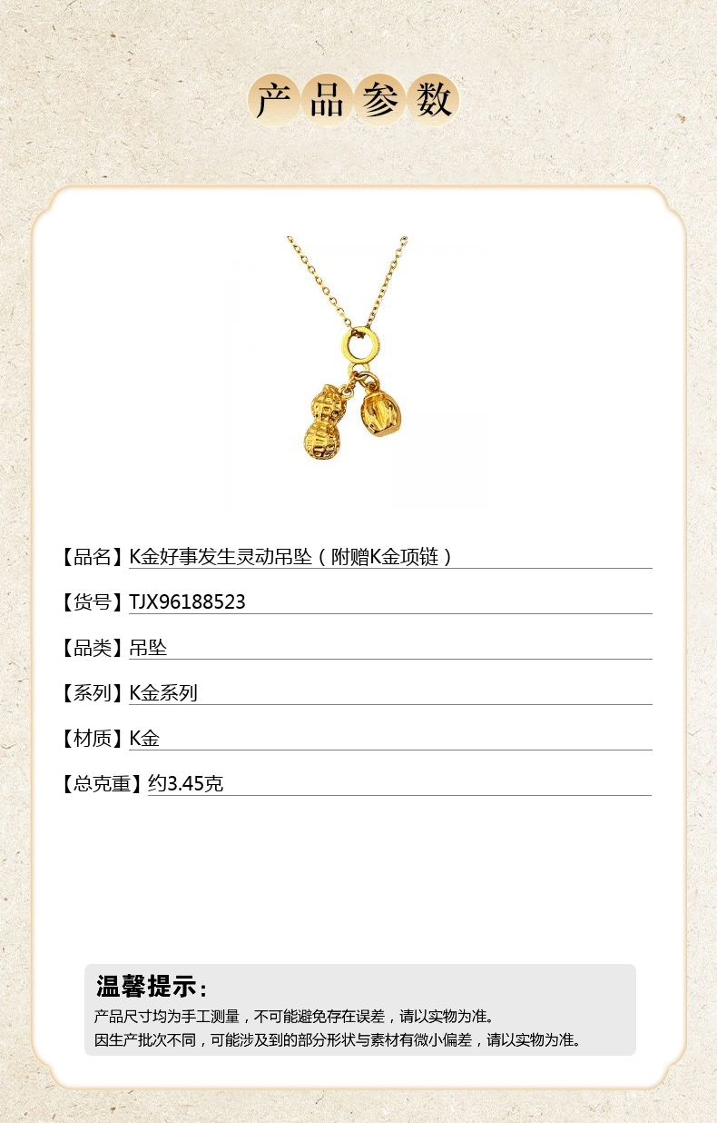 【品名】中国金楼K金好事发生灵动吊坠(附赠K金项链)