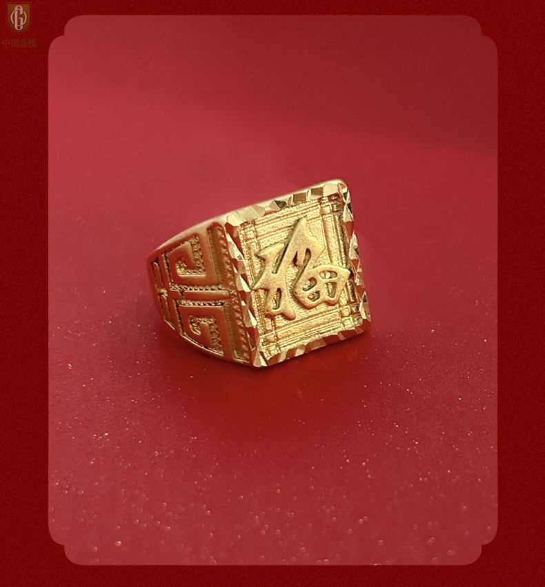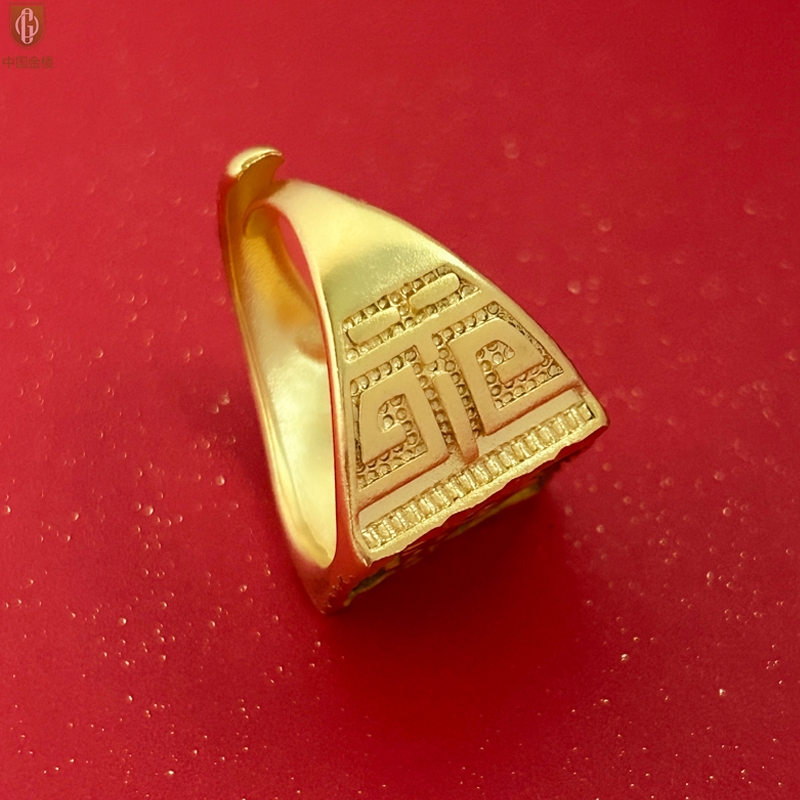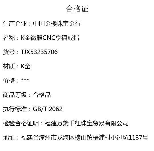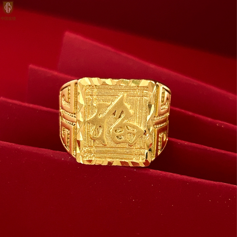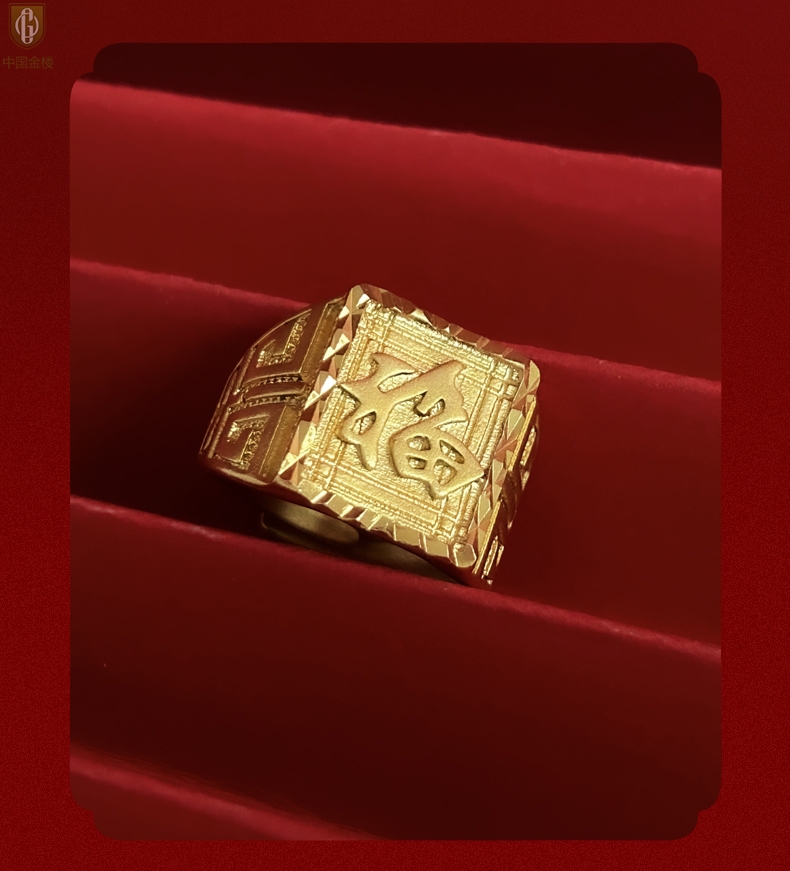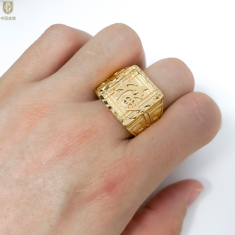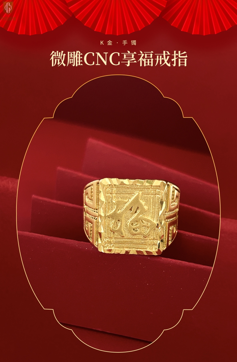 【品名】中国金楼K金微雕CNC享福戒指