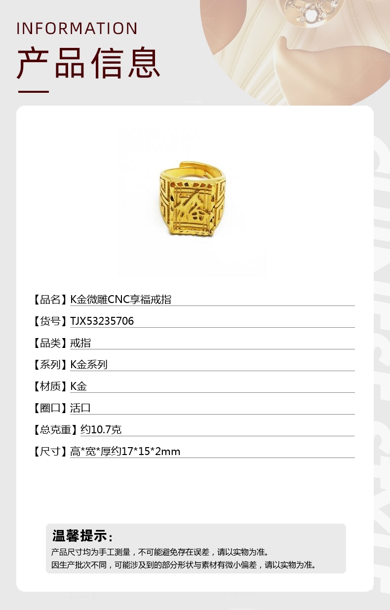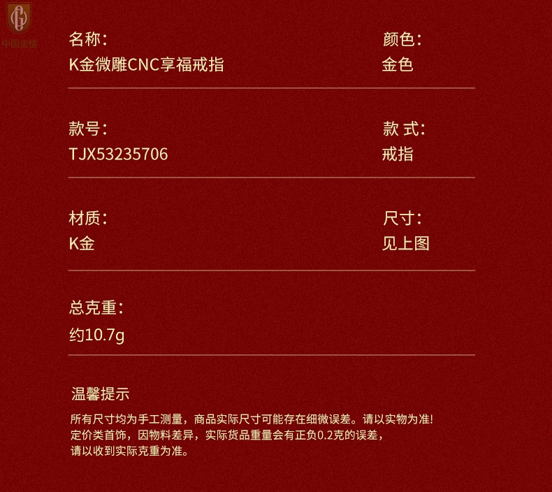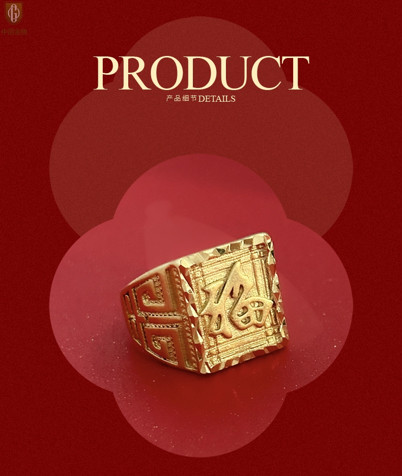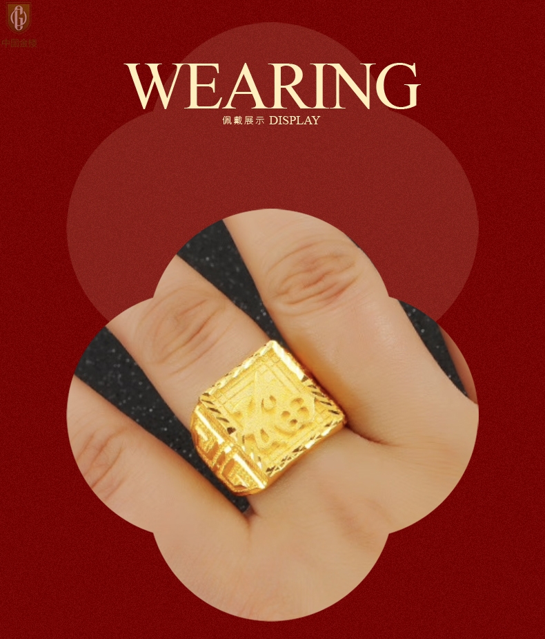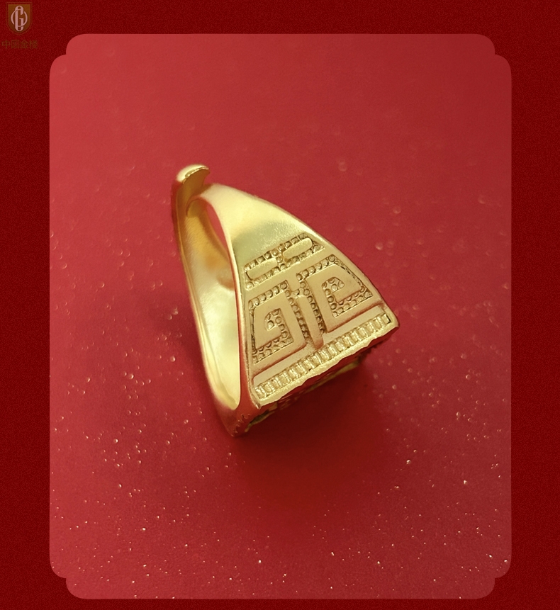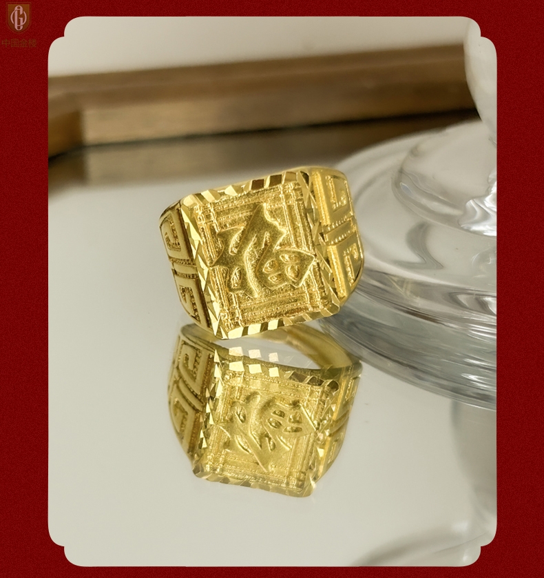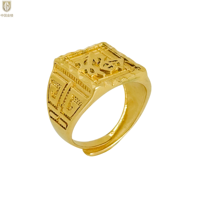 【品名】中国金楼K金微雕CNC享福戒指